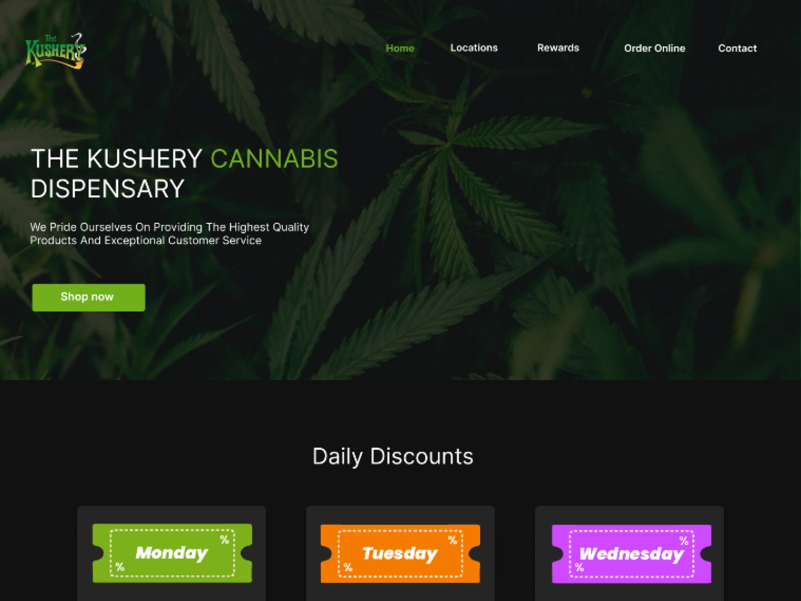 Goal: Our goal was to create a visually appealing and user-centered website that accurately represents The Kushery’s brand and engages their target audience.
