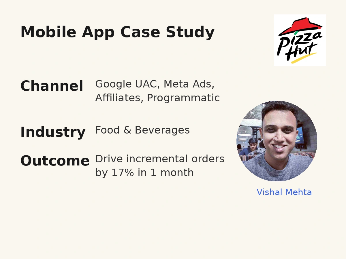 Vishal along with his team recommend client to explore other channels by finding the foodie audience in India. We leverages affiliates channel partners and other direct publishers who helped to drive new user acquisition and helped in driving incremental orders.
