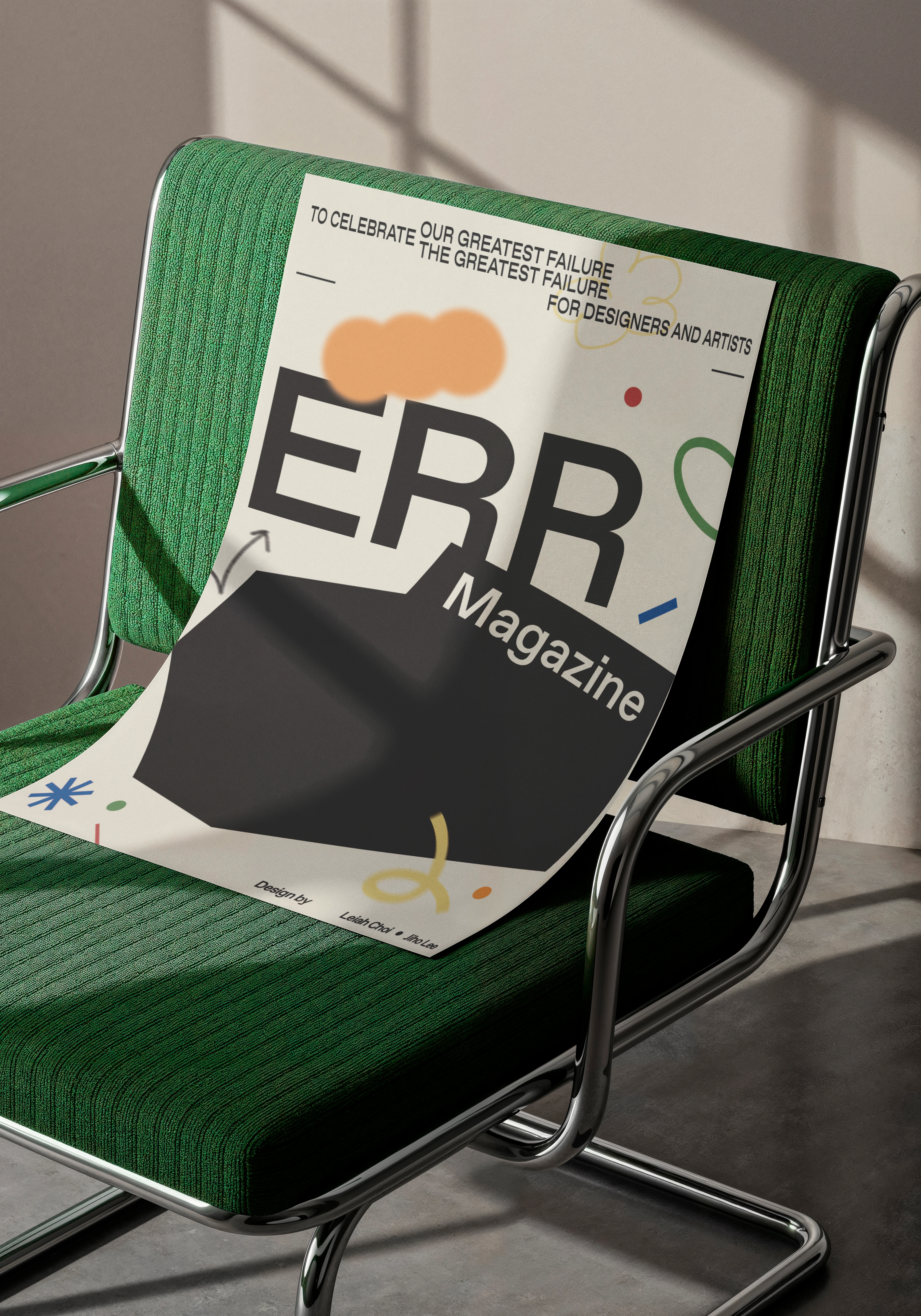 ERR Magazine is a conceptual editorial and branding project that repositions creative failure as a valuable and transformative part of the design journey. Born from personal experiences of struggle and self-doubt as a designer, the magazine was created to open up honest conversations around failure within the creative industry. Through a mix of essays, interviews, and visual storytelling, it explores how individuals process setbacks, reflect, and ultimately grow through these moments. The project extends beyond print into lifestyle merchandise, offering a brand experience that encourages creatives to embrace vulnerability and see failure as part of a larger, shared process.
