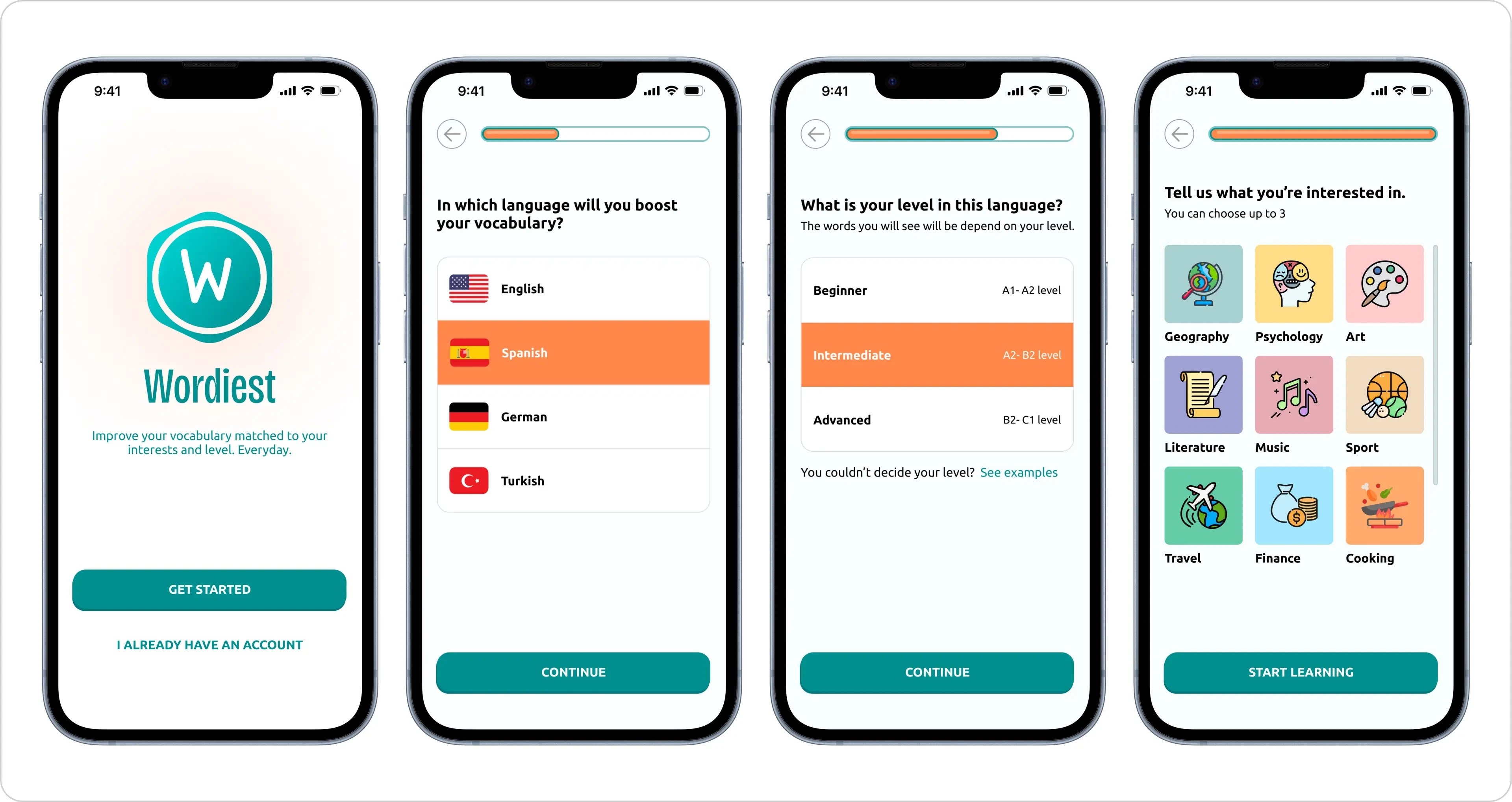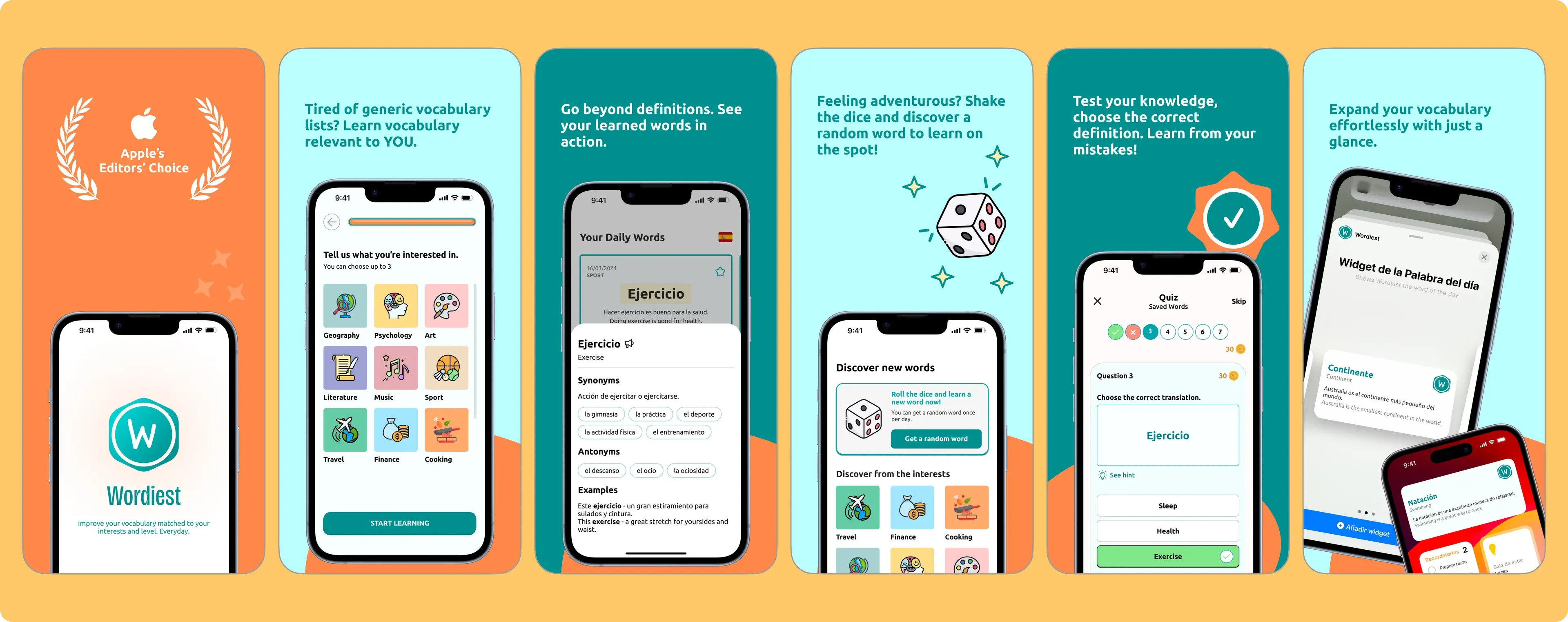 Wordiest cares about users' hobbies and interests, whether it's cooking, science, travel, or anything else they're passionate about. It tailors the words users will learn to these interests. Understanding that everyone learns differently, Wordiest allows you to choose your starting difficulty level, ensuring you feel confident as you progress.