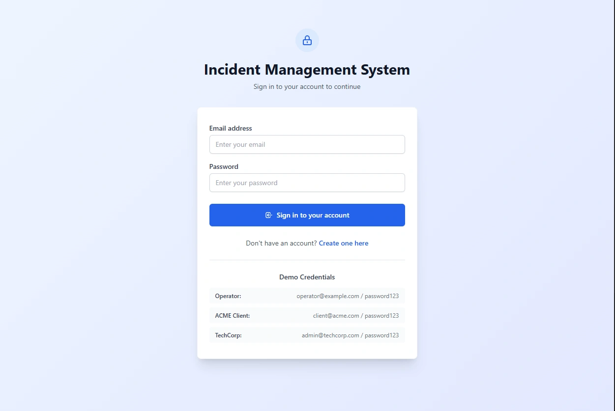 The Incident Management System is a robust, TypeScript-based application designed to streamline the entire lifecycle of IT incidents within organizations. From initial detection and triage to resolution and post-incident analysis, this platform provides comprehensive tools for IT teams to minimize downtime, improve response times, and enhance operational resilience.