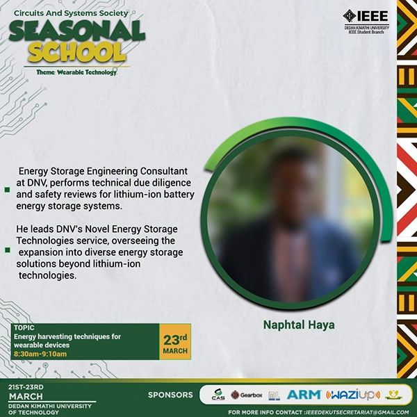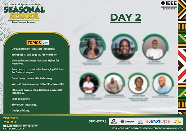This event poster utilizes a torn paper effect to create a sense of discovery, reinforcing the theme of unveiling new knowledge. The bold typography ensures readability, while the green and yellow color scheme reflects innovation and African identity. The circuit pattern subtly integrates the tech theme, and the African fabric-inspired border adds cultural relevance. The layout maintains a clean, professional look, with sponsor logos neatly positioned for balance.
