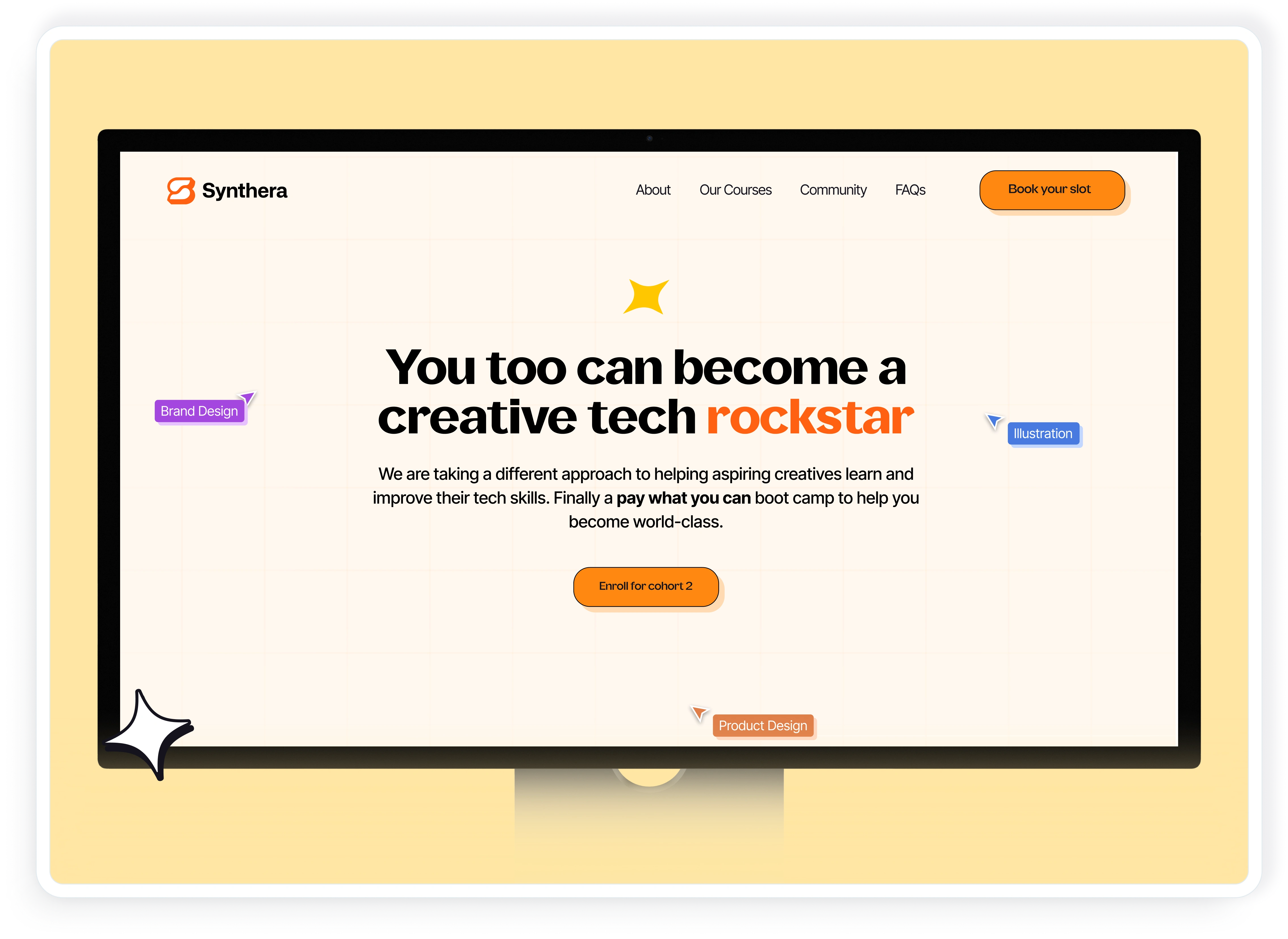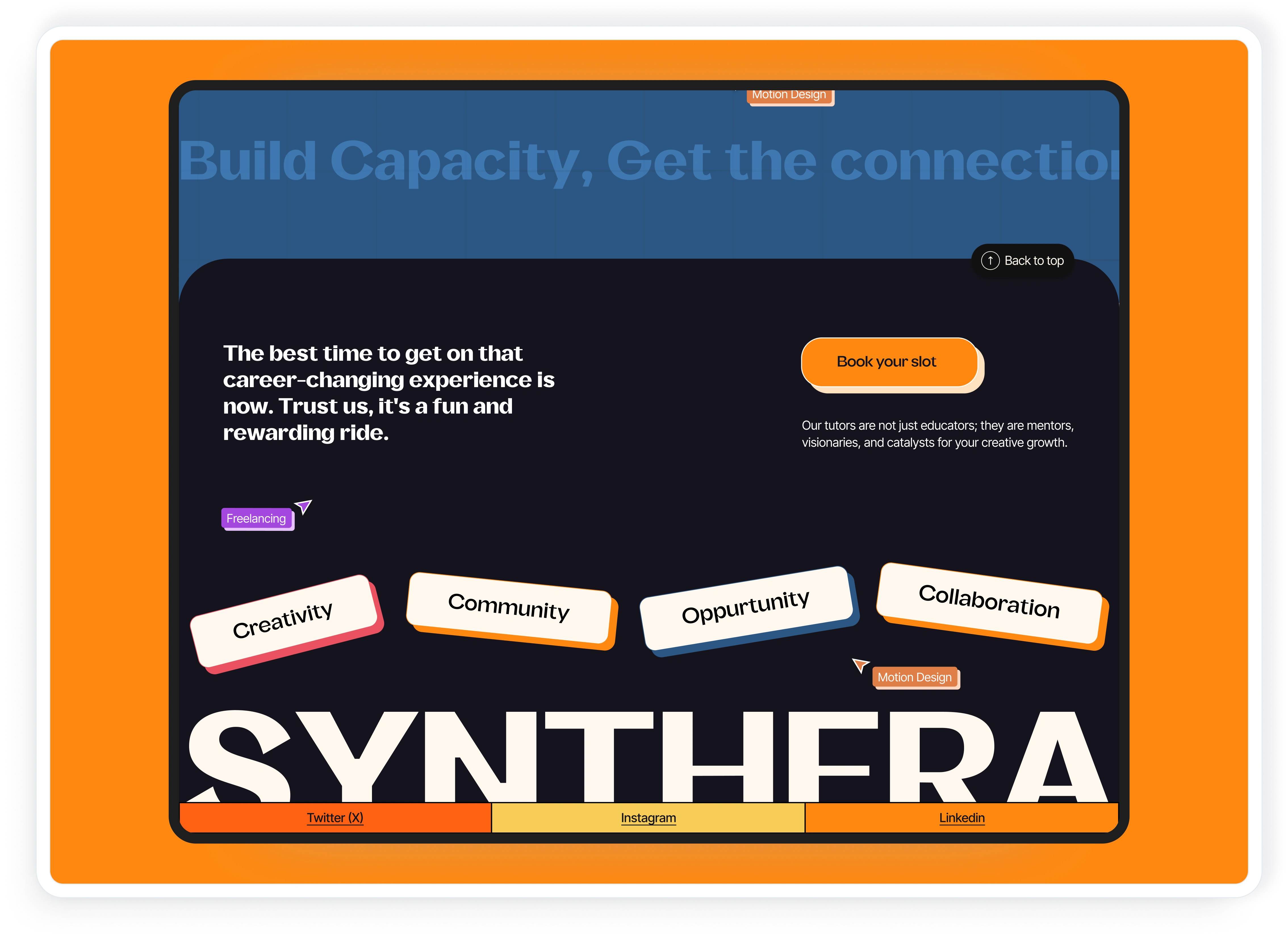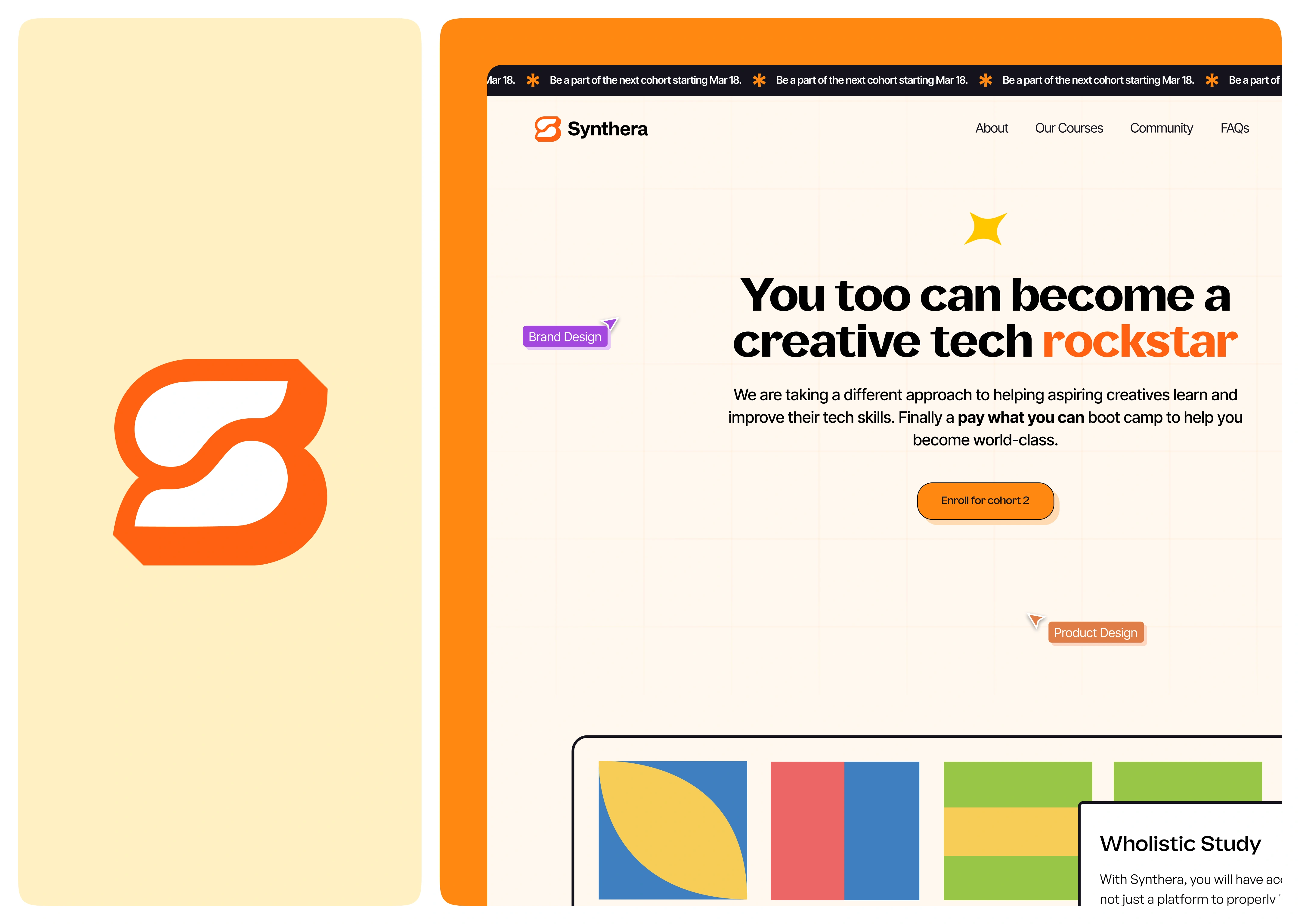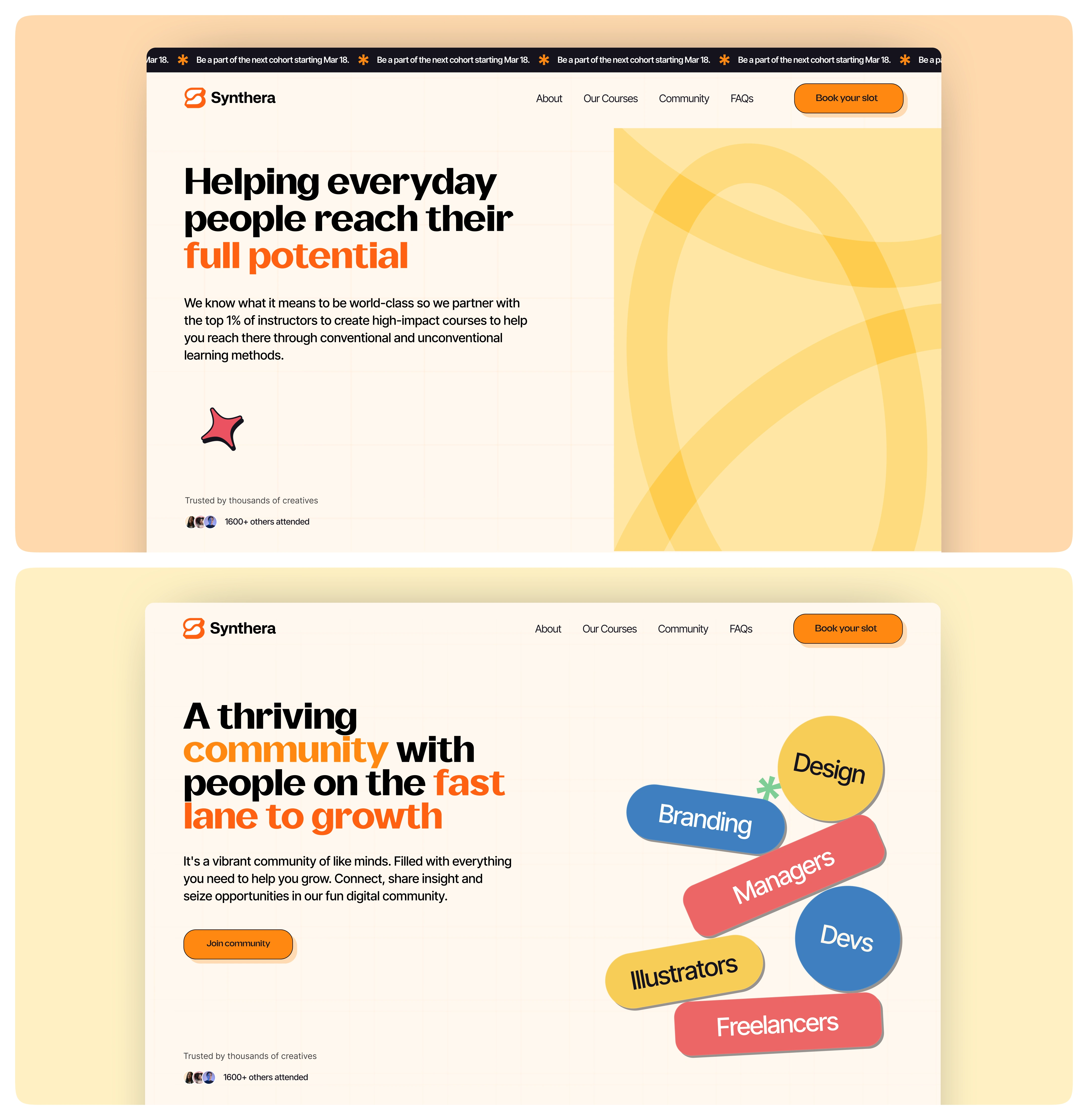Every section of the site was designed to tell a story. From the hero banner, visitors were immediately introduced to Synthera’s mission: a new kind of learning community. Scrolling down, the narrative unfolded: the programs, the live classes, the mentors, and the benefits. Instead of just listing features, the design took users on a journey, making sure they understood not just what Synthera is, and why it matters.