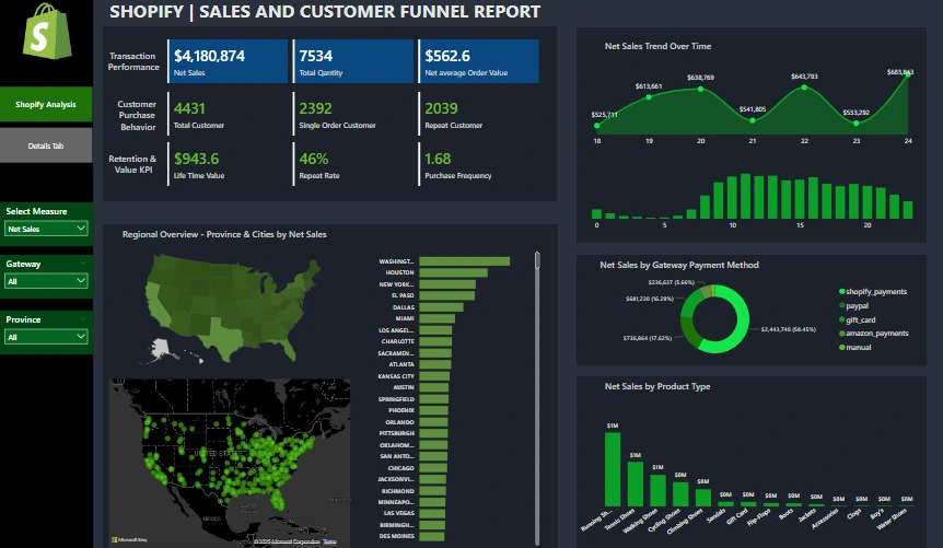 This project showcases an end-to-end business intelligence solution built with Power BI, using Shopify’s e-commerce dataset. The goal was to analyze sales performance, understand customer behavior, evaluate purchase patterns, and highlight business growth opportunities through interactive dashboards and data storytelling.