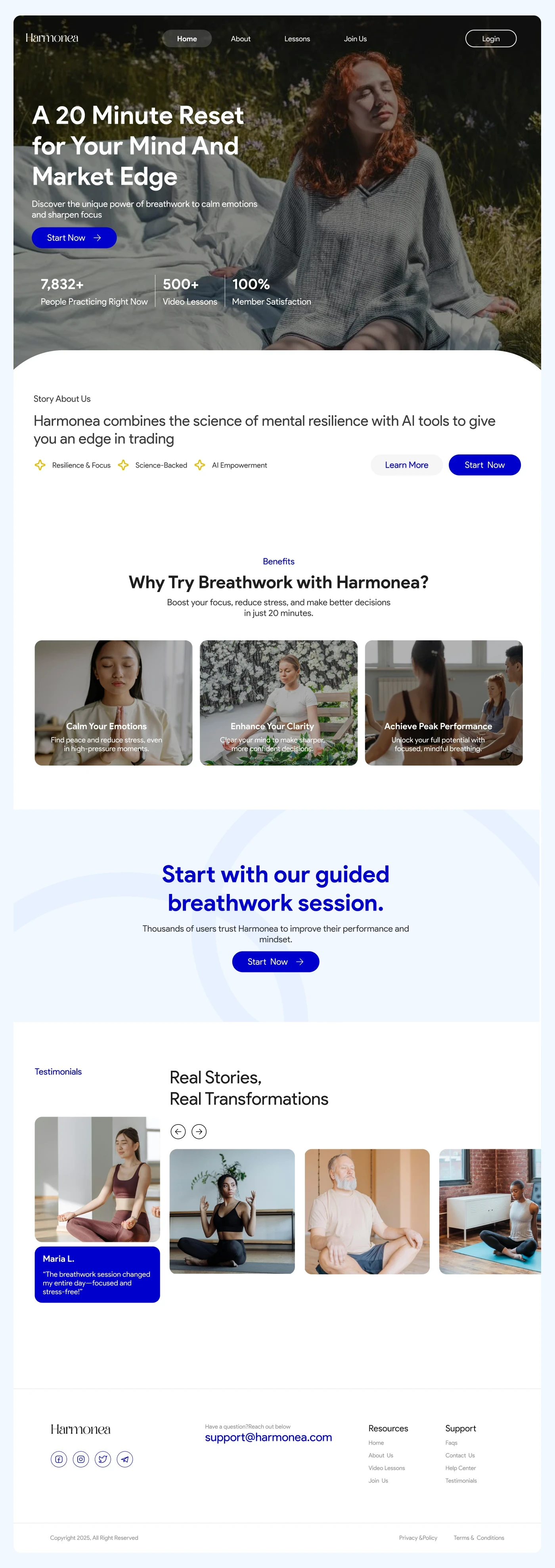 Harmonea is a web platform that combines the science of mental resilience with artificial intelligence to offer guided breathing lessons.