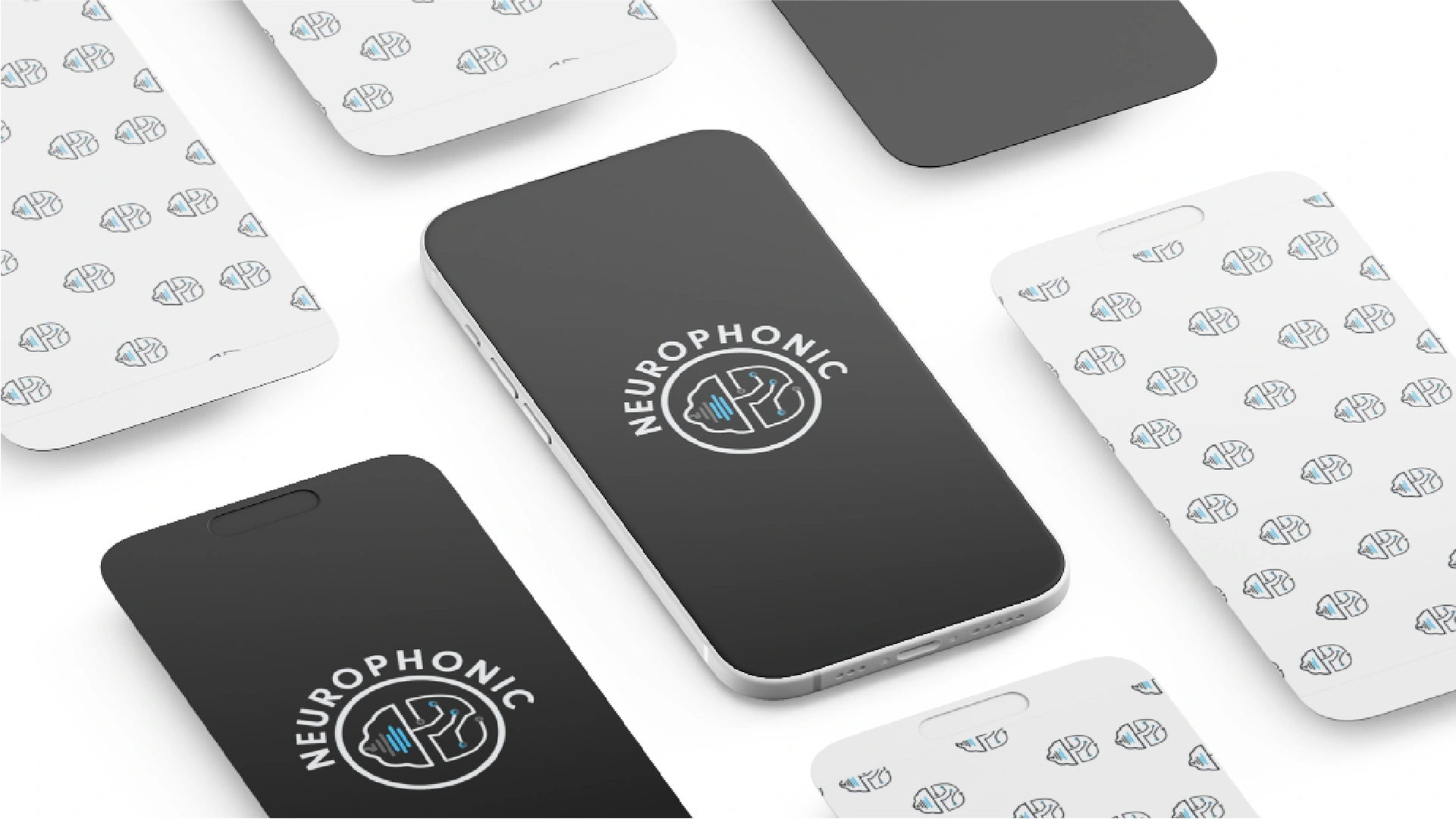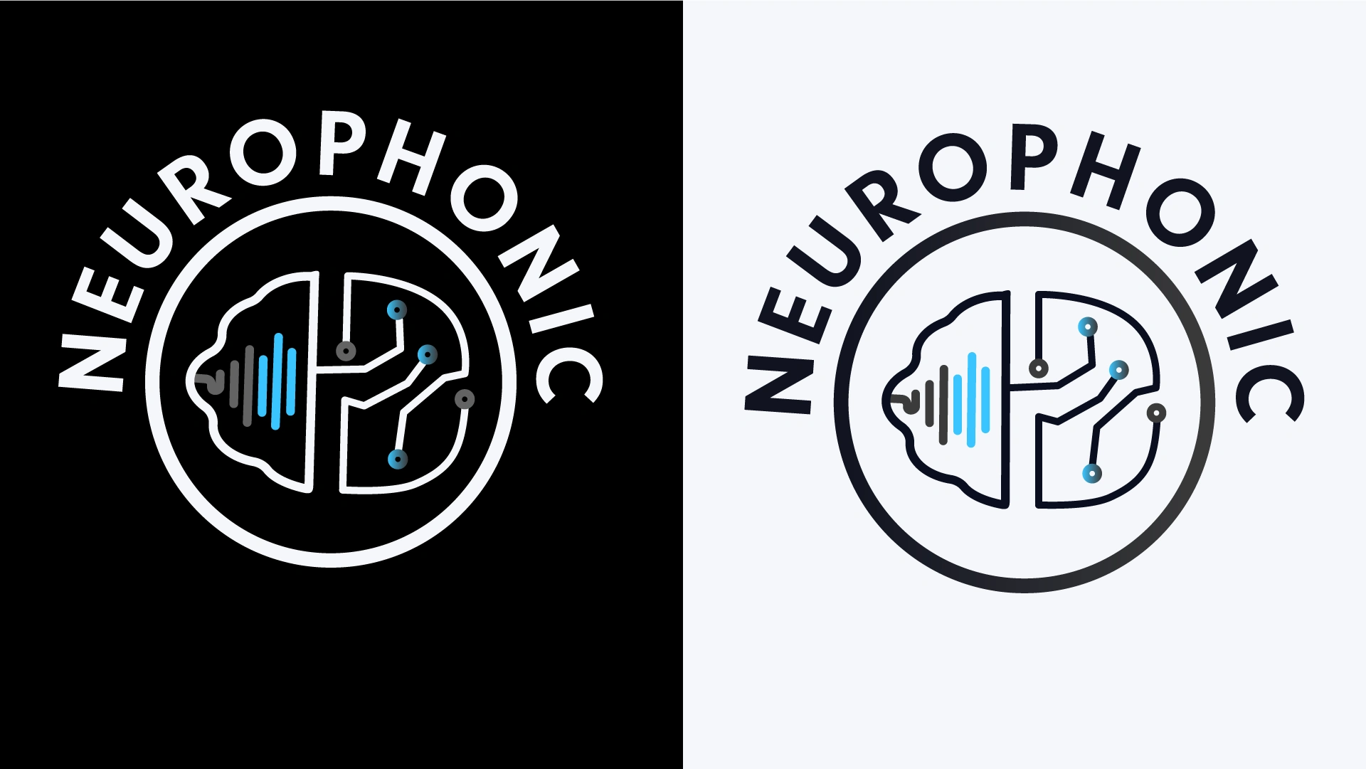 This is a conceptual logo design for "Neurophonic" — a visionary brand in AI-powered music technology.