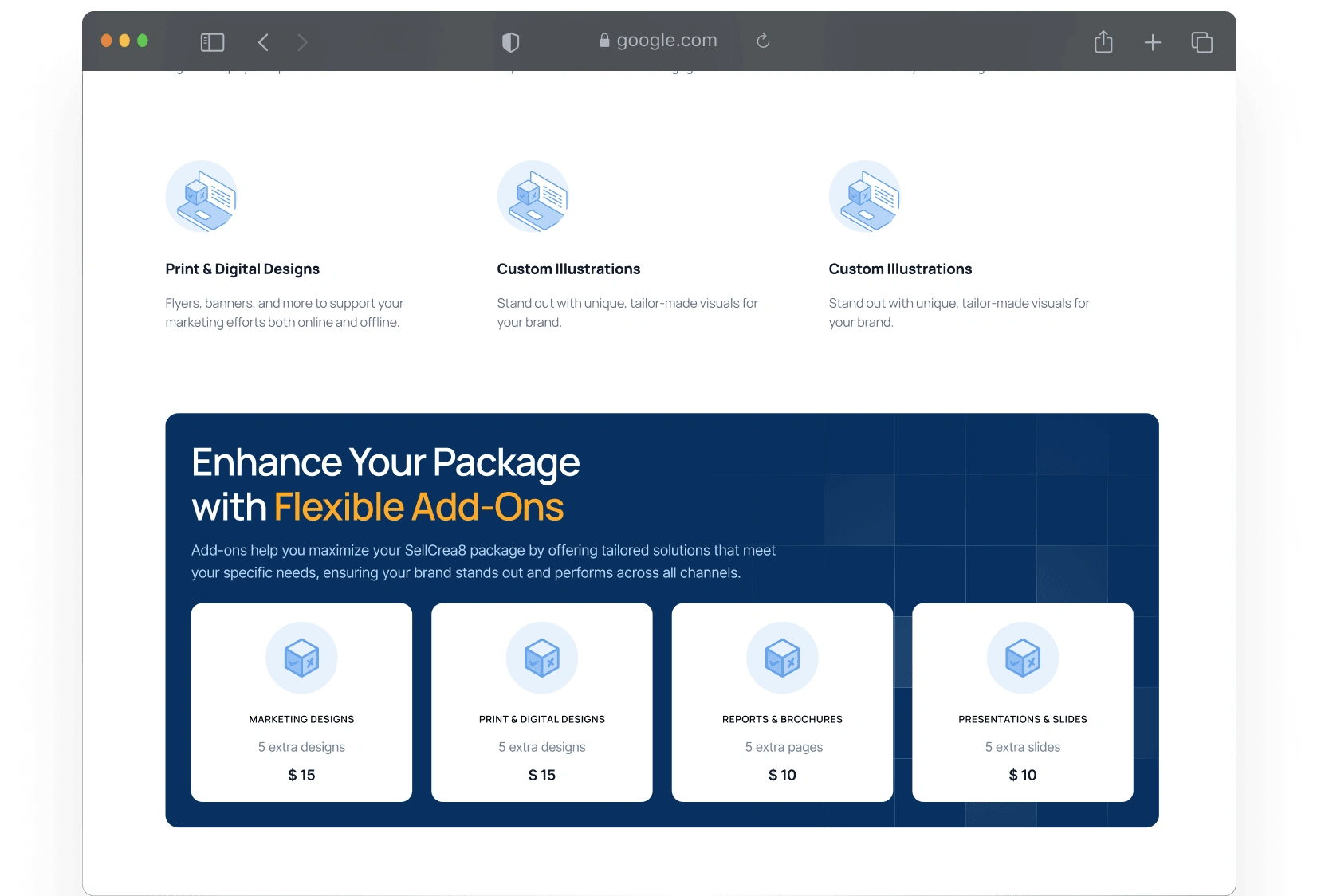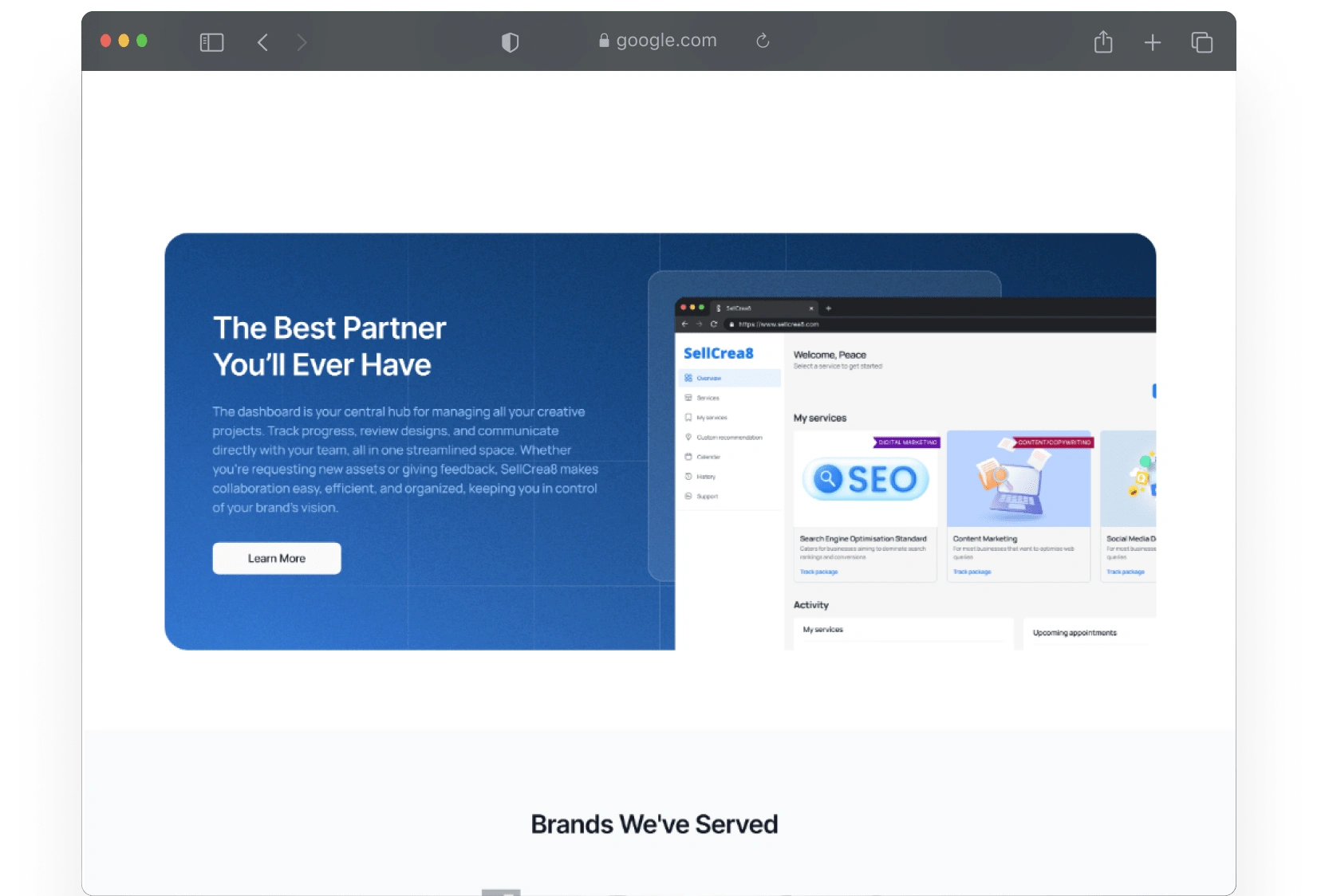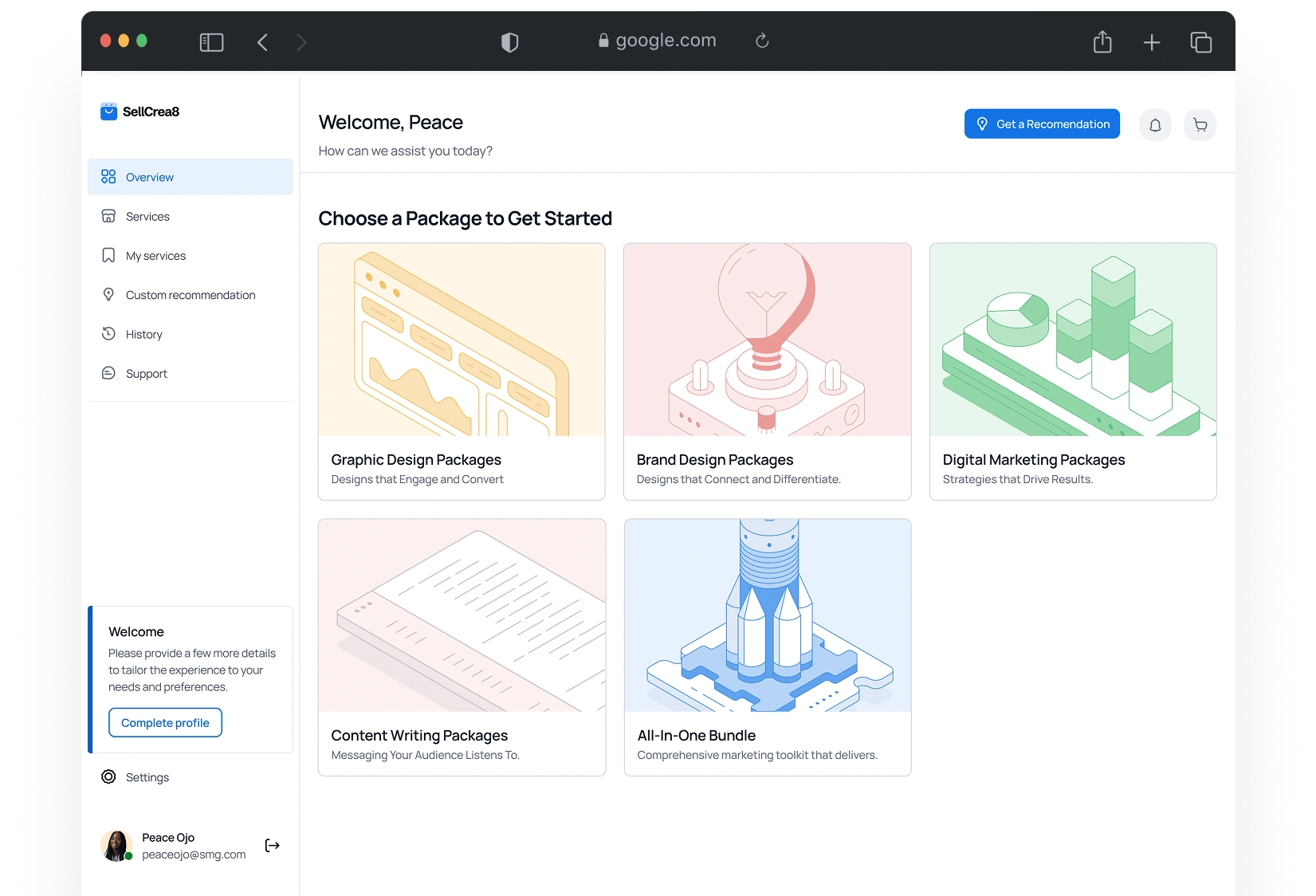 These insights shaped the foundation of SellCrea8, driving us to create a centralised, user-friendly platform that delivers affordable, high-quality, and personalised digital services with trust and convenience.