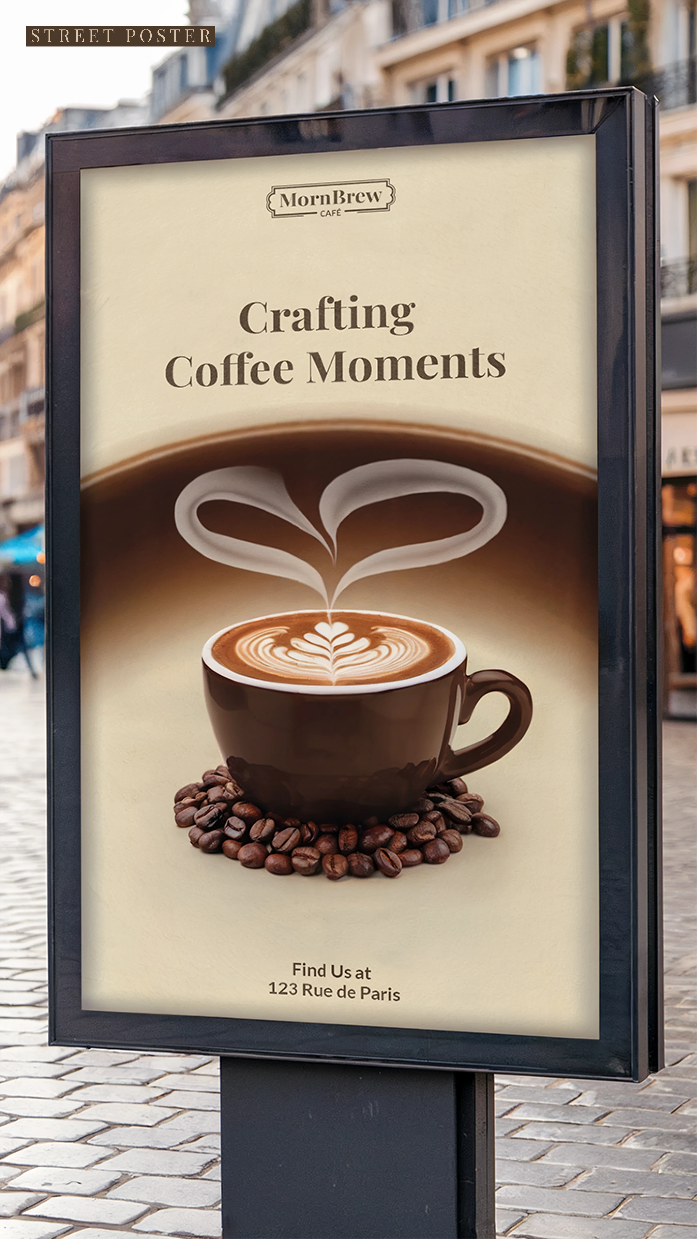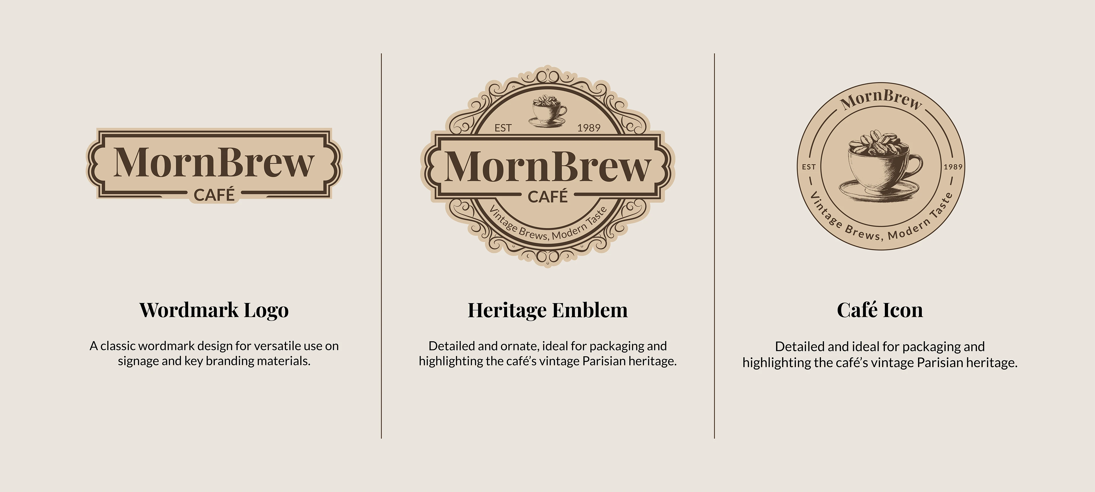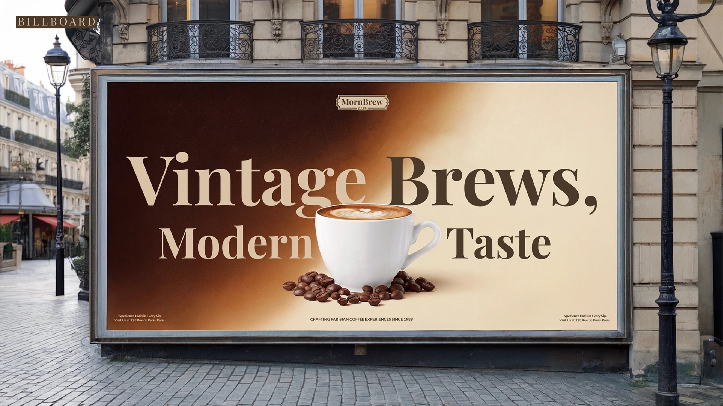 MornBrew Café is a Parisian-inspired coffee brand blending vintage charm with modern aesthetics. This project showcases a complete branding journey—from herita…
