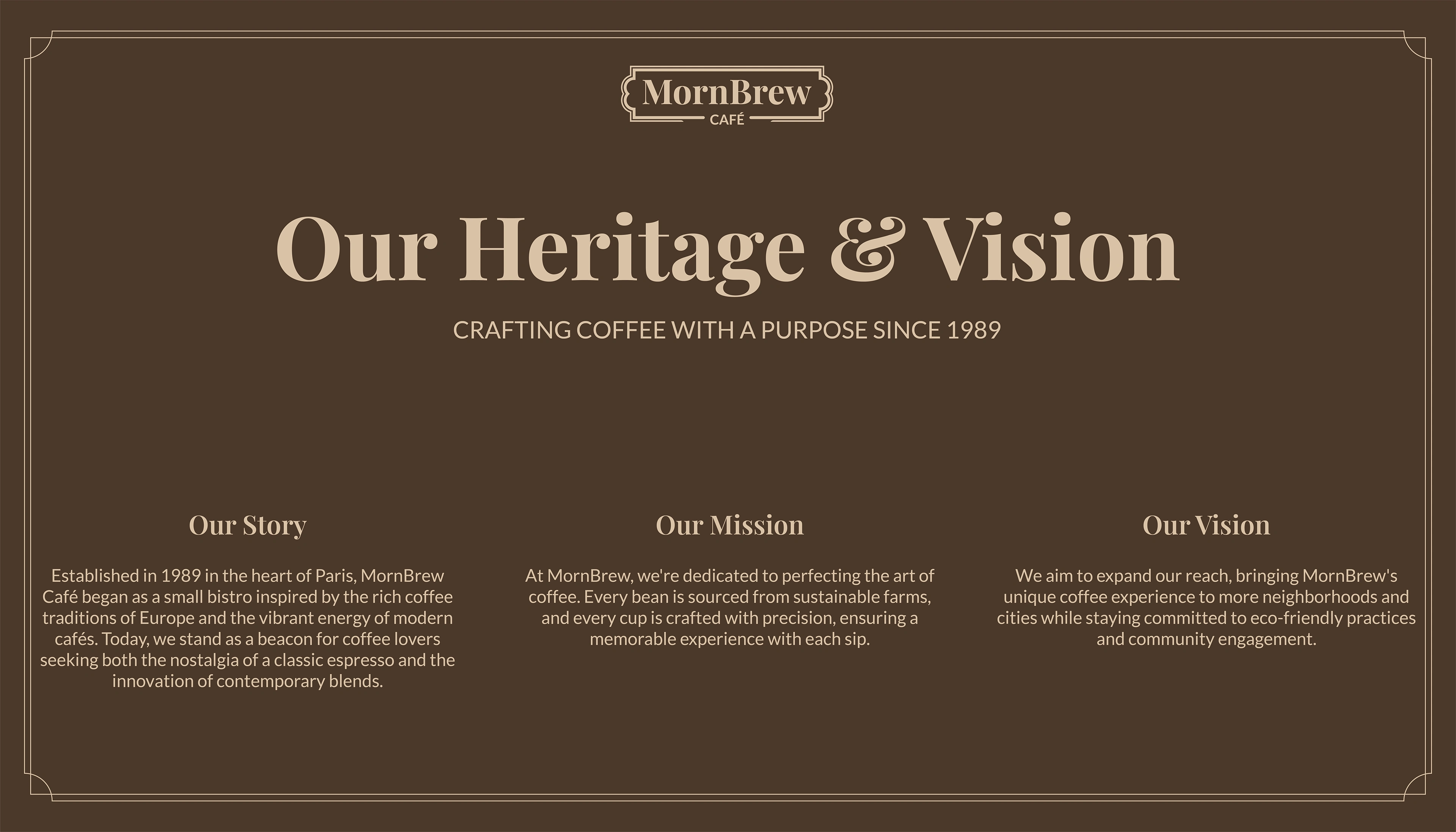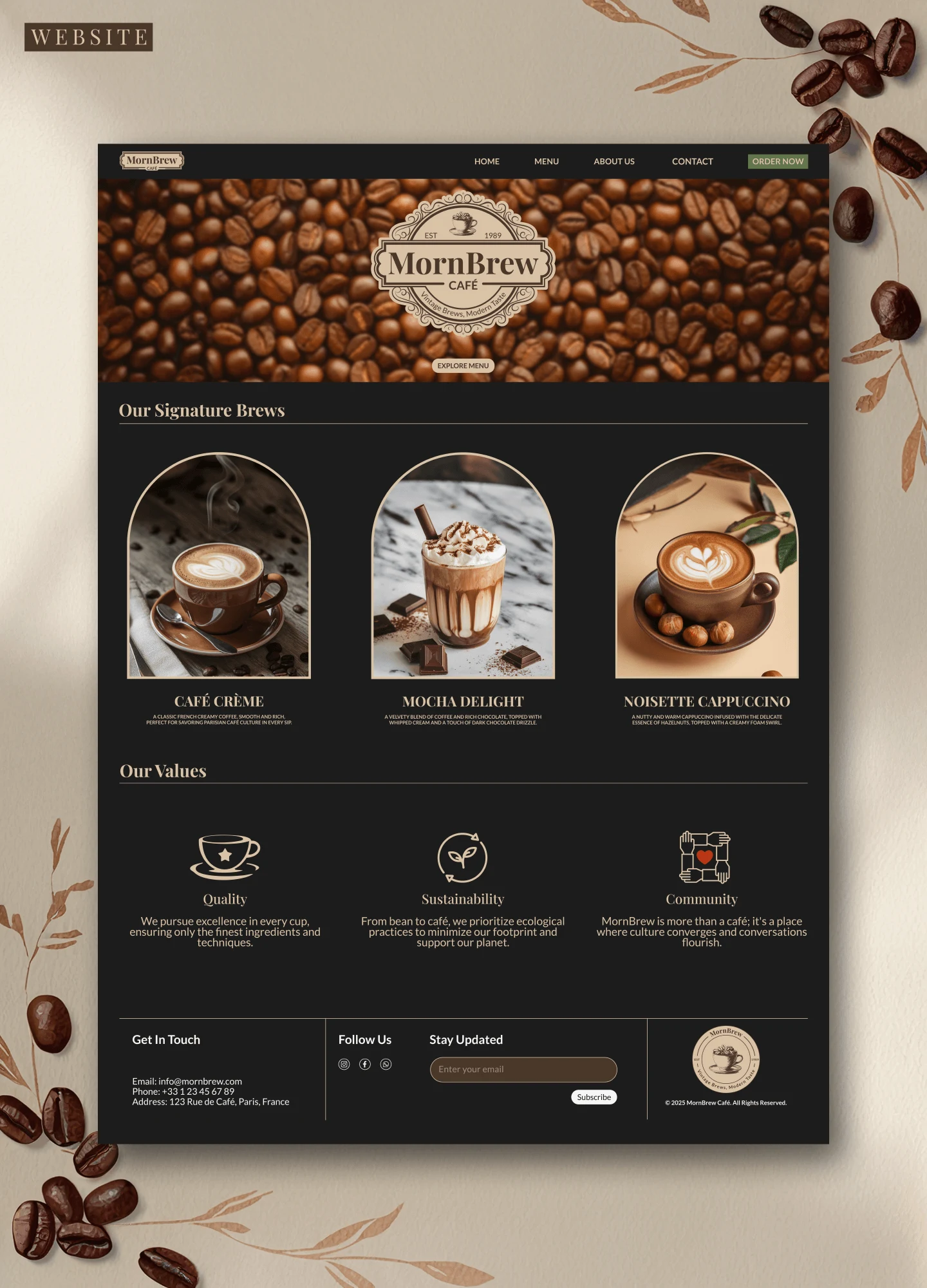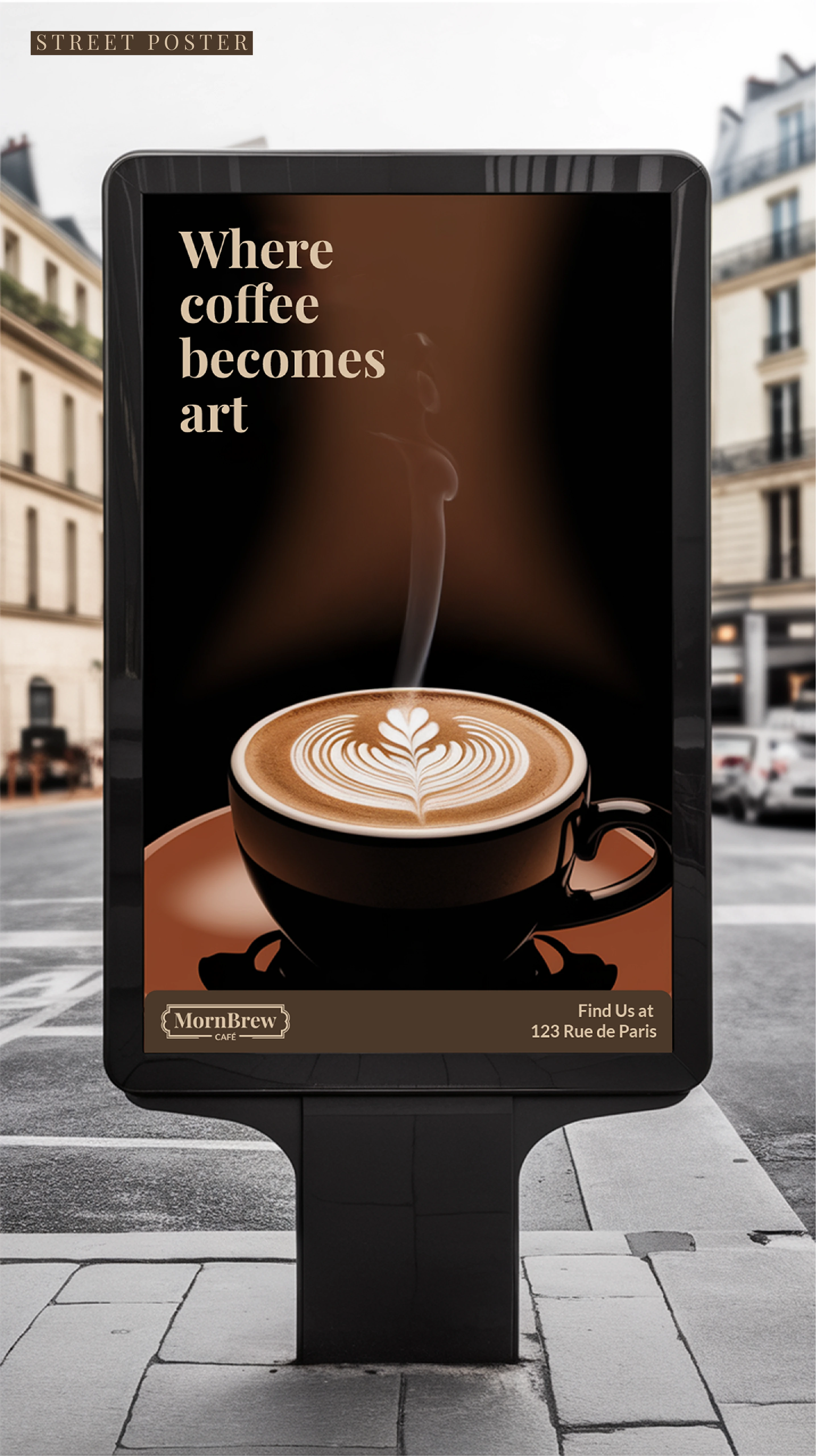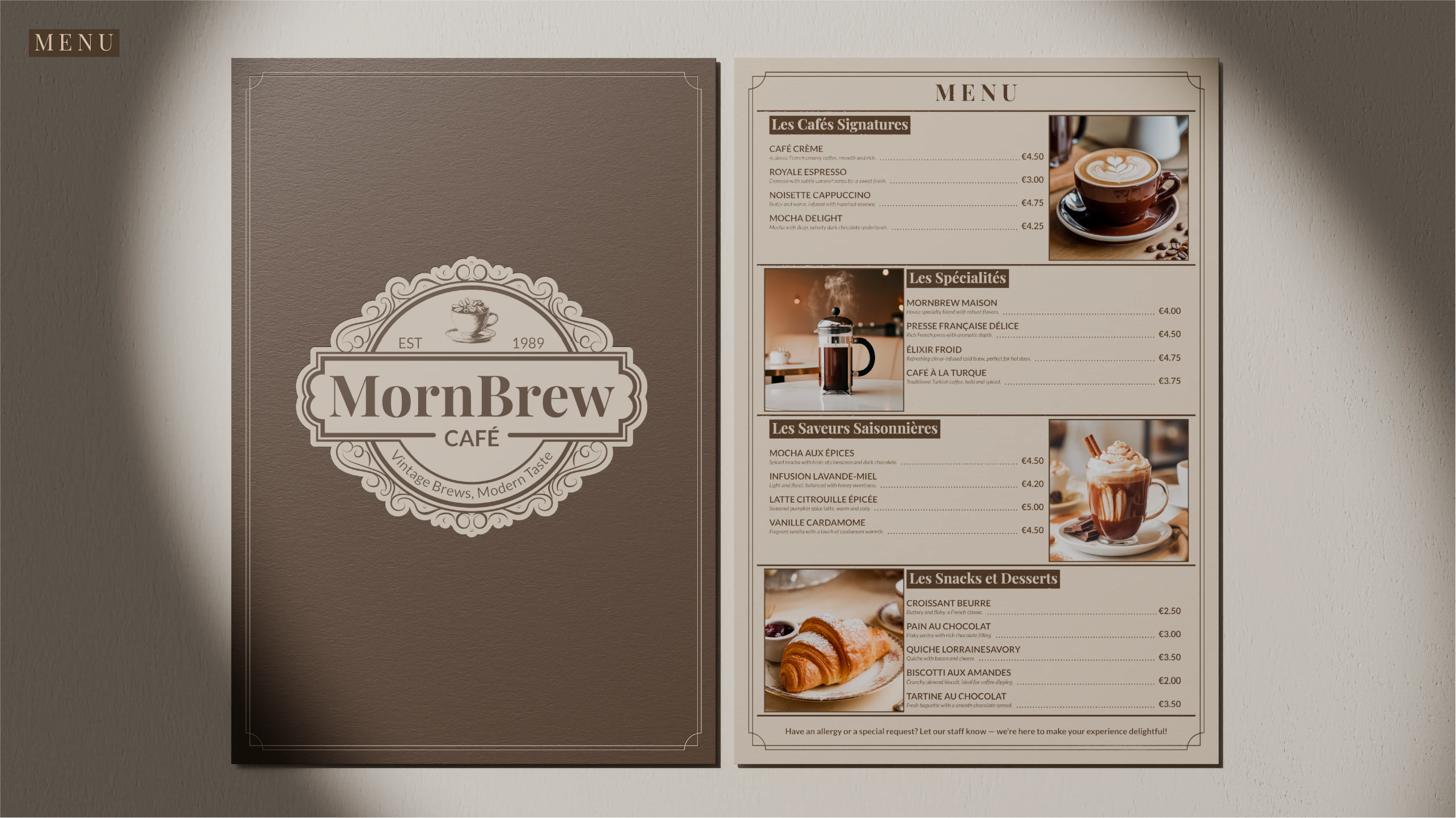 MornBrew Café is a Parisian-inspired coffee brand blending vintage charm with modern aesthetics. This project showcases a complete branding journey—from herita…