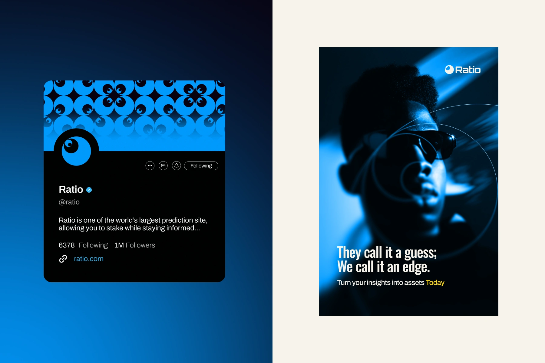 Ratio is a next-generation insight and prediction platform designed for a digital native audience. The brand bridges the gap between casual social debate and high stakes prediction, transforming personal hunches into tangible digital assets.