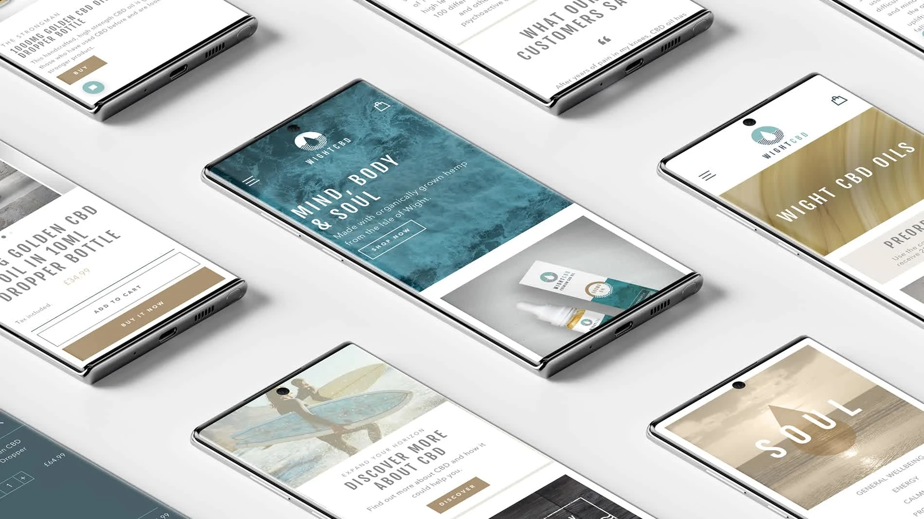 A palette inspired by the beach lifestyle was the antithesis to the garish rave like packaging of head shop CBD. Pastel blues, sandy neutrals and the gold of the oil itself created a premium feel, far removed from local shop car parks and on to sunset barbecues on the beach. It was an exhaustive project, from the original identity and branding through to packaging, print and digital marketing, ending with an e-commerce site, all of which the client was delighted with.