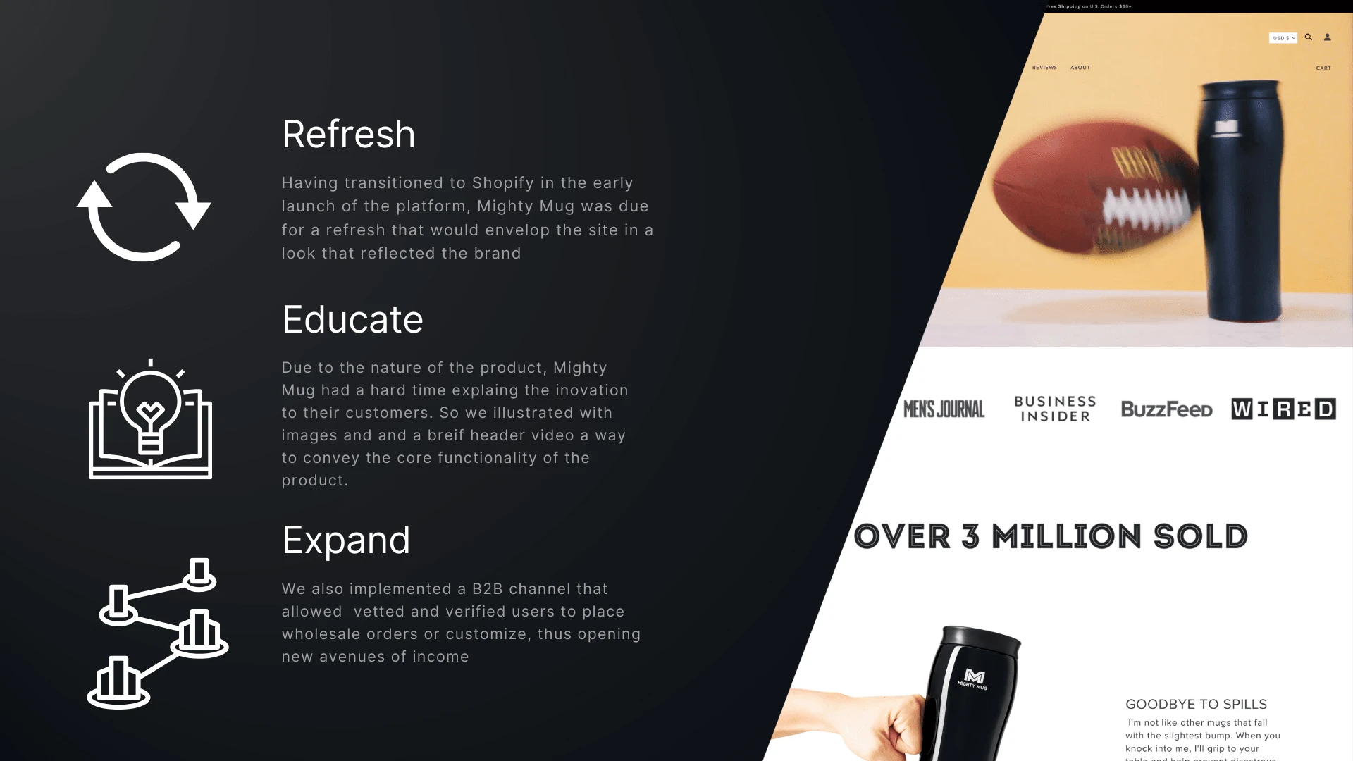 During my time with Mighty Mug, I managed the eCommerce business including managing new projects and initiatives such as development, design, and overall growth