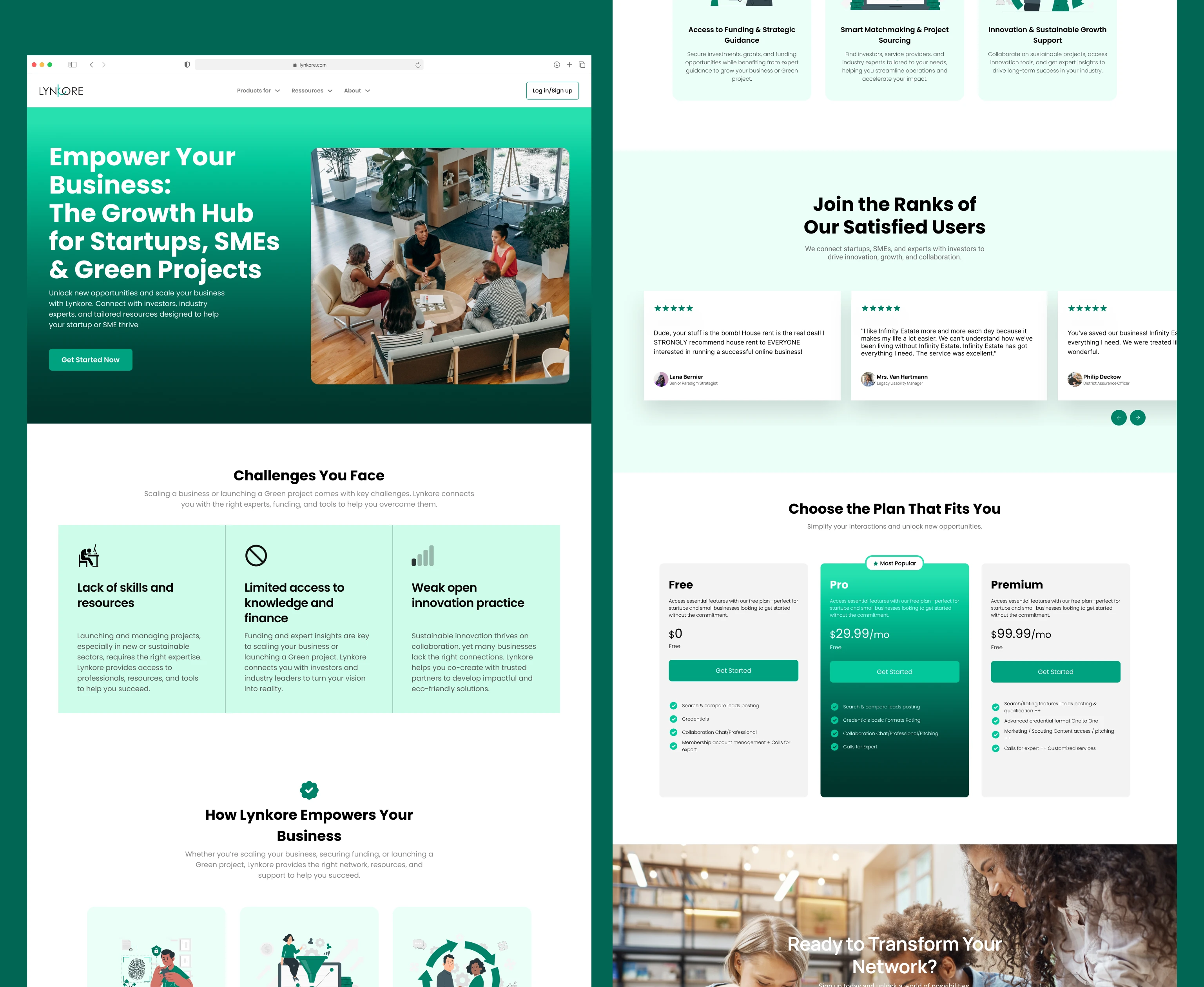 Designed a clean, user-friendly landing page UI for a business ecosystem, highlighting features, guiding users, and boosting engagement and conversions.