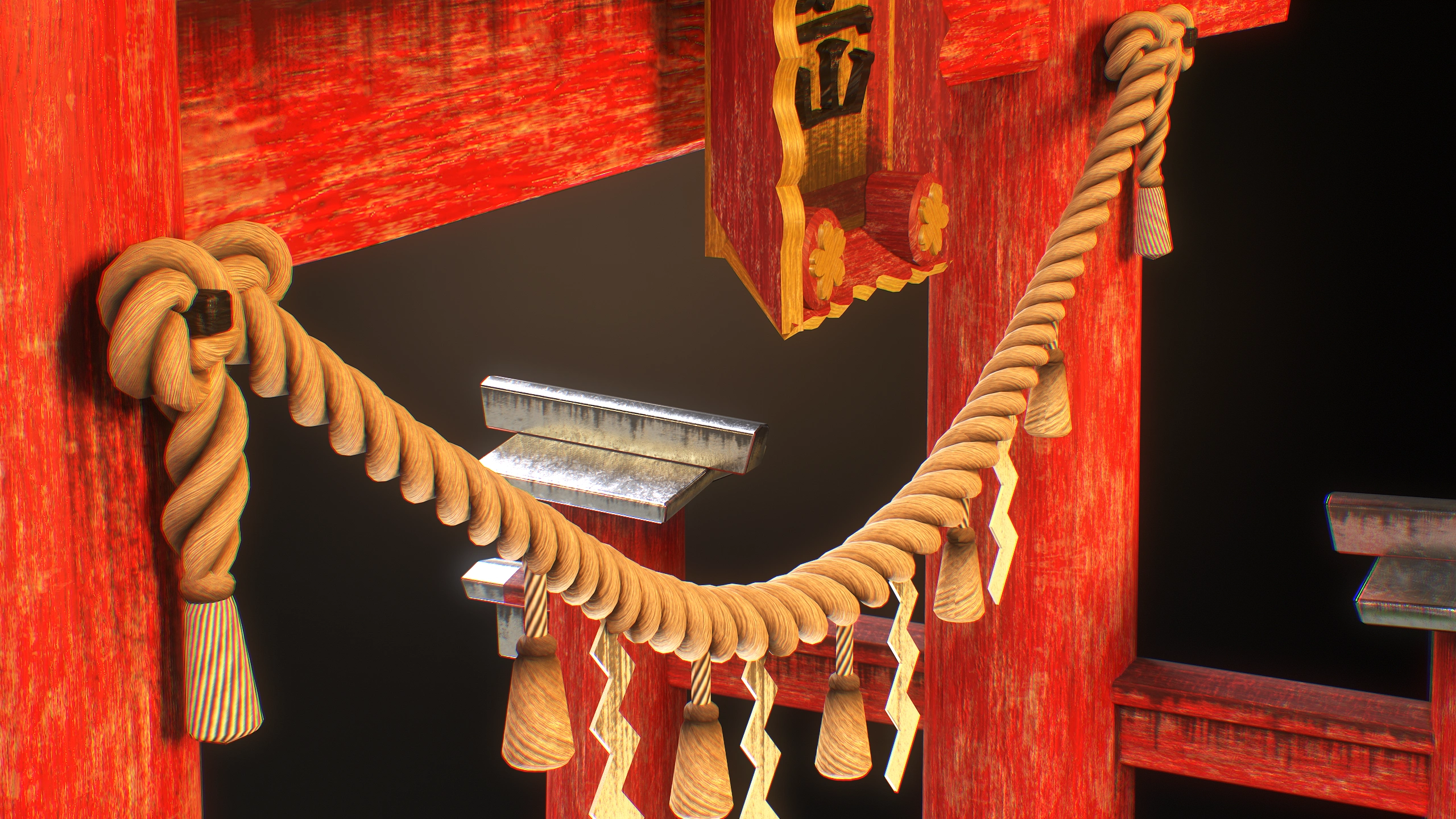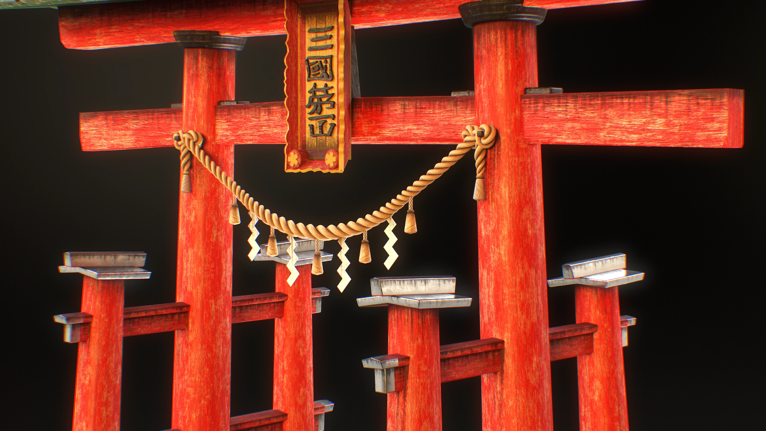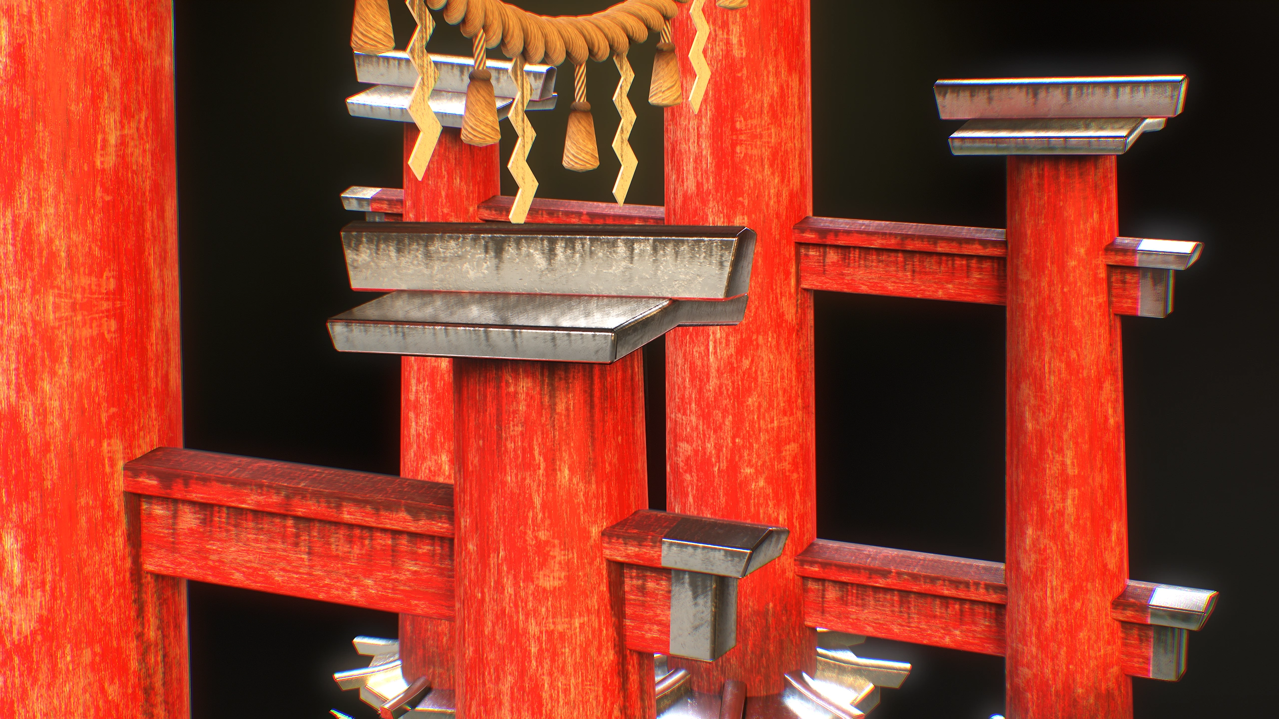 TASK: Create Japanese gates using the AAA game assets creation pipeline. Add some plants. TIME: 3 days. Blender, Substance Painter, Photoshop, Marmoset Toolbag