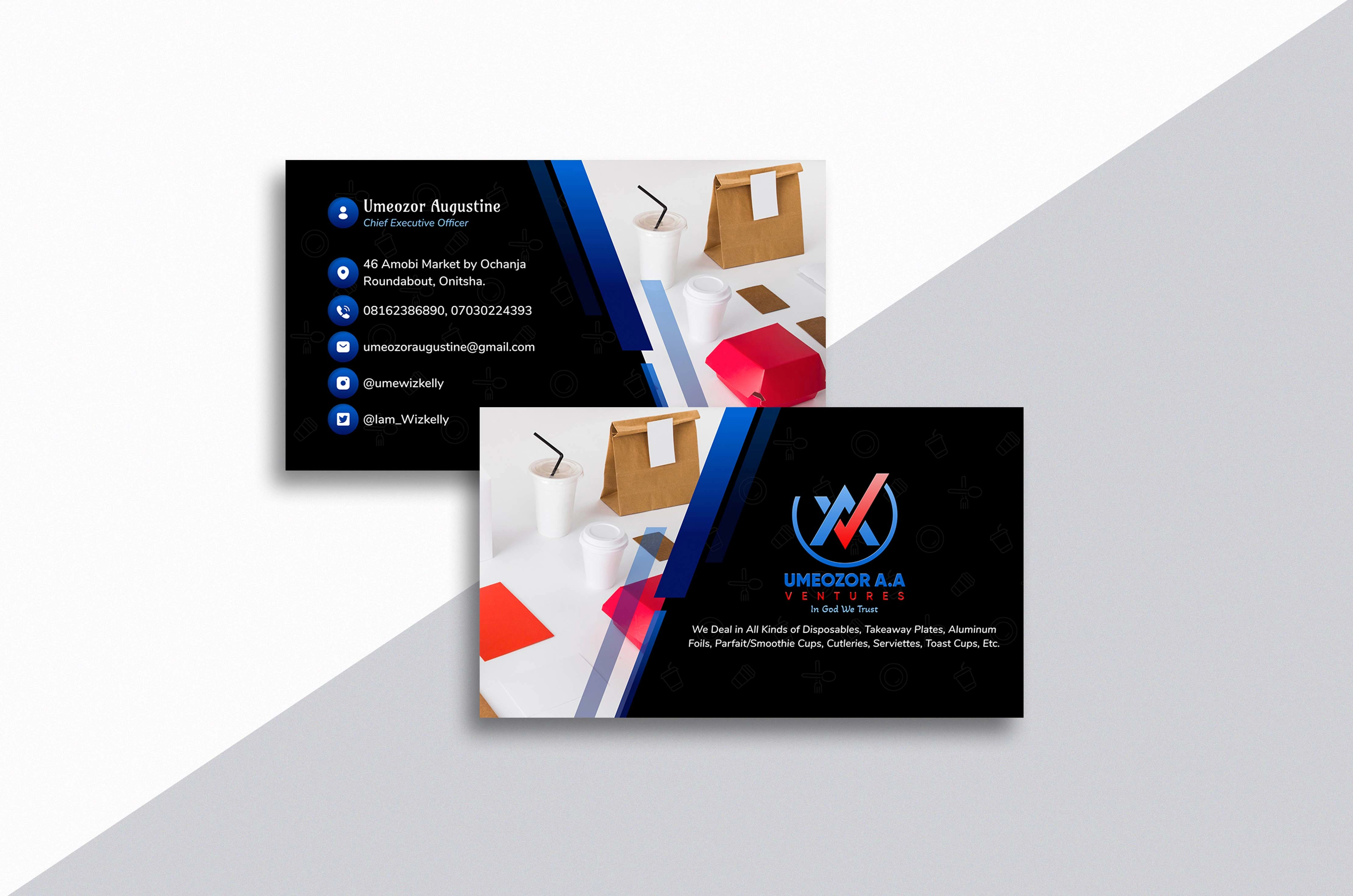 Business cards of individuals, businesses, organizations, and brands to showcase their contacts, products and services information.