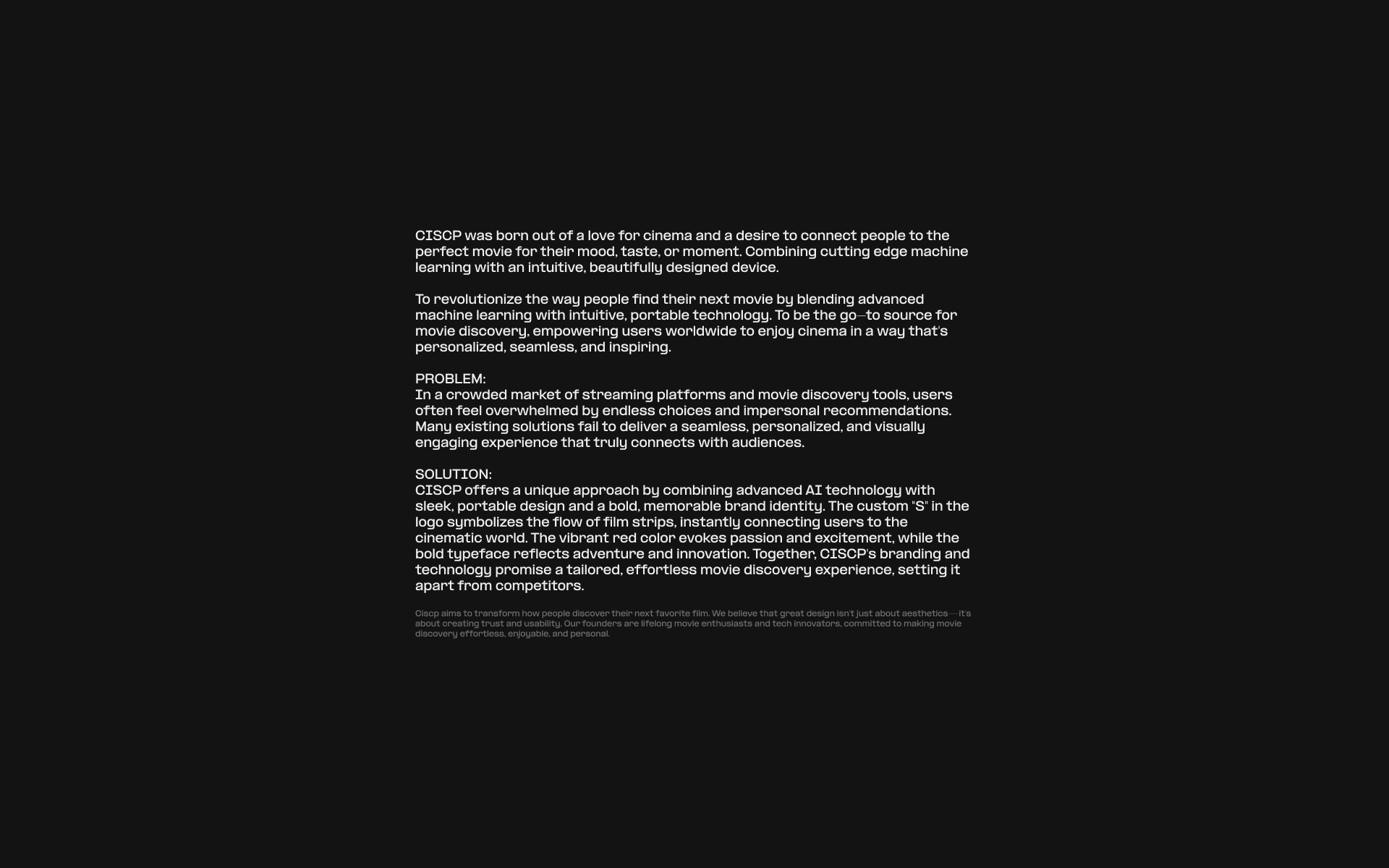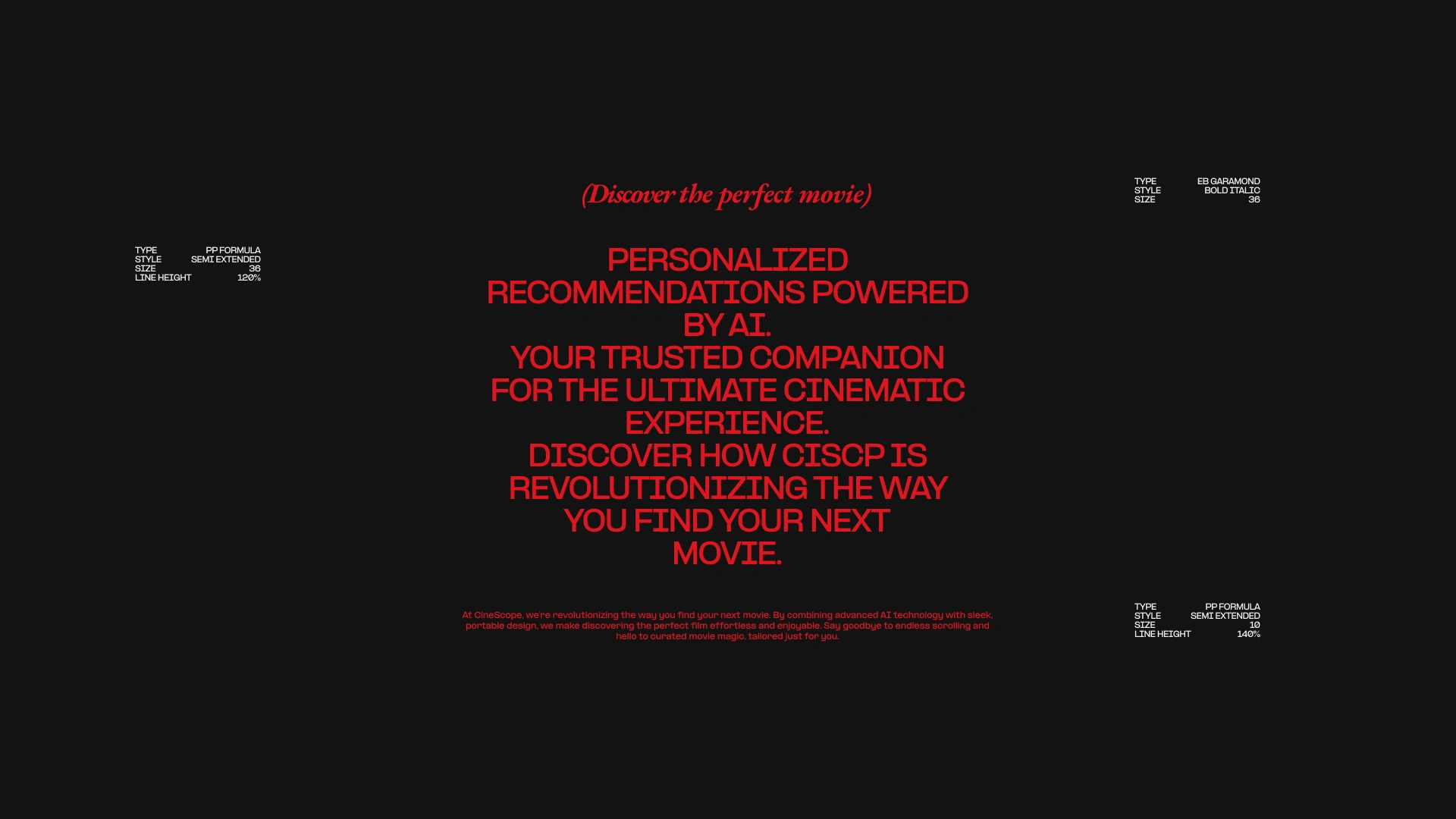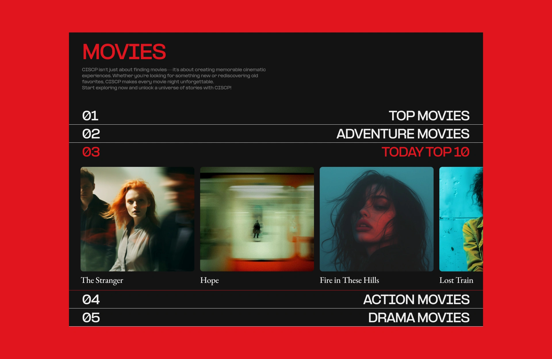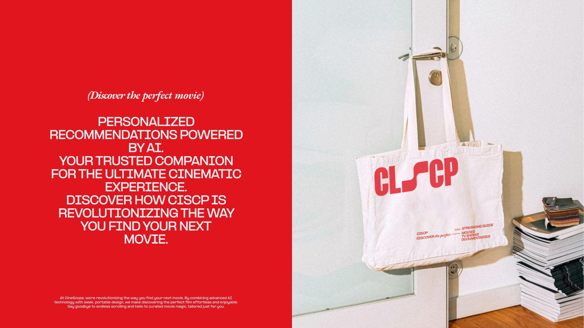 CISCP blends AI and elegant design to match you with the perfect movie, capturing cinematic passion through bold visuals and vibrant, film-inspired style.