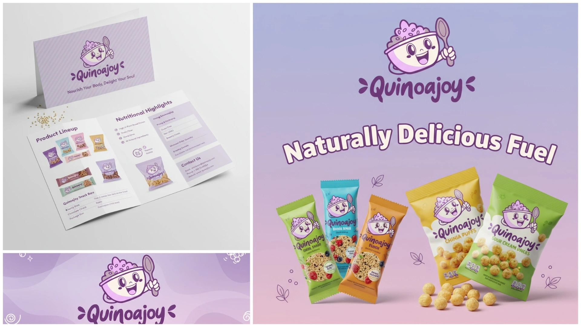 Overview: I crafted a complete brand identity and marketing campaign for a fictional quinoa snack brand, Quinoajoy, using Recraft AI's Chat mode beta (launched September 2025). This case study highlights my ability to leverage AI-assisted design to transform vague ideas into a polished, market-ready brand in under an hour, showcasing my skills for potential clients.