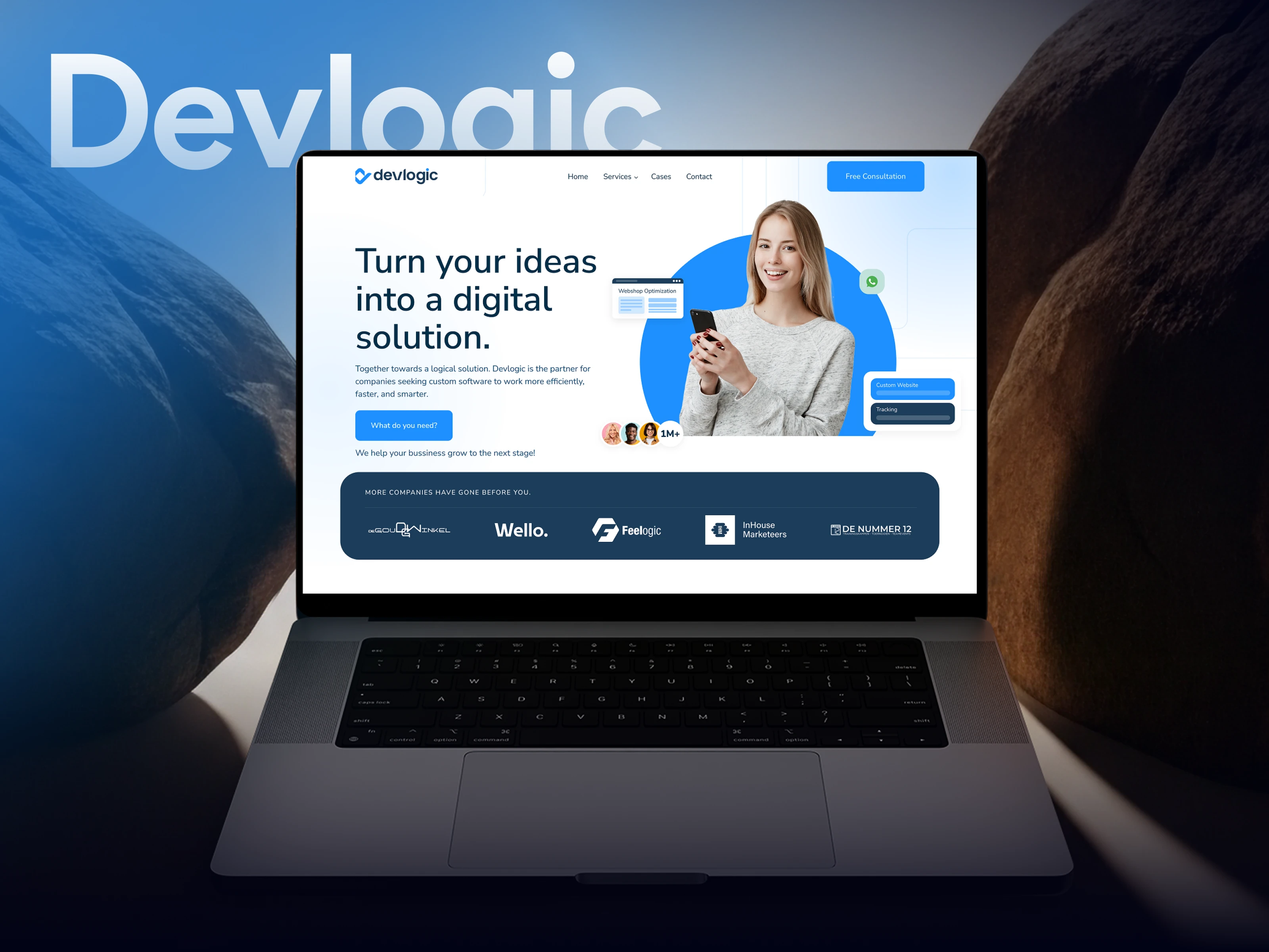 Transforming complex software development into easily digestible benefits for a broad audience was a core challenge. We also needed to powerfully showcase their custom solutions and their real-world impact on client efficiency. Authentically capturing DevLogic's collaborative process and problem-solving approach was key, alongside designing an intuitive user journey that highlighted their deep expertise and seamlessly encouraged project inquiries. To address these challenges, our team designed a clean, professional, and highly informative website that prioritized crystal-clear communication and an engaging user experience. We built a streamlined service architecture that effectively presented their specialized offerings and undeniable benefits, while prominently featuring calls to action to guide visitors effortlessly towards meaningful engagement. All of this was delivered within a modern, fully responsive design, ensuring a flawless experience across all devices.