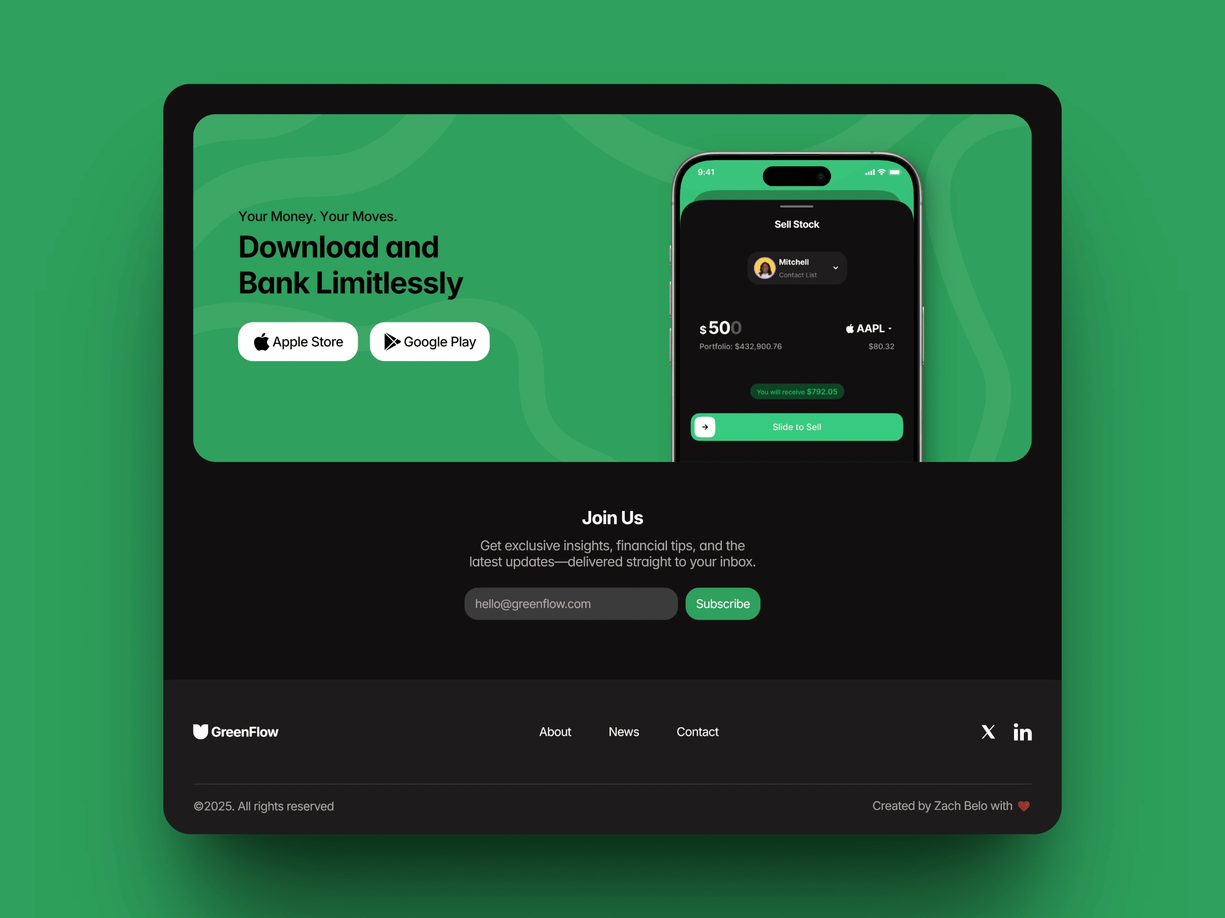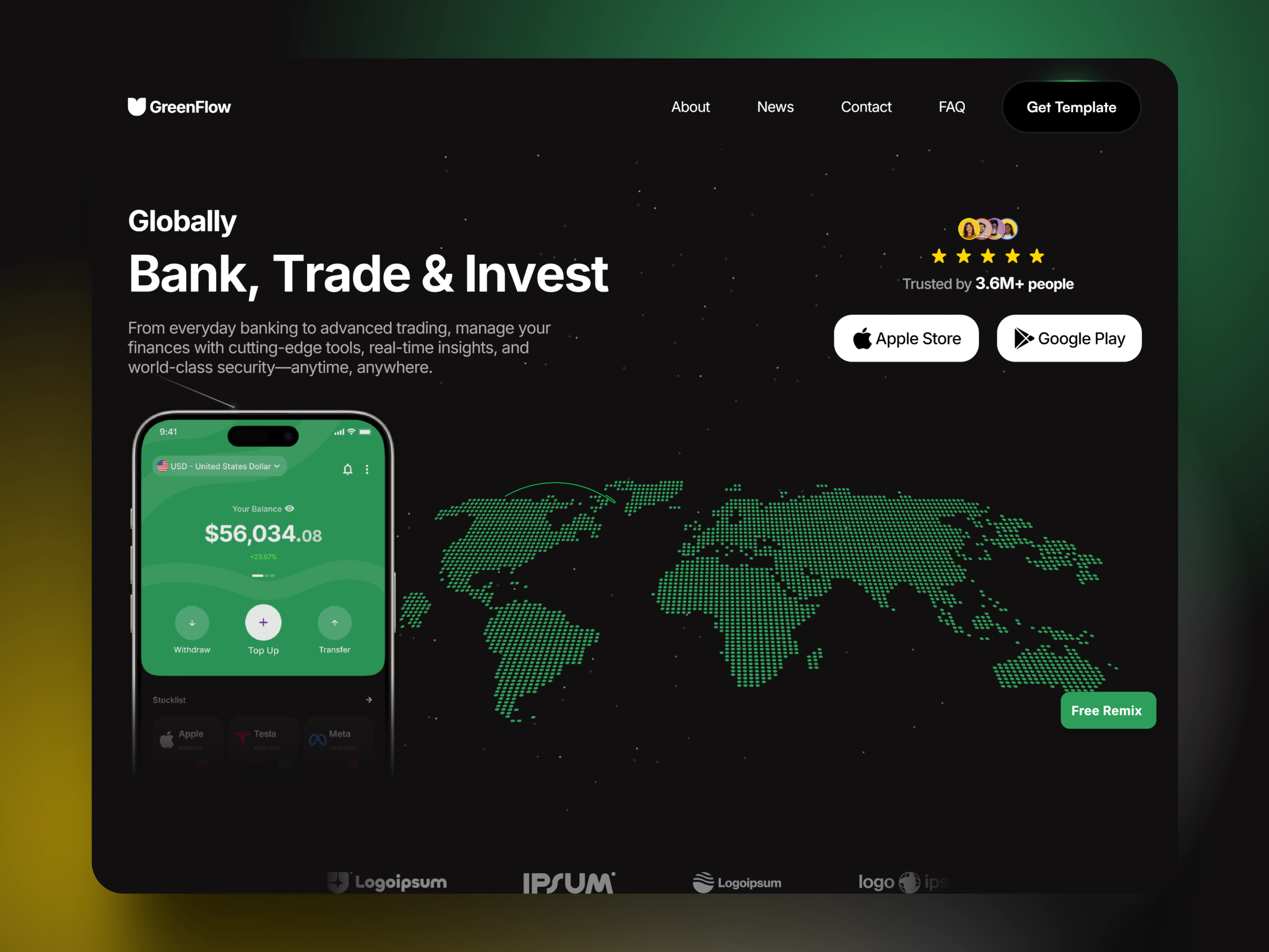 GreenFlow is a sleek and modern website template designed for fintech startups, solopreneurs, and Web3 finance innovators. Whether you're launching a banking app, investment platform, or financial service, GreenFlow provides a seamless way to showcase your products, engage users, and establish credibility. With its clean design, intuitive layout, and conversion-focused sections, it’s the perfect foundation to elevate your brand and drive customer engagement.