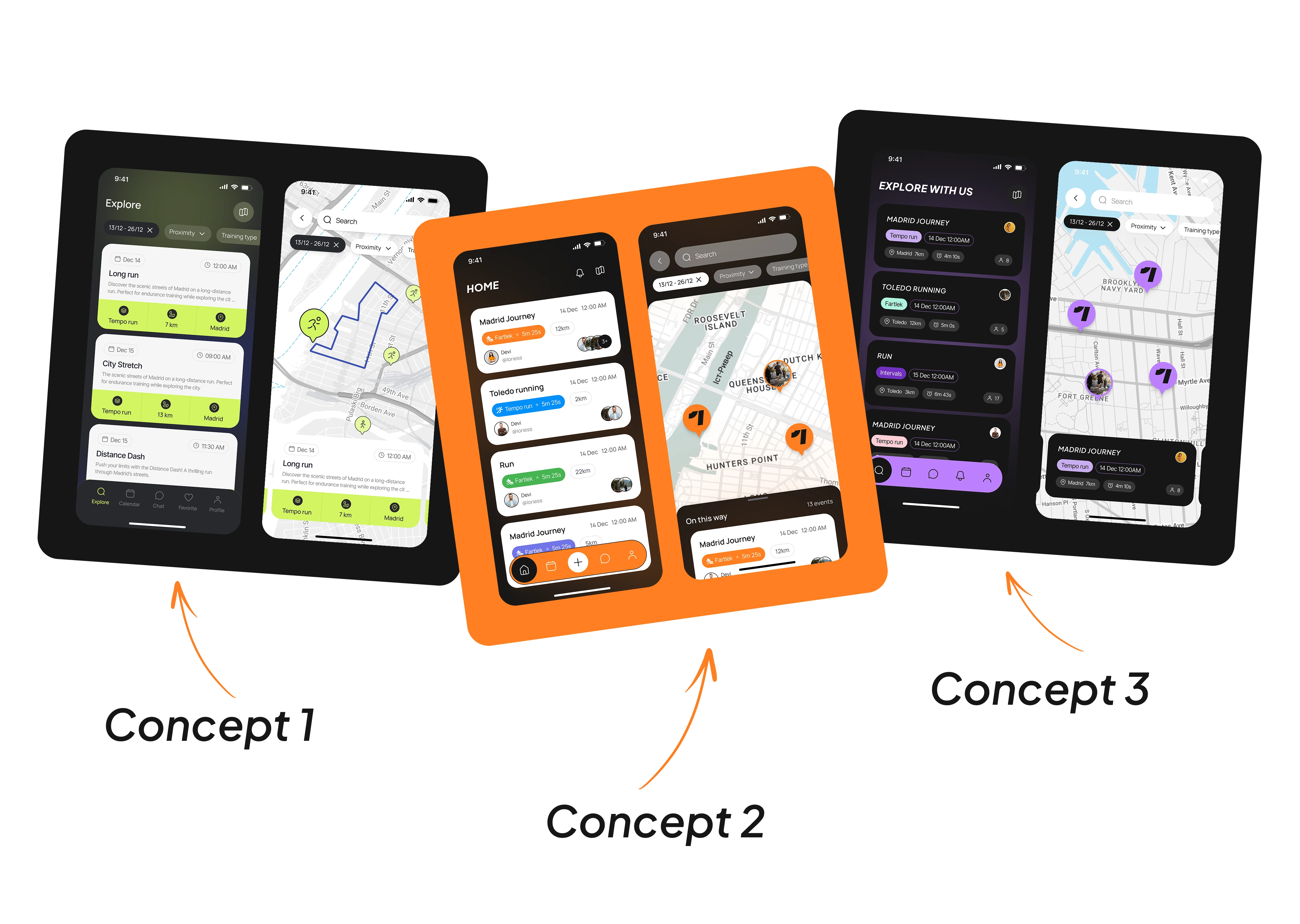 Designed a social running app for organizing group runs, tracking pace and distance, and discovering new routes with friends.