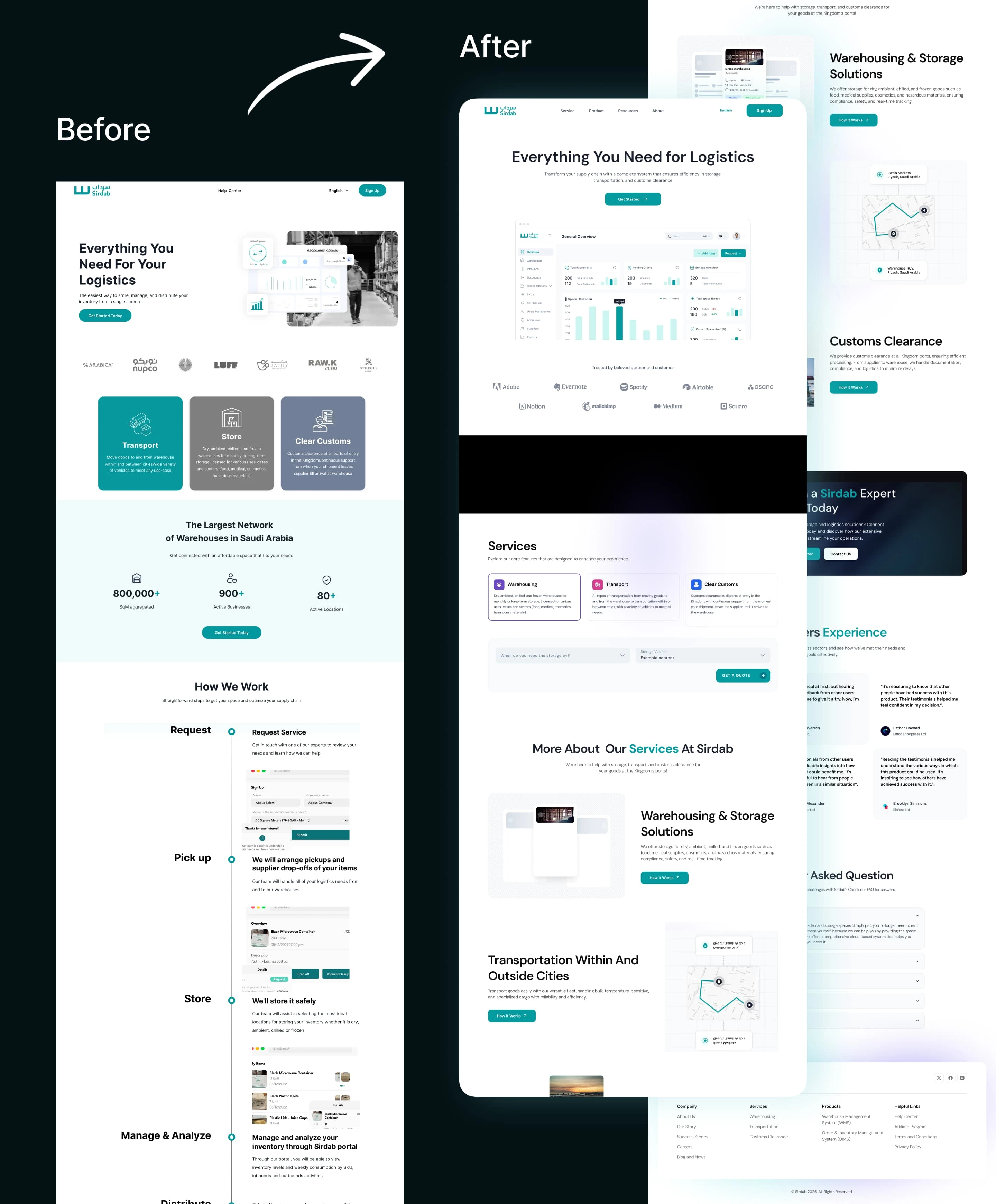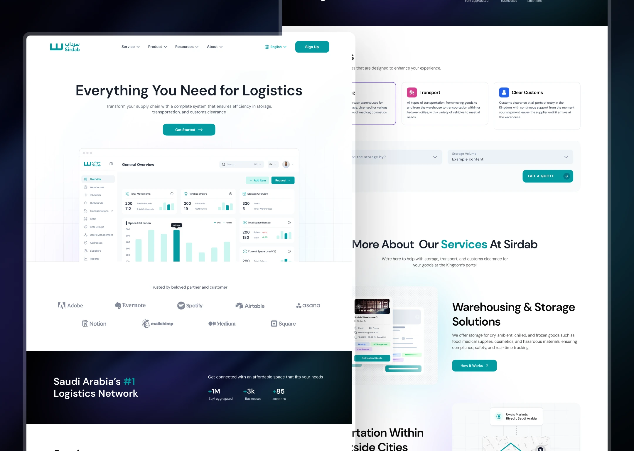 Sirdab is Saudi Arabia's leading B2B logistics platform offering end-to-end supply chain solutions—including warehousing, transportation, and customs clearance—across 85+ locations with over 1M SqM of aggregated storage. Their platform serves businesses ranging from e-commerce sellers to enterprise distributors.