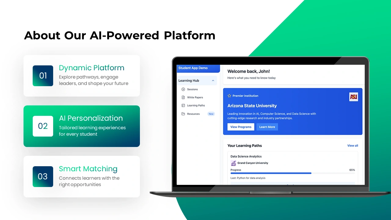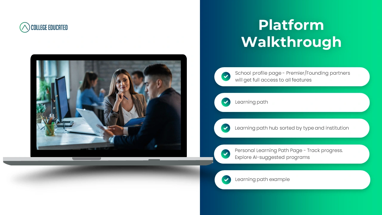 The presentation deck focused on how College Educated aligns education with real-world workforce needs, helping learners upskill, reskill, and access meaningful career pathways.