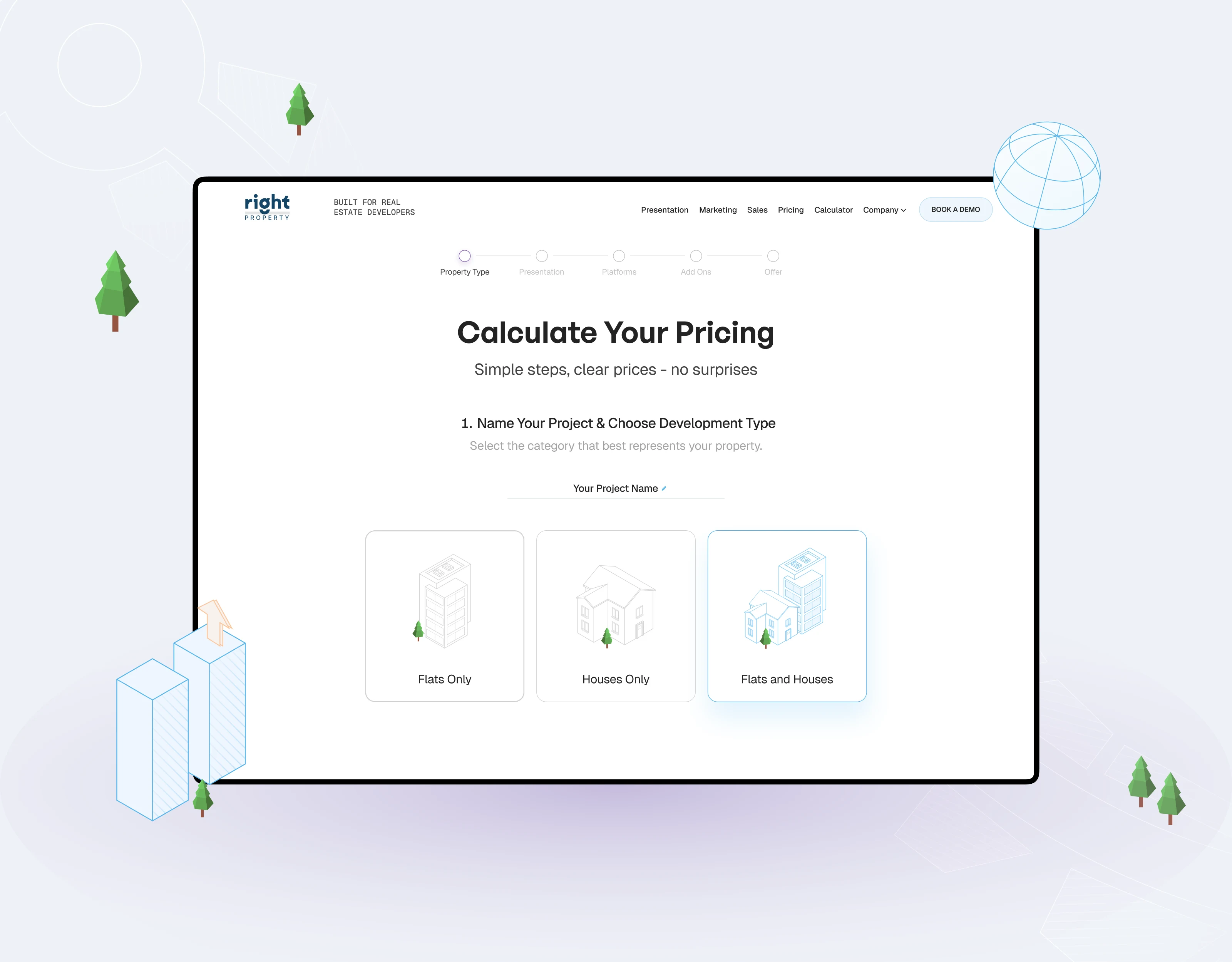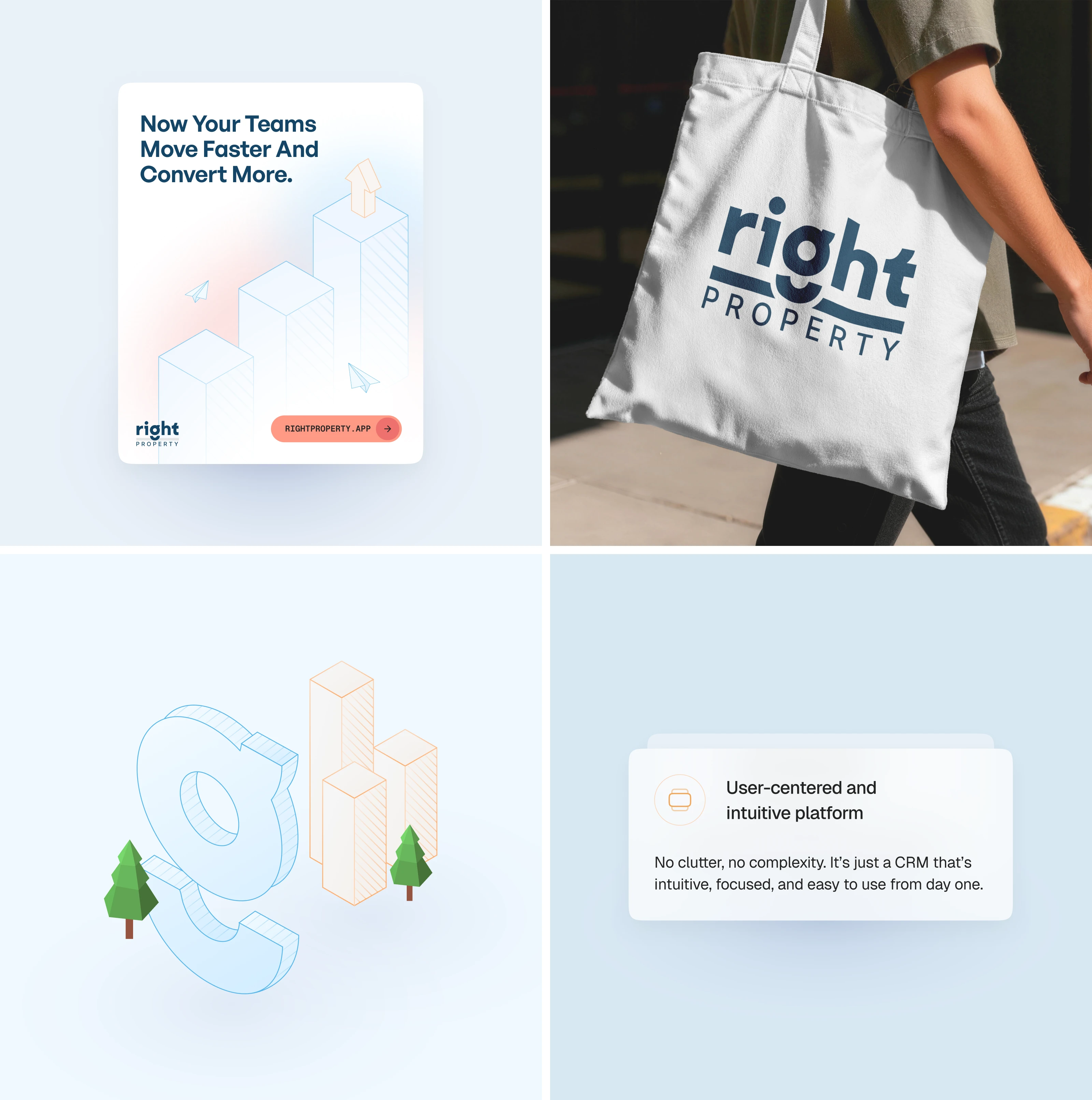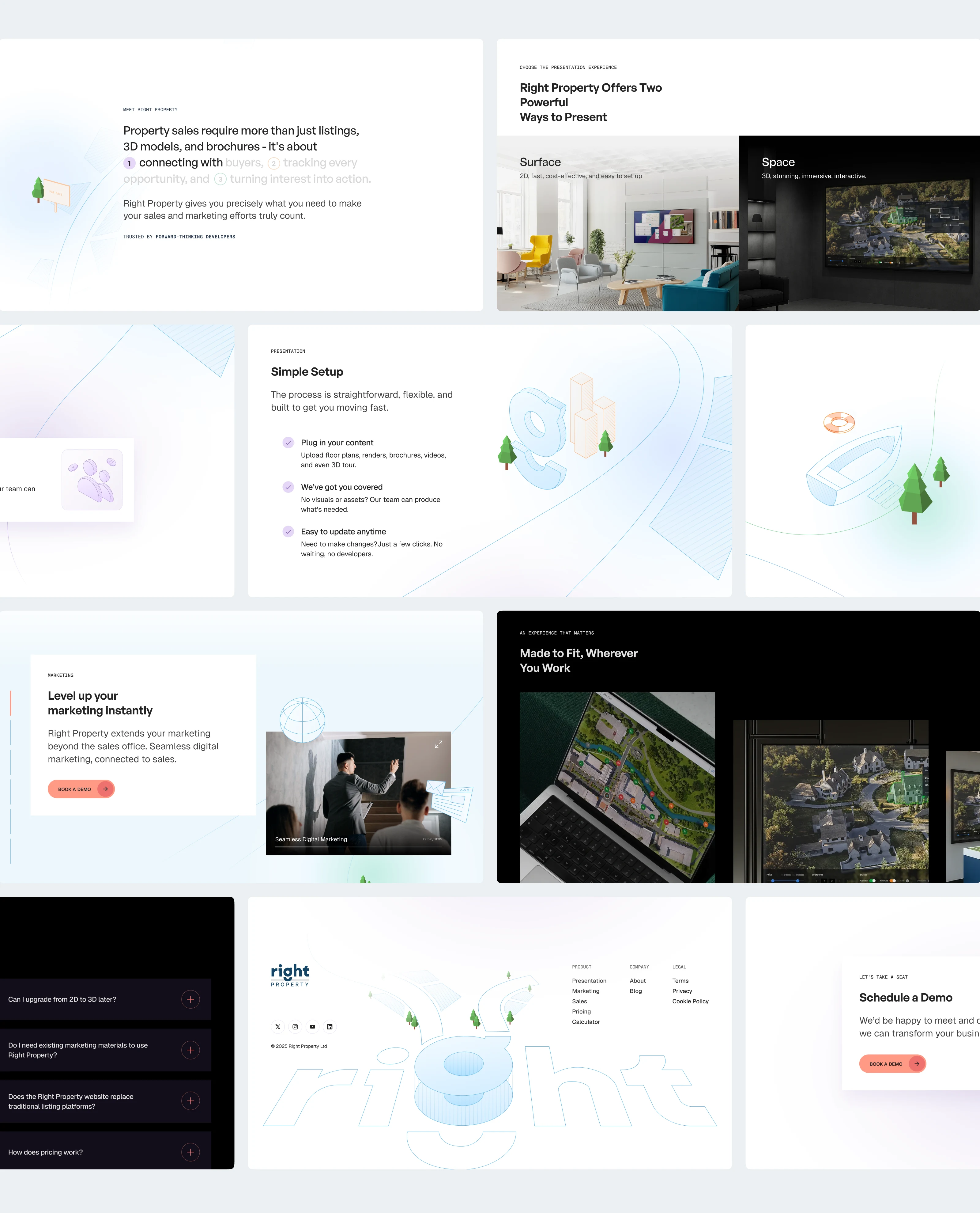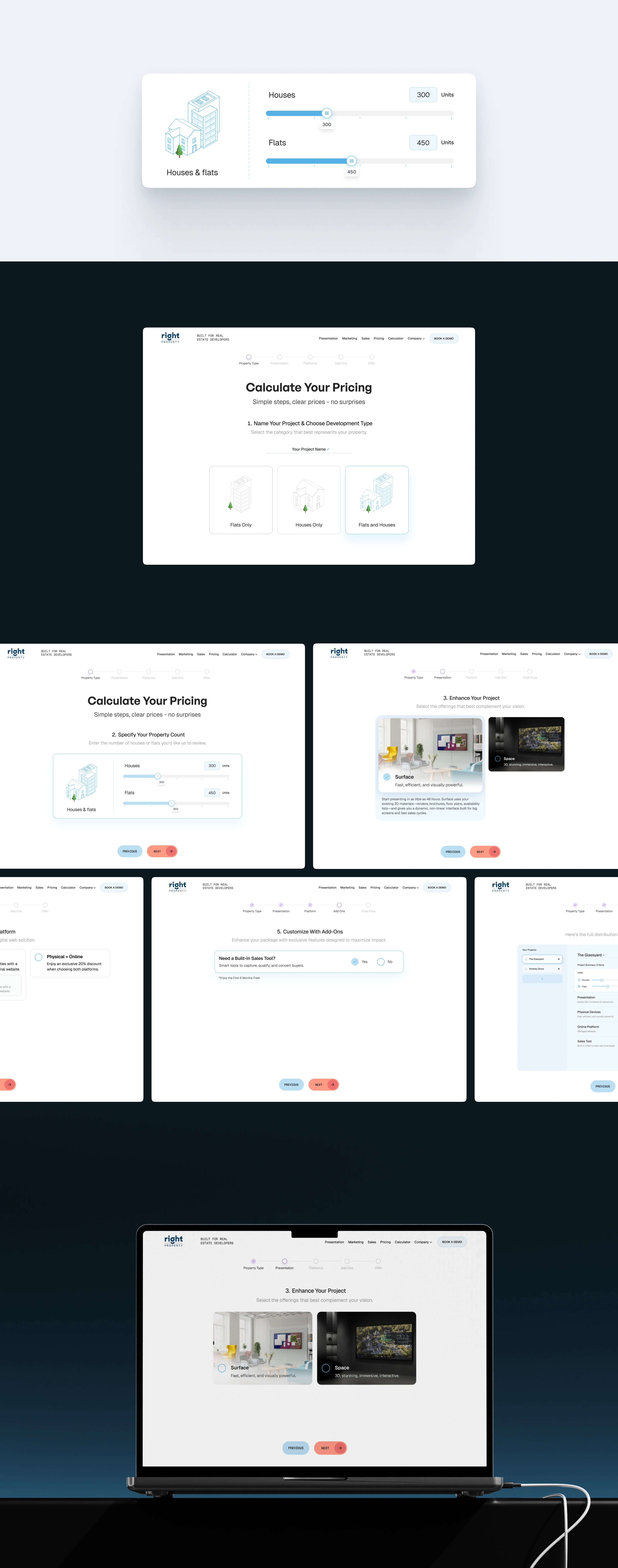 End-to-end brand and product design for a prop-tech platform, including web, motion, and an automated proposal tool for real estate agencies.