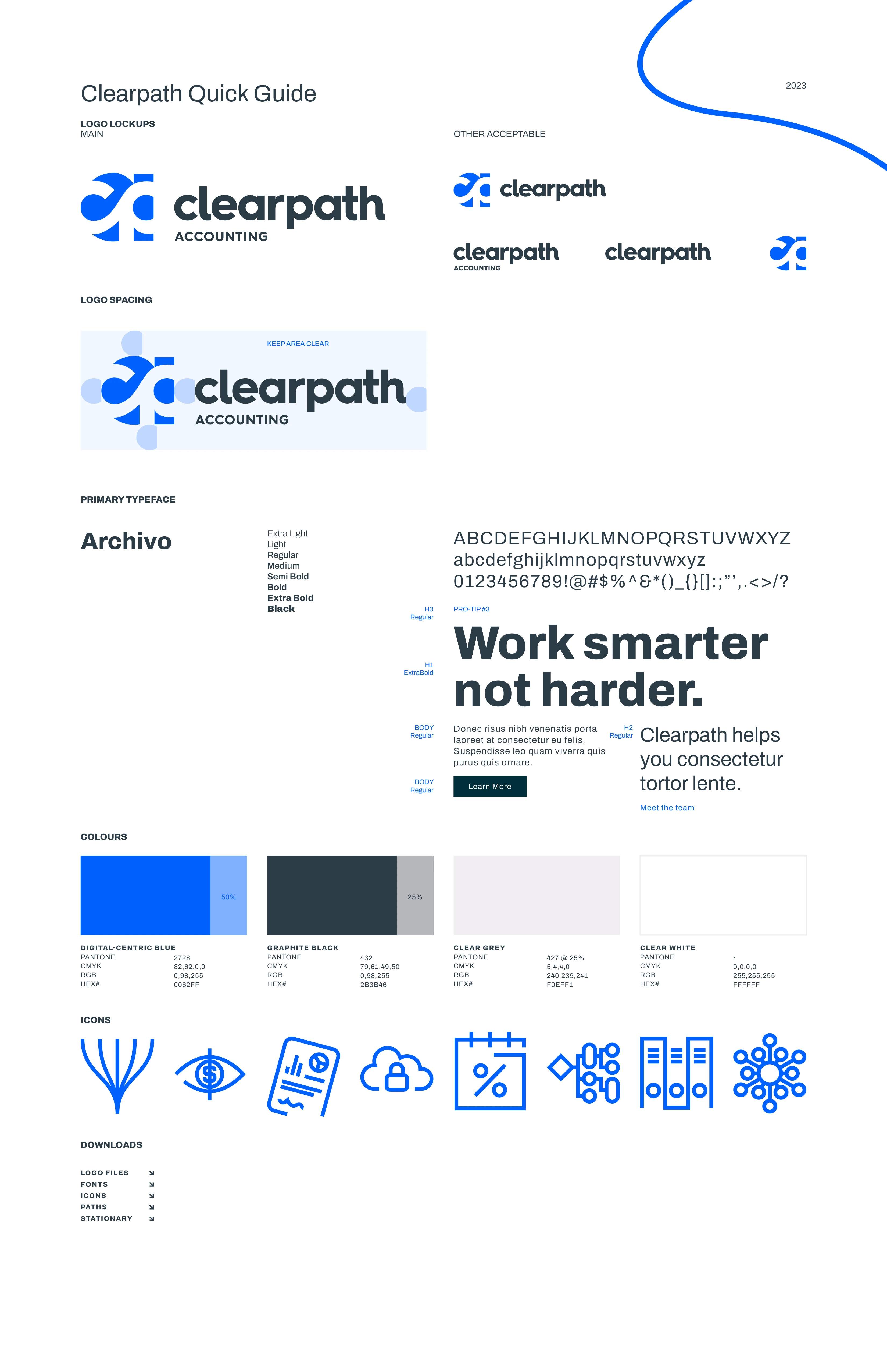 Clearpath Accounting uses a modern approach to help its clients navigate the complex world of corporate taxes and small-business management. Our team helped realize their vision through a clean, simple brand, starting with the name Clearpath. The identity is a play on their professional organization - CPA - weaving a ‘clear path’ through the negative space of the ‘a’.