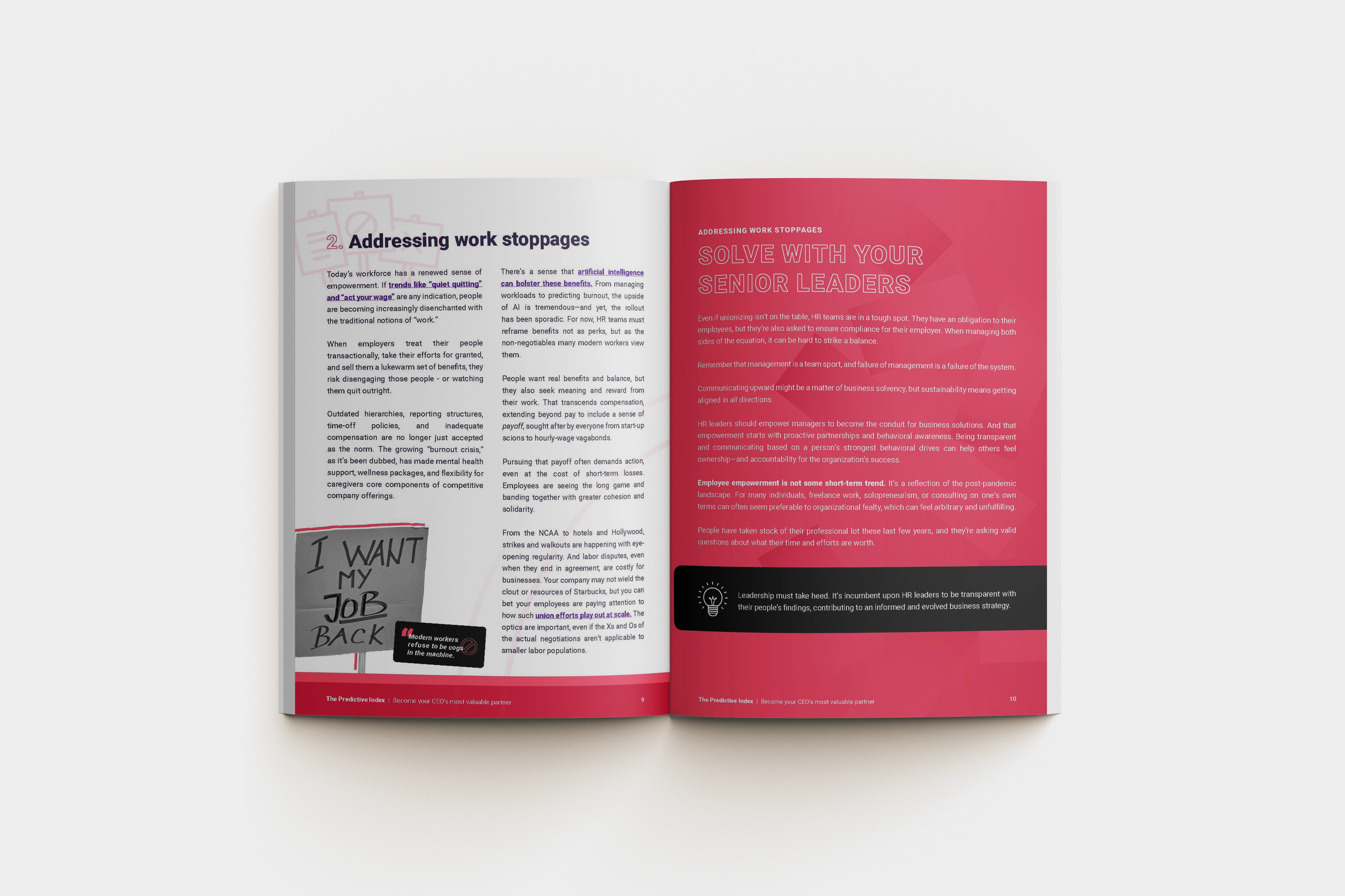 Discover how to become your CEO's most valuable partner with The Predictive Index's eBook. Gain insights into leveraging talent optimization strategies to align your organization's goals with powerful workforce insights. Learn practical approaches to enhance leadership effectiveness, drive team performance, and ultimately, contribute to sustainable business growth. Explore actionable steps and real-world examples to empower HR leaders in driving strategic initiatives that resonate with executive leadership.