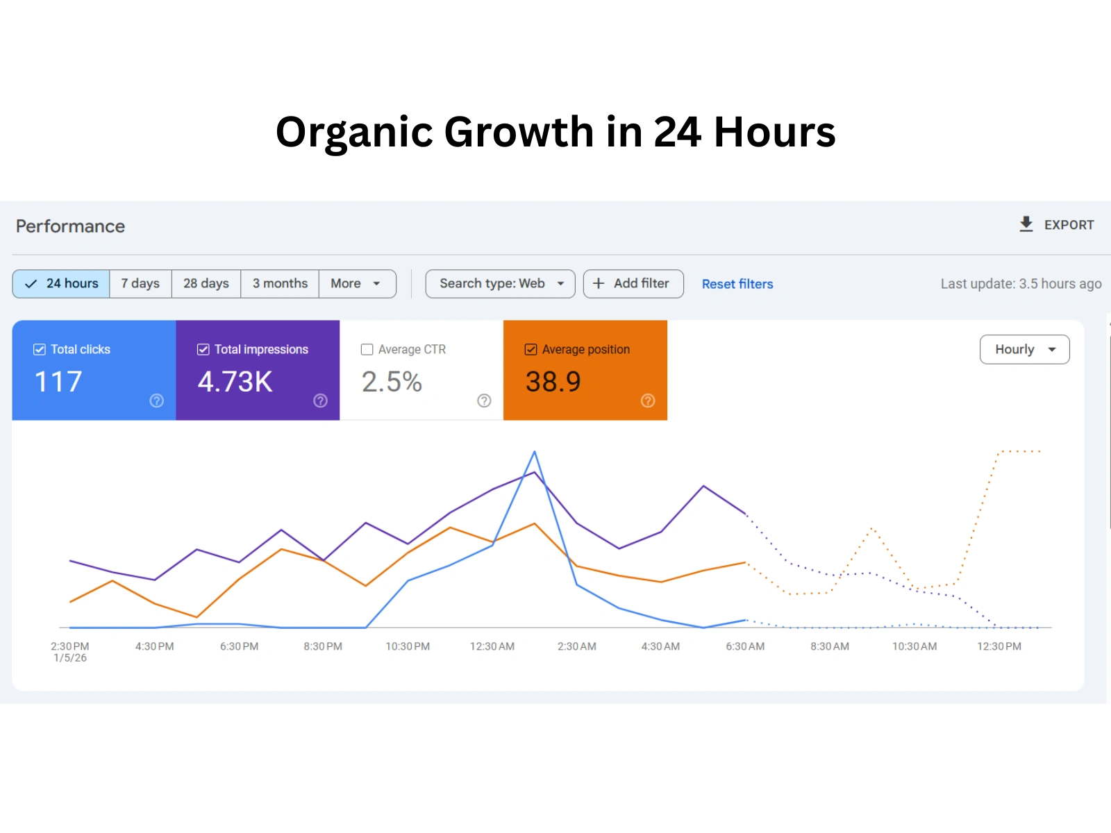 SEO isnβt about overnight rankings. Itβs about building systems that continuously attract visibility and clicks. This 24-hour snapshot reflects the early momentum of a sustainable growth strategy.