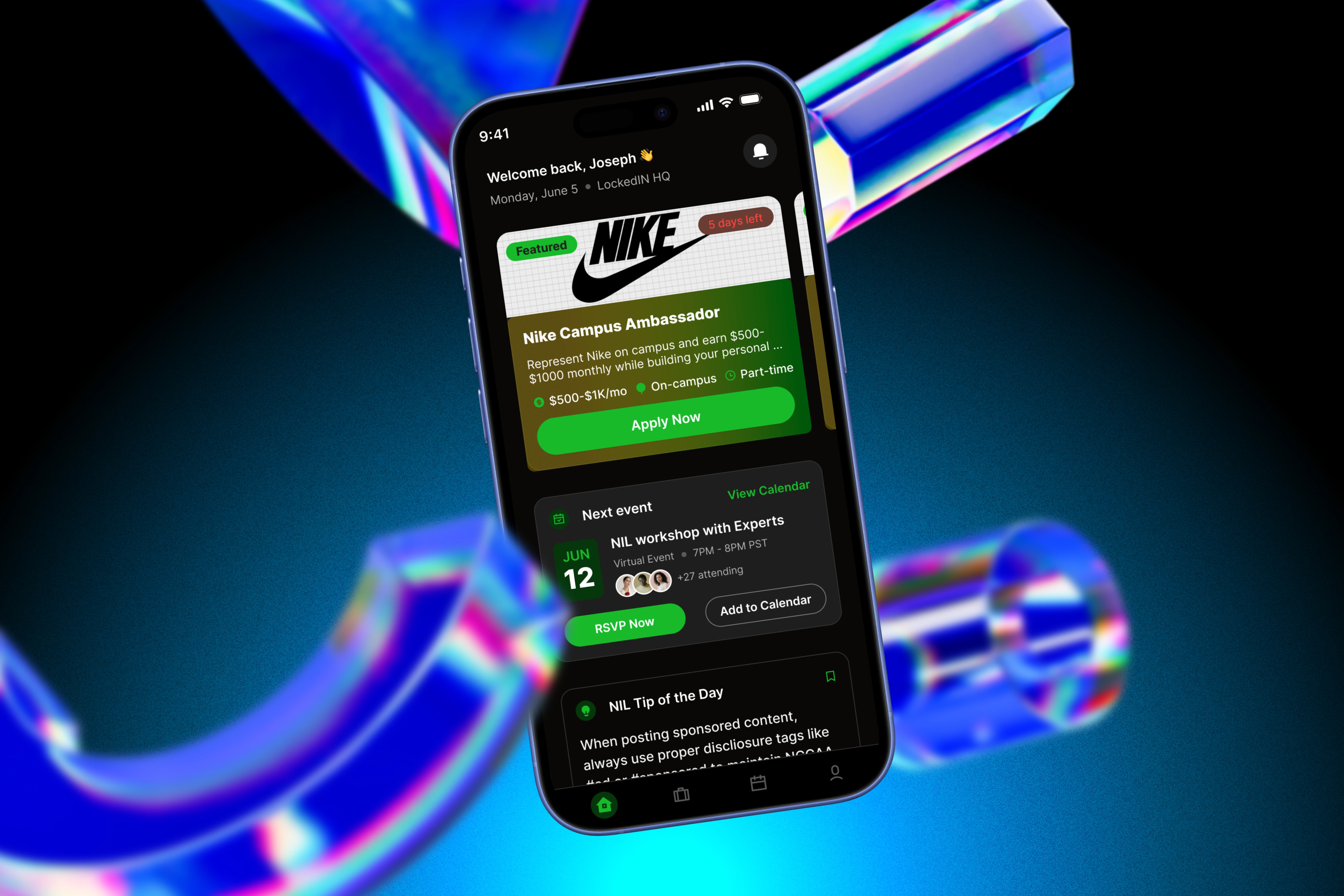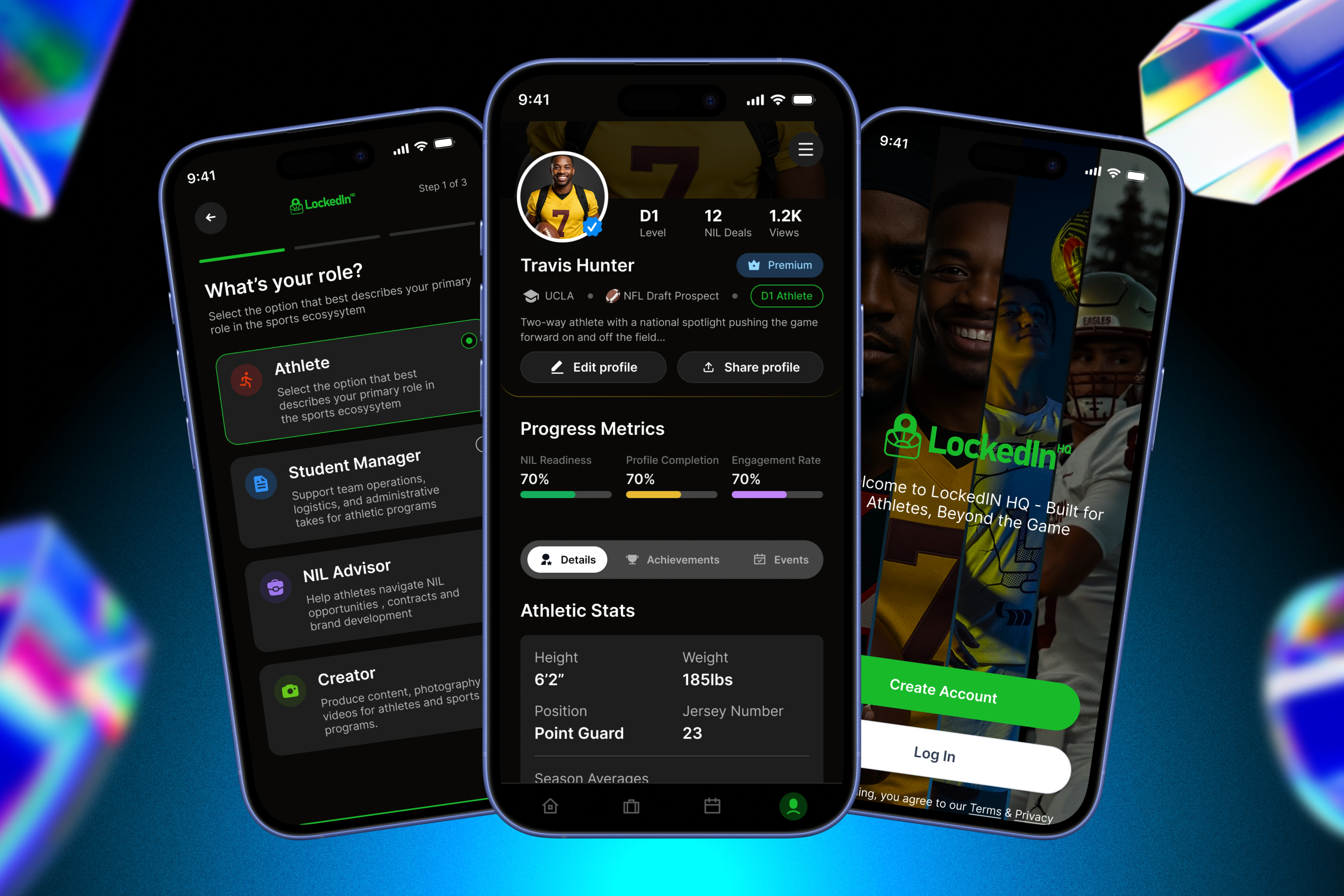 The core product, the LockedIn HQ mobile app, needed to be a powerful tool that felt empowering, not overwhelming. The challenge was translating the brand's bold promise ("Empowering athletes to own their NIL journey") into a tangible, easy-to-use mobile experience that could handle three complex, critical functions: