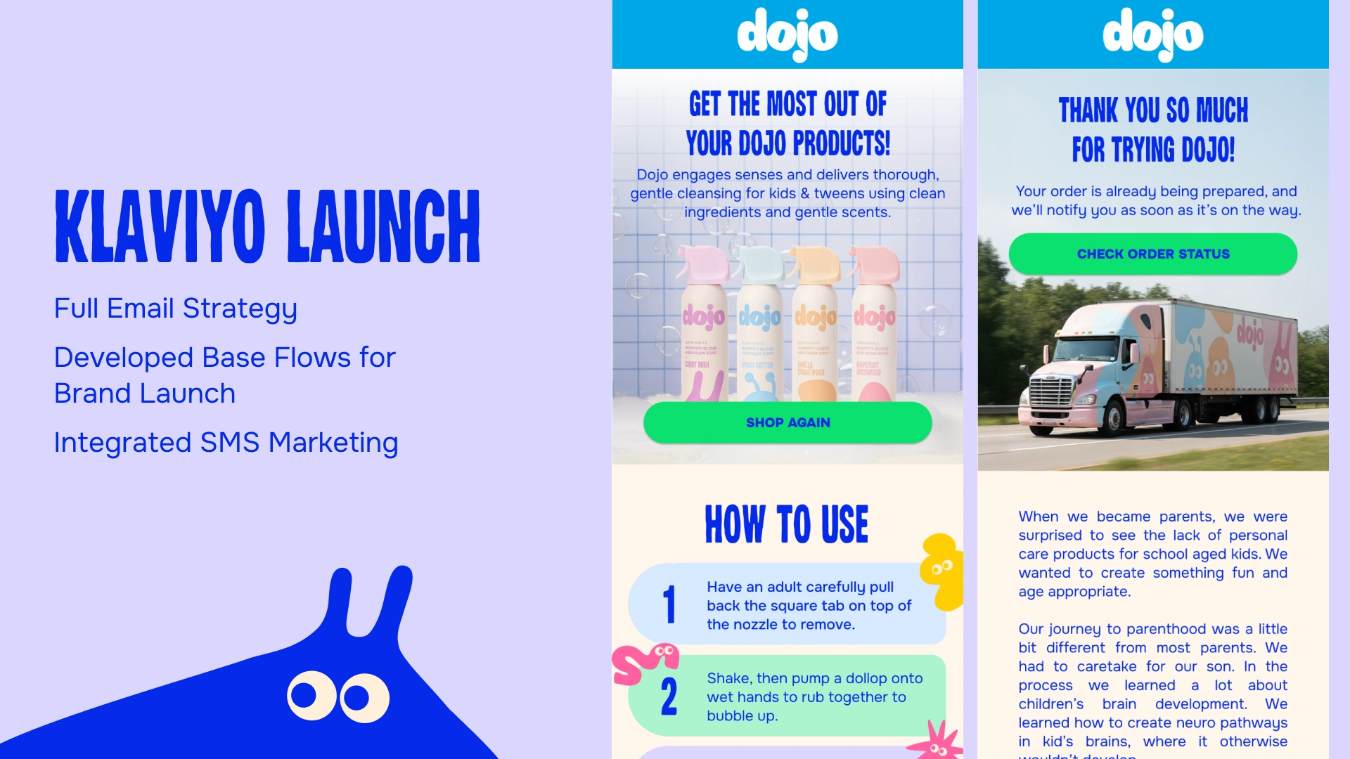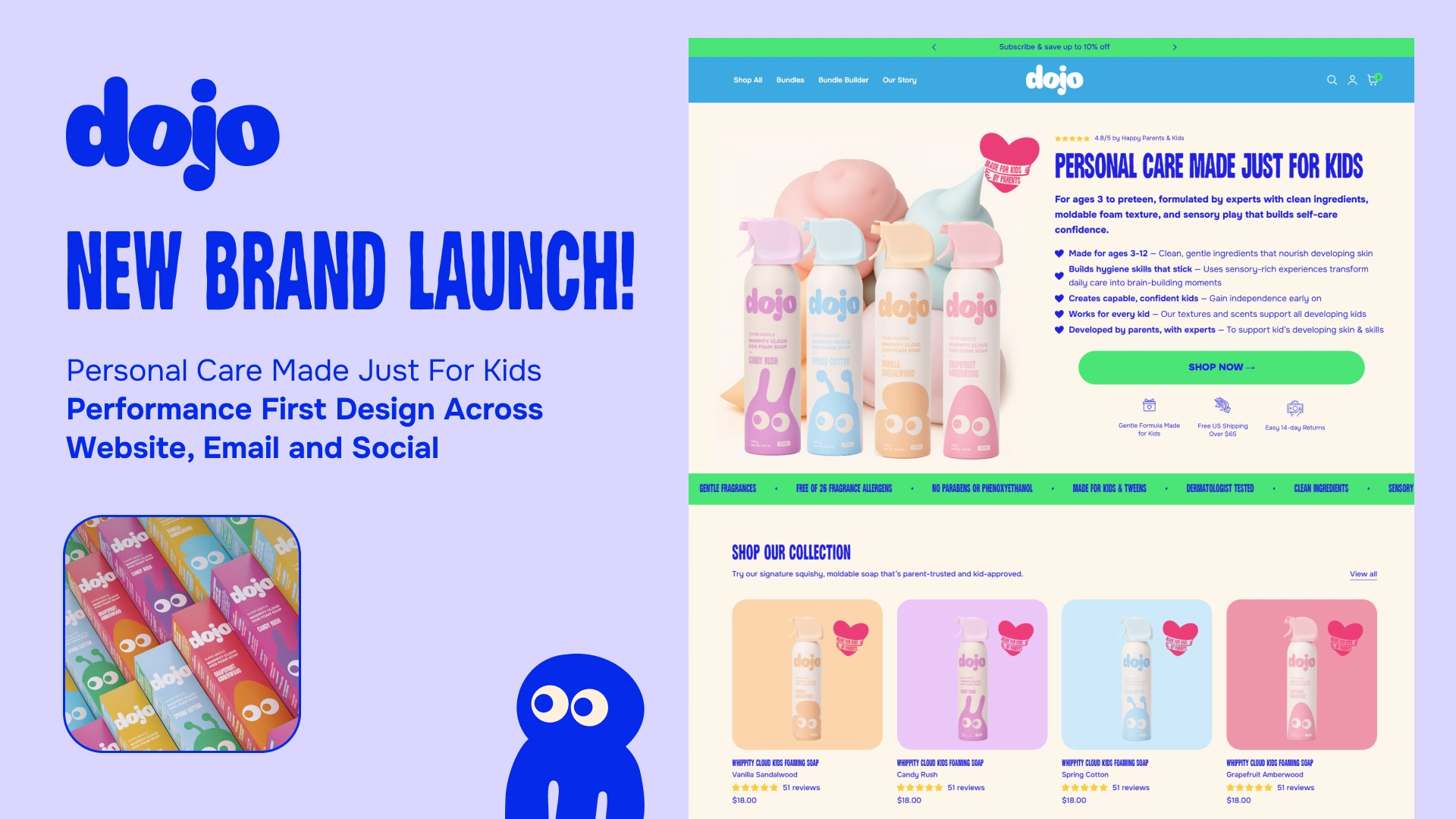 Dojo is a new kids’ personal care brand made just for kids. The brand’s mission is to turn bath time into a sensory experience that builds confidence, independence, and joy.