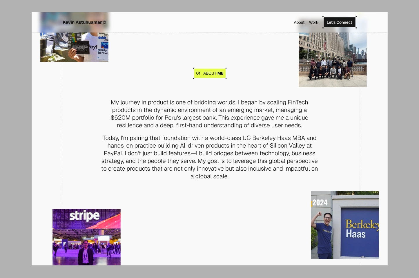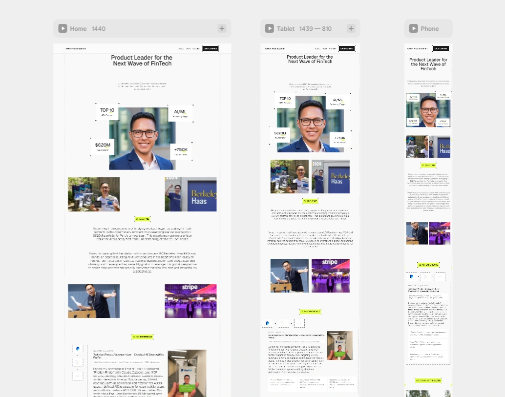 Brand Persona: The design needed to convey a modern, clean, and tech-forward sensibility, communicating that "This PM understands product, AI, is extremely intelligent AND has a unique, versatile personality"