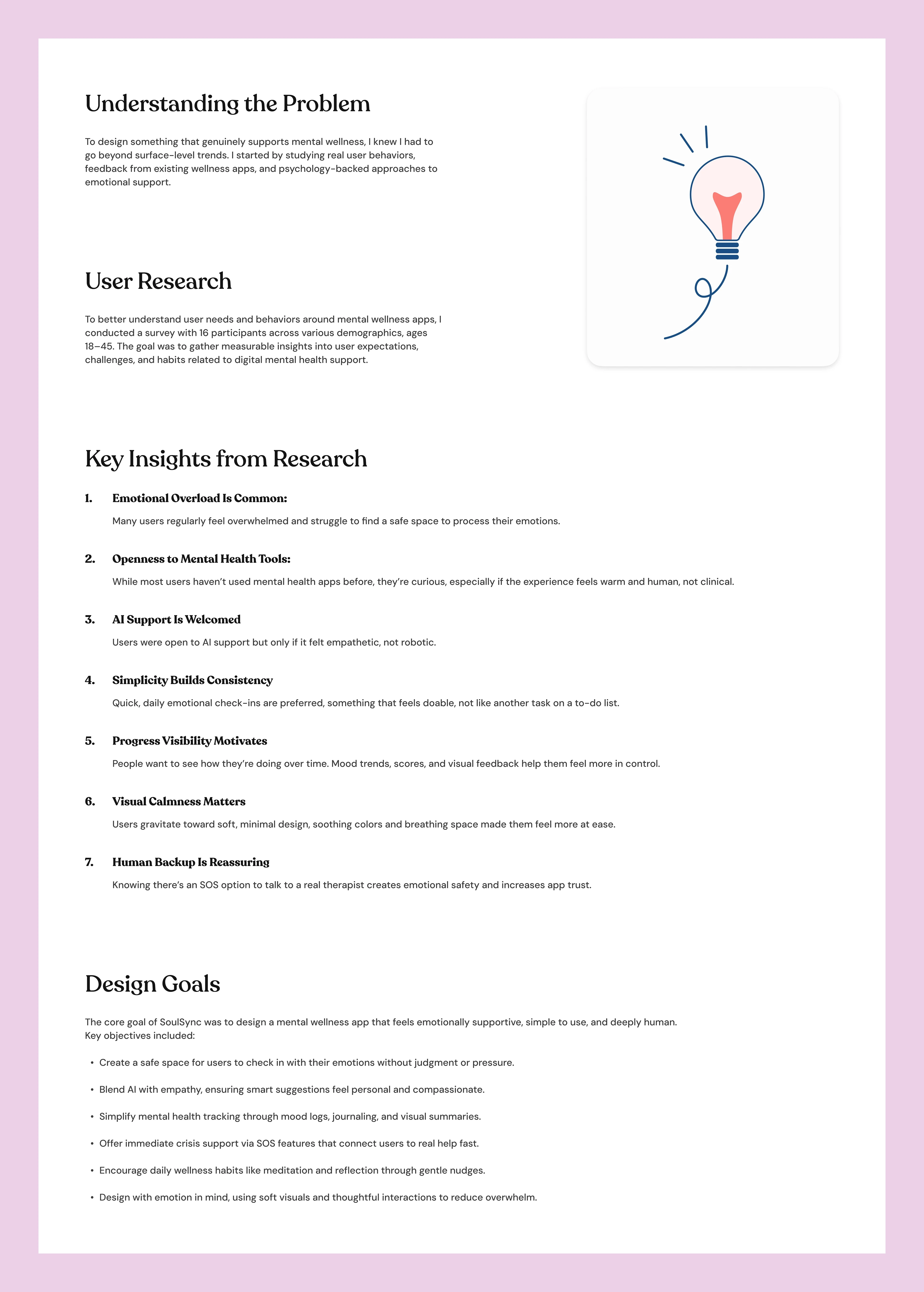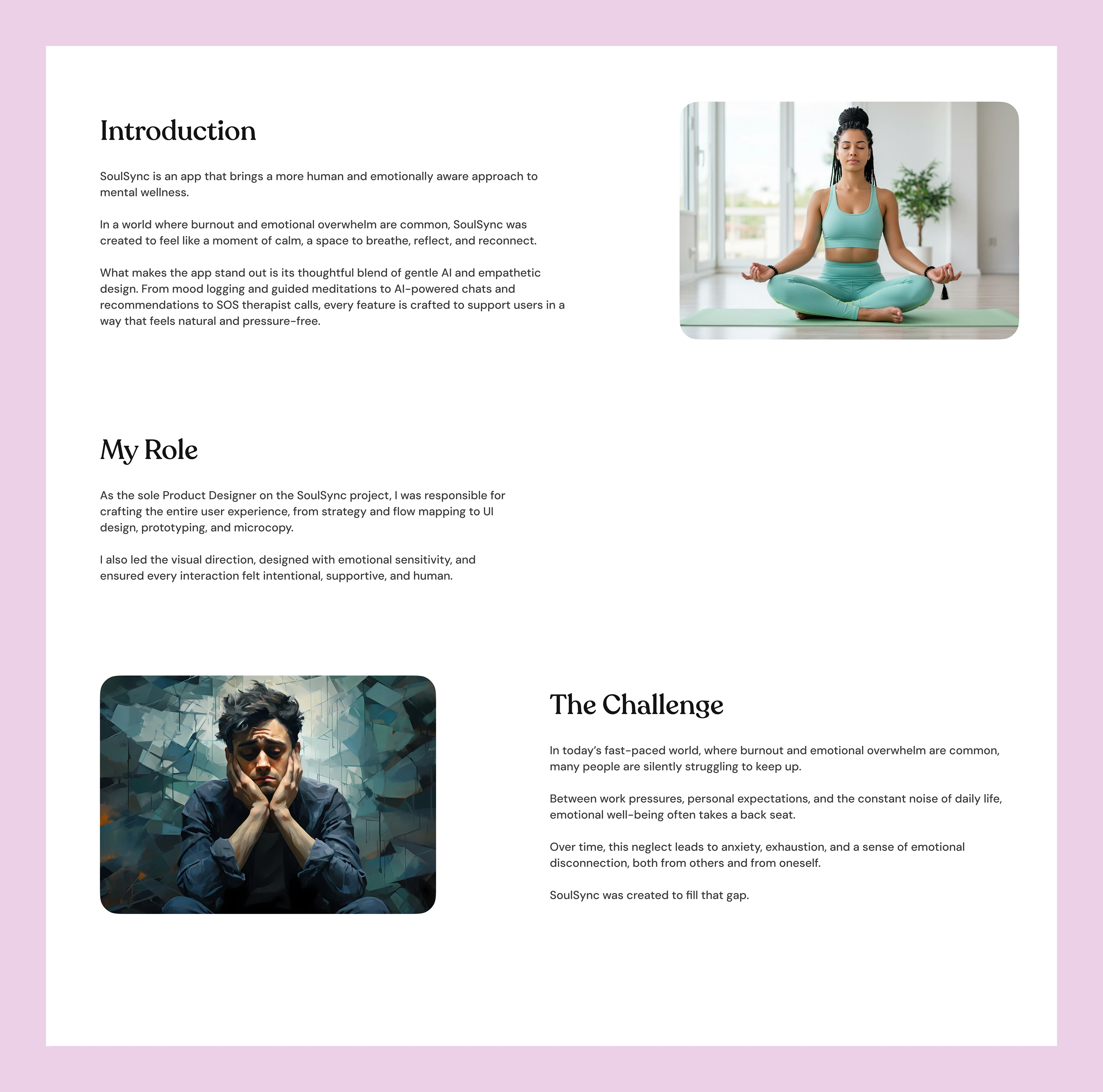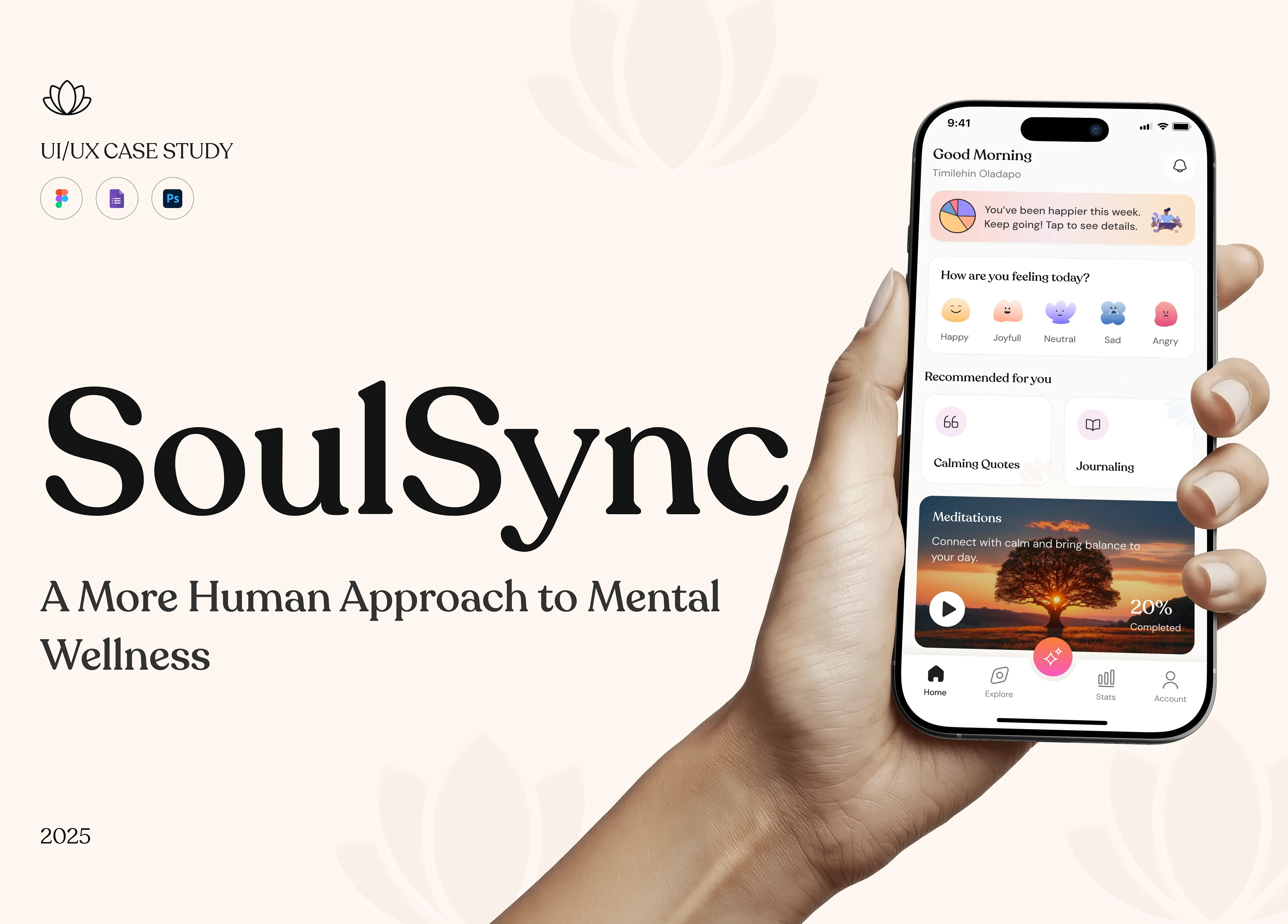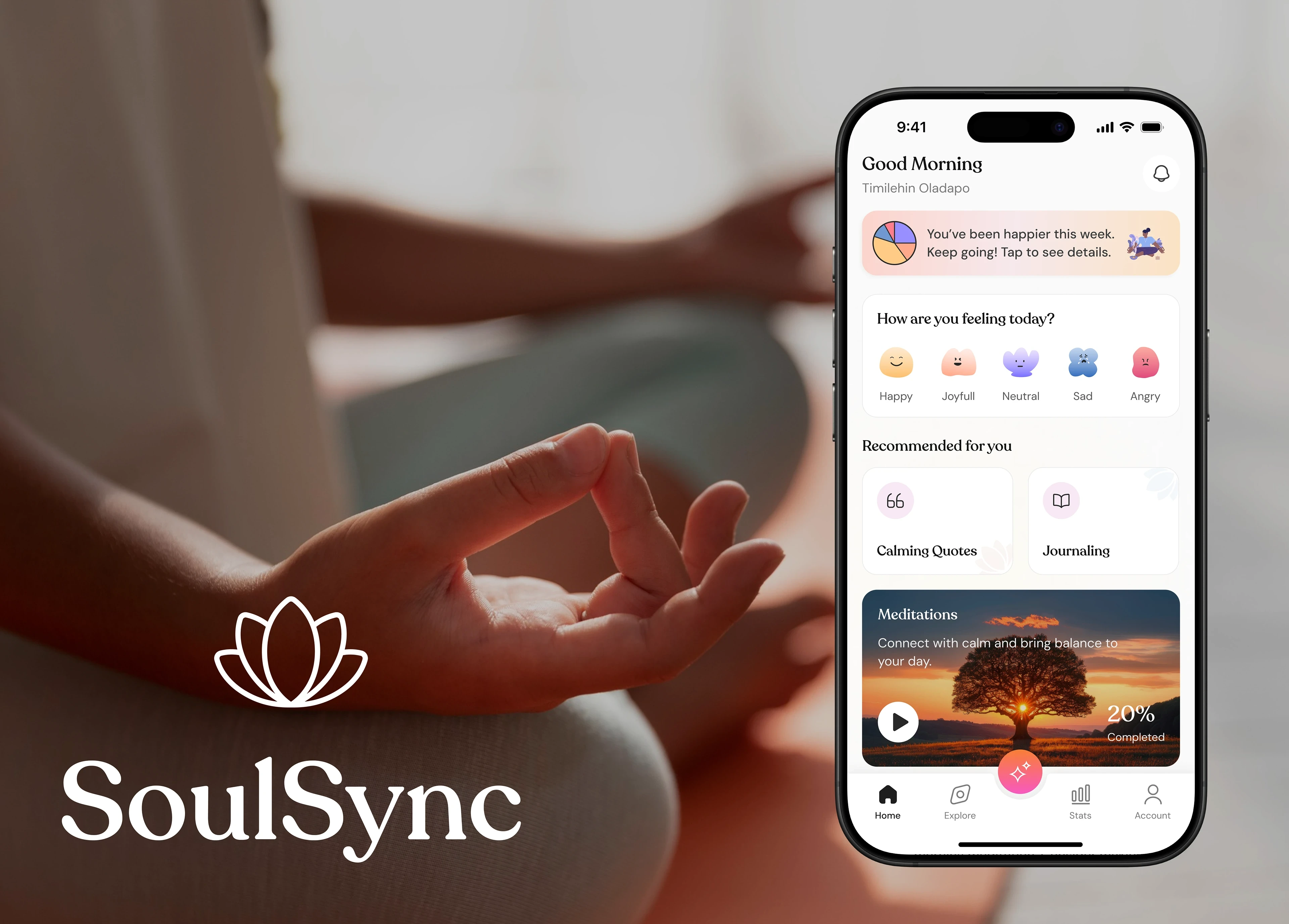 SoulSync is an app that brings a more human and emotionally aware approach to mental wellness. This case study shows my process from idea to execution.