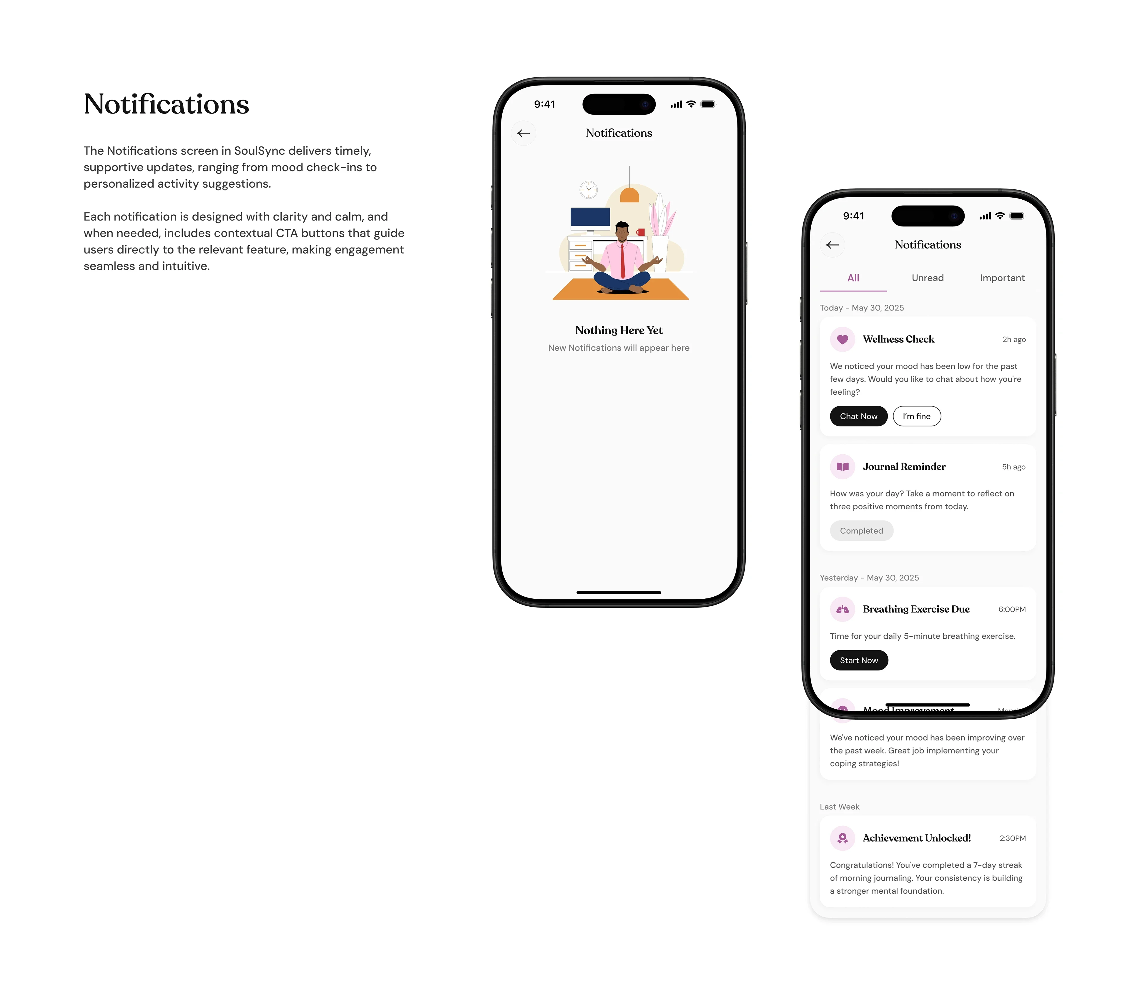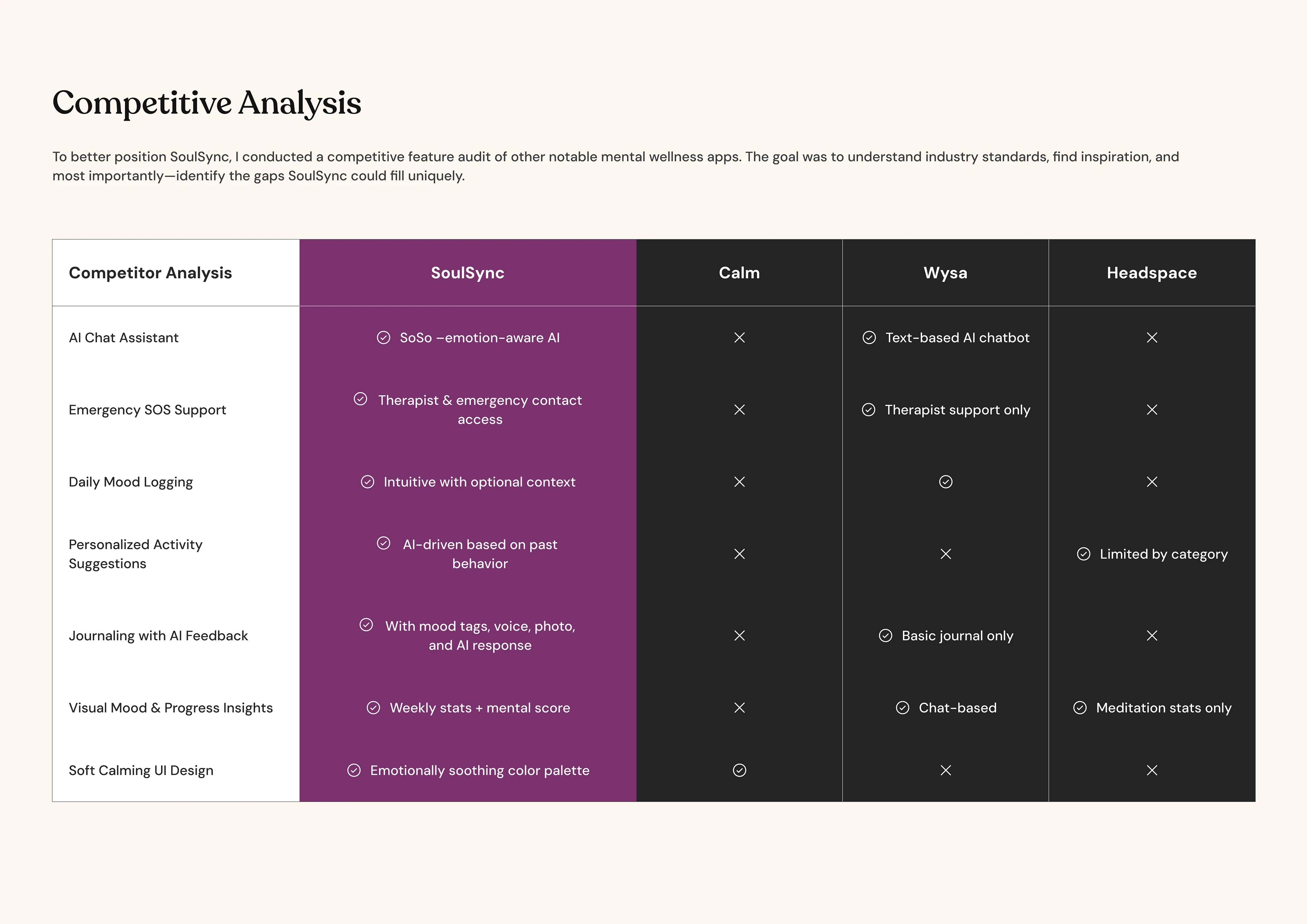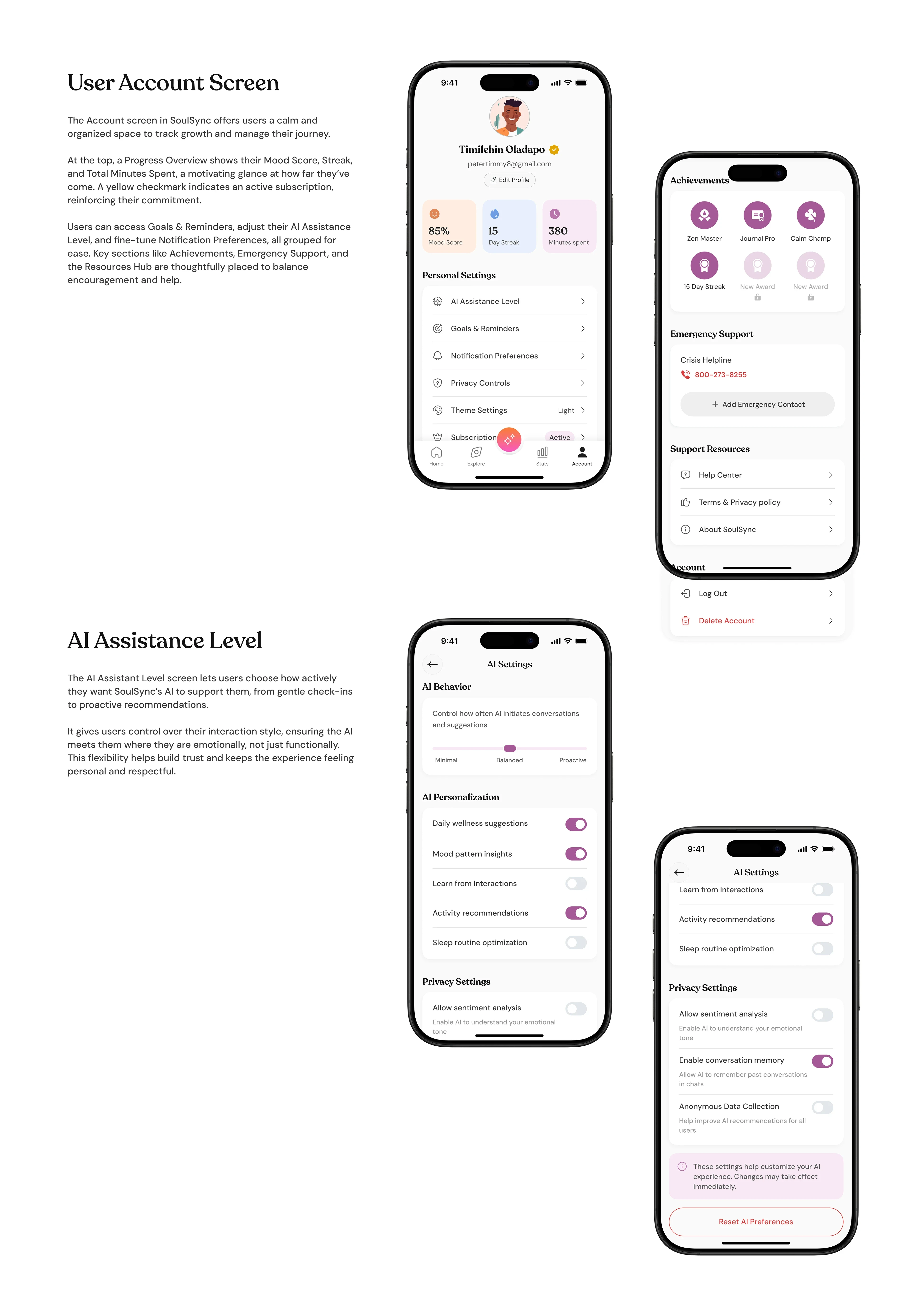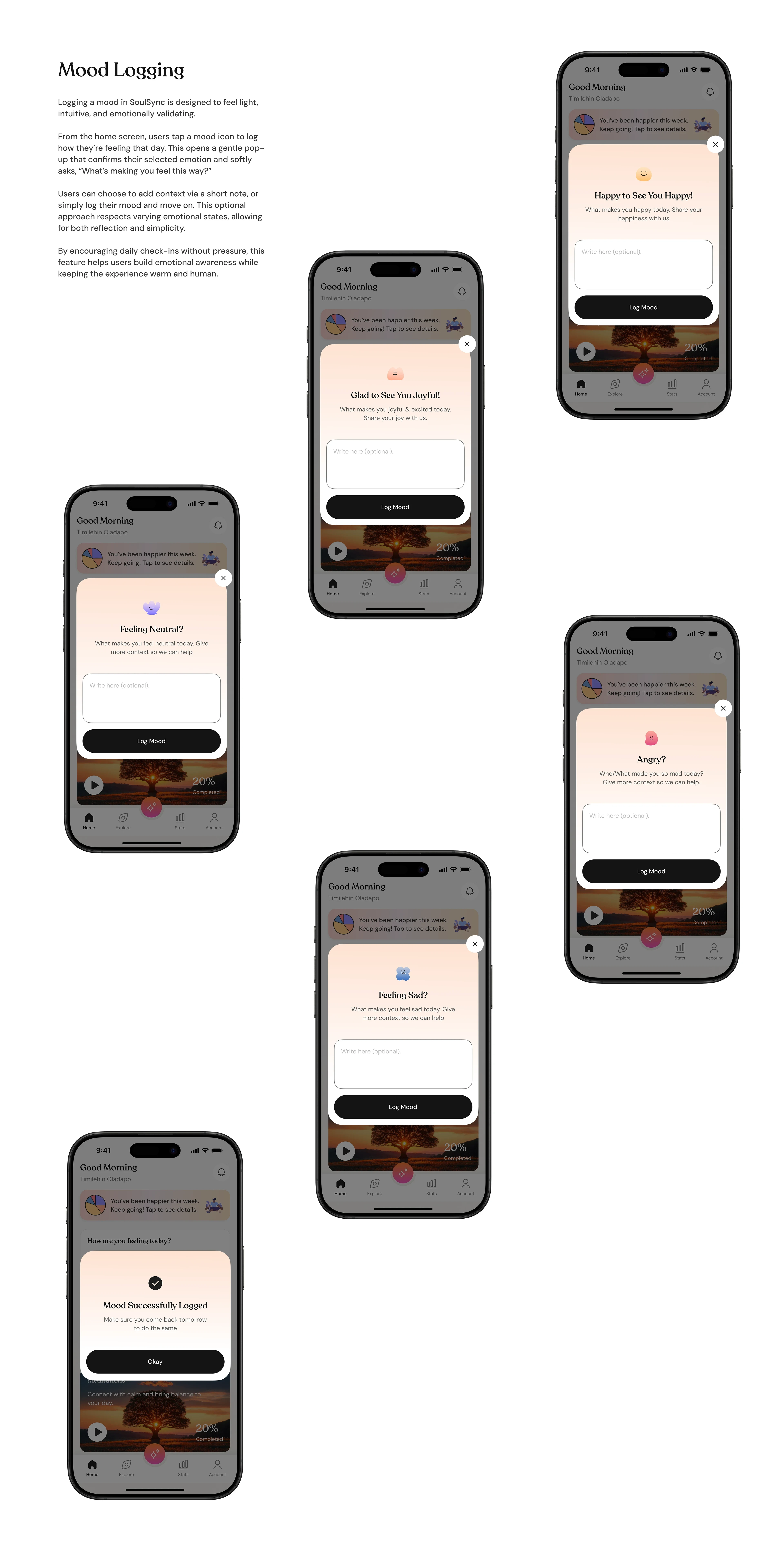 SoulSync is an app that brings a more human and emotionally aware approach to mental wellness. This case study shows my process from idea to execution.