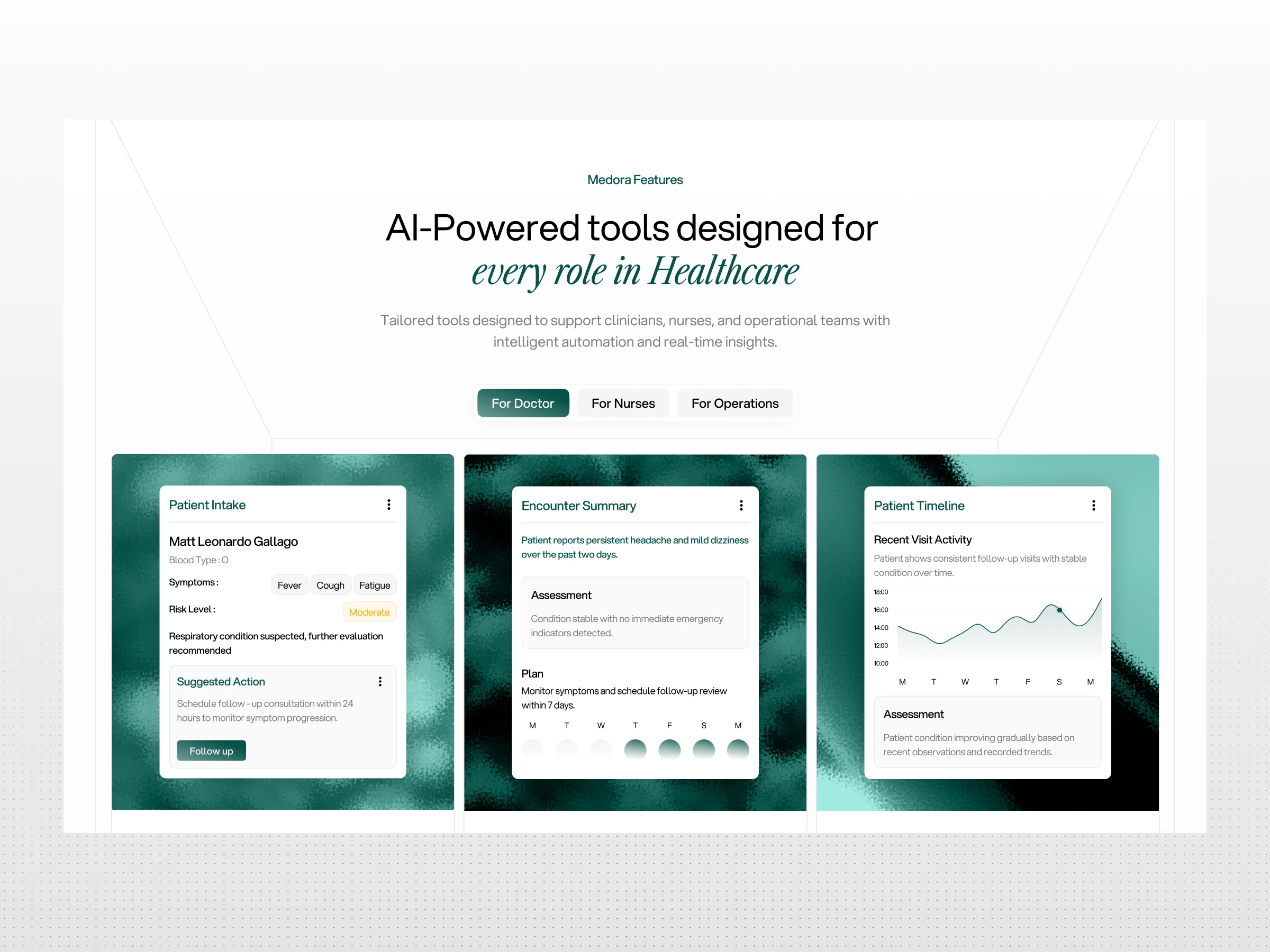 From operational efficiency to better health outcomes, Medora transforms fragmented healthcare processes into a connected and actionable system.