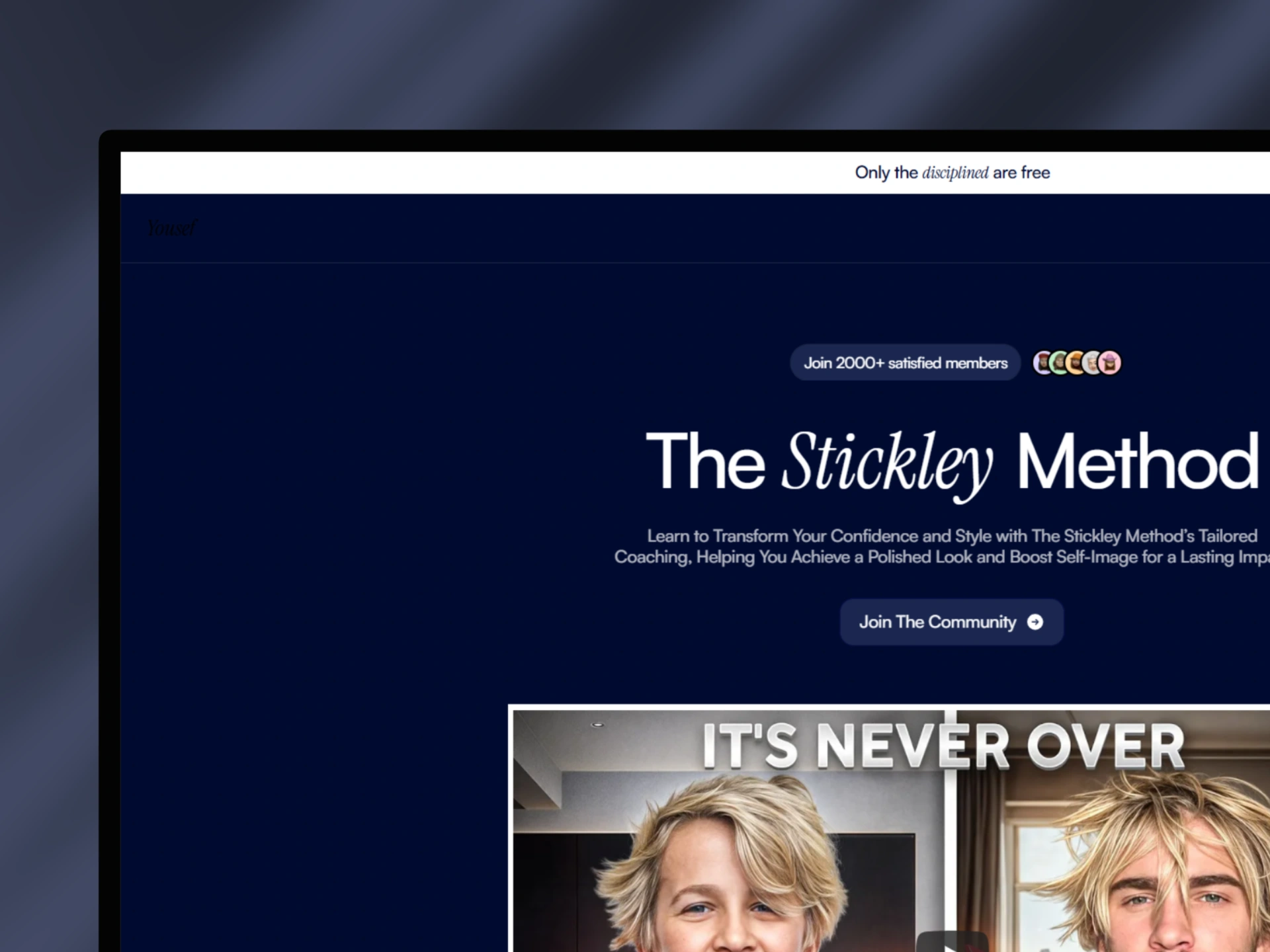 A landing page concept created for an online course by a well-known digital creator, focused on clear messaging, strong visuals, and high-converting layout.