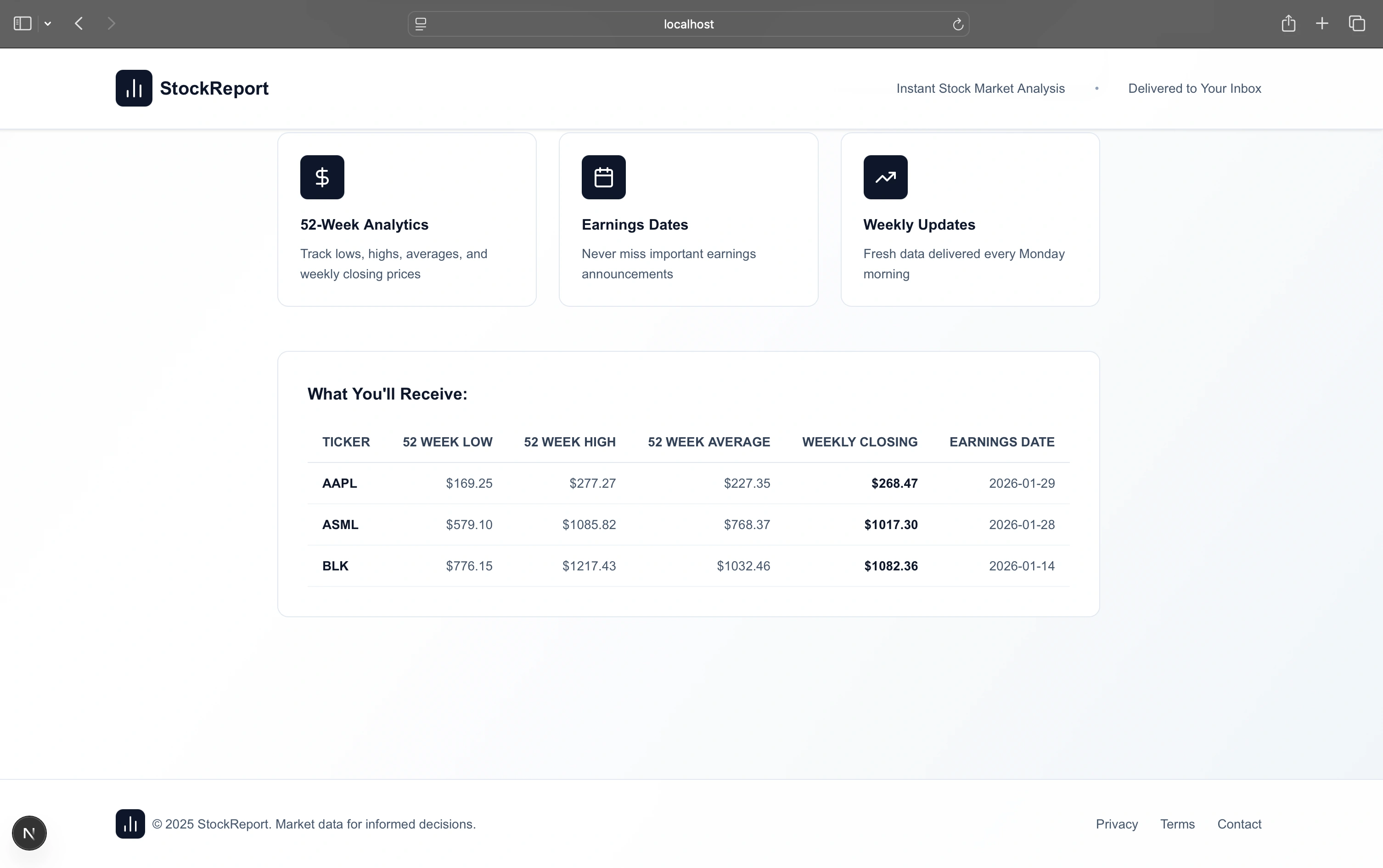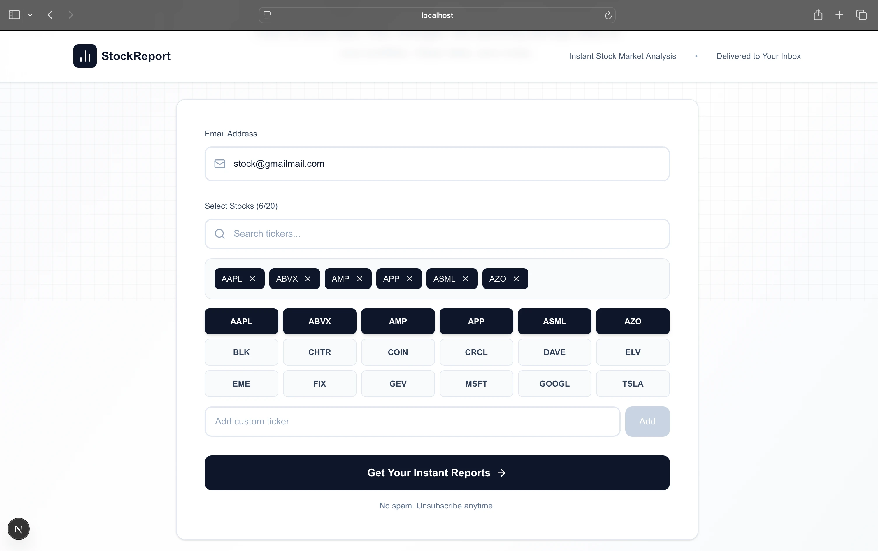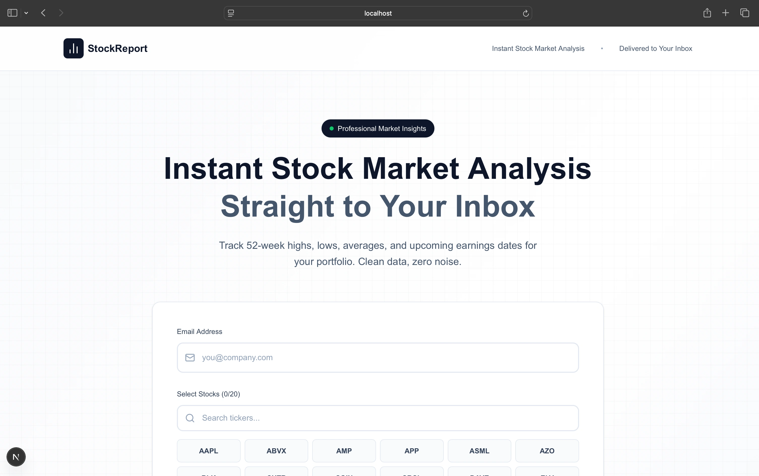 Stock Report demonstrates how a solo developer can build a complete, end-to-end product that delivers tangible value to users. From designing the backend API to creating the web interface, I handled every aspect of development, ensuring accuracy, reliability, and a smooth user experience.