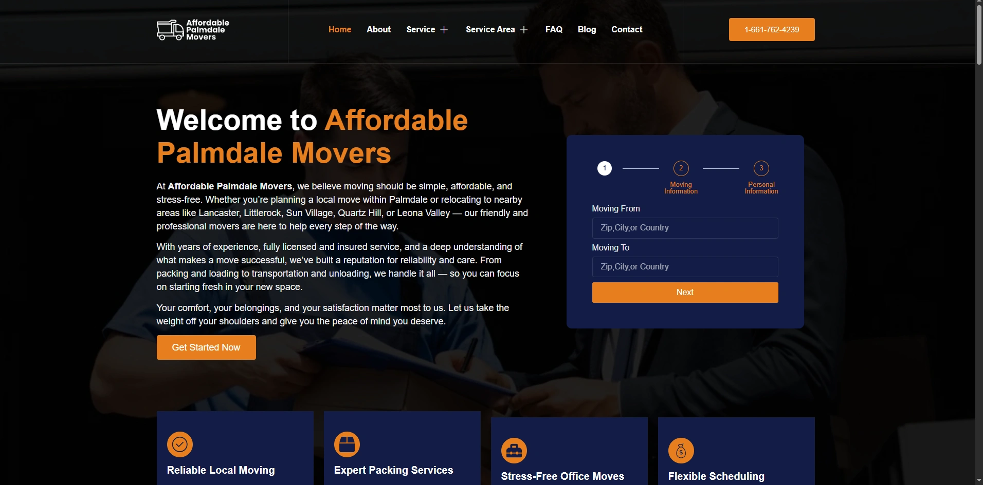 A moving Company website generates leads