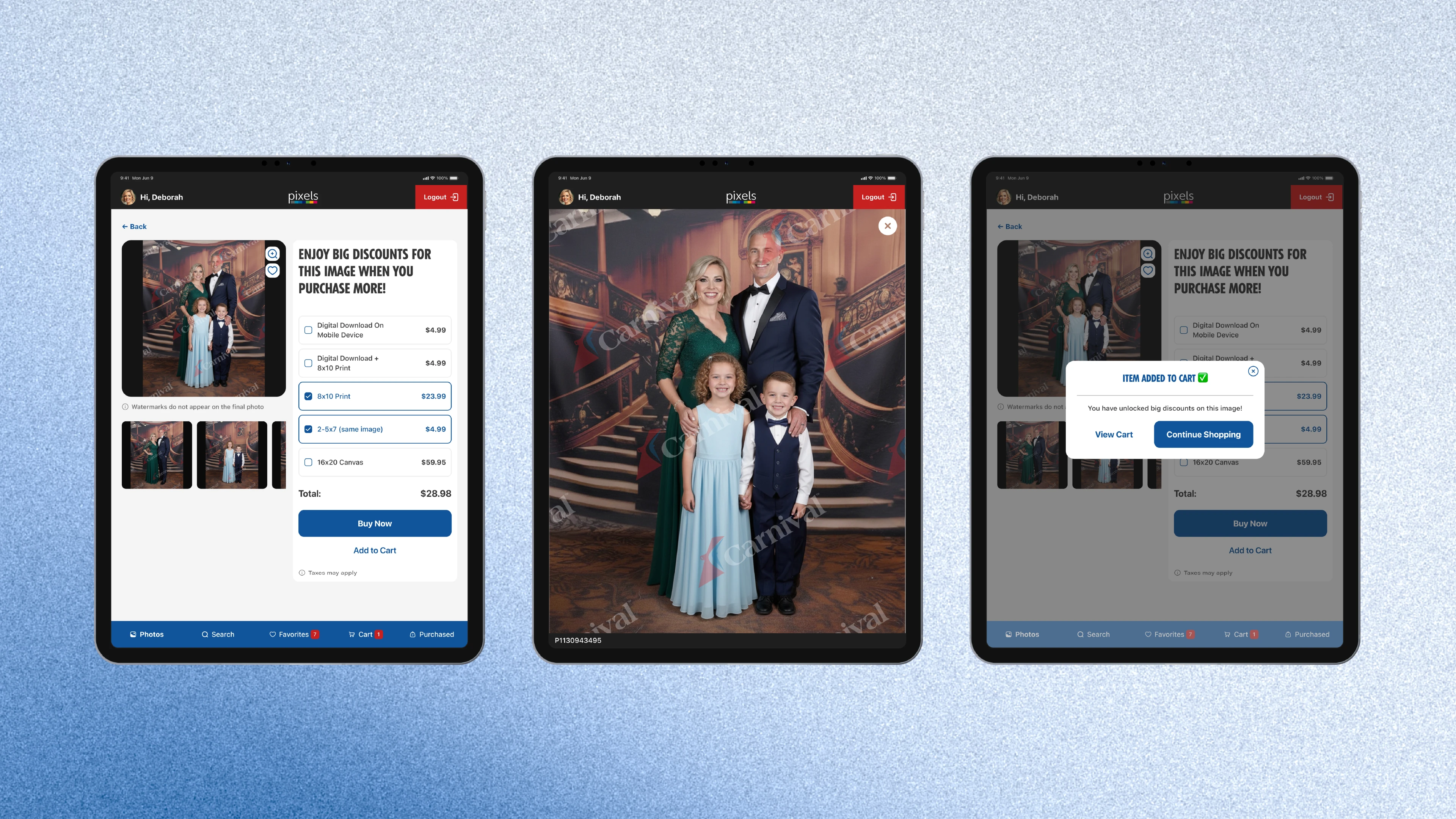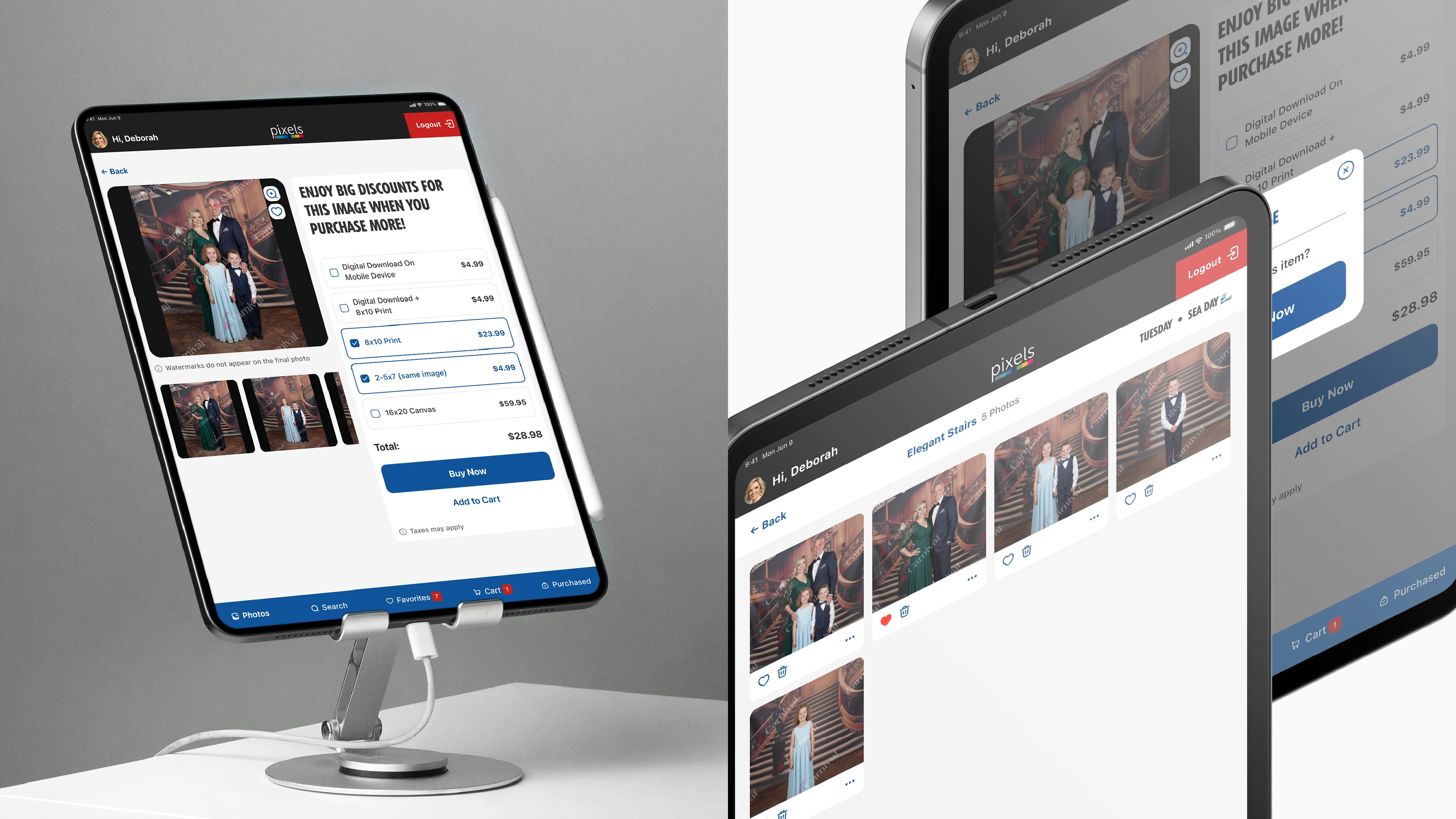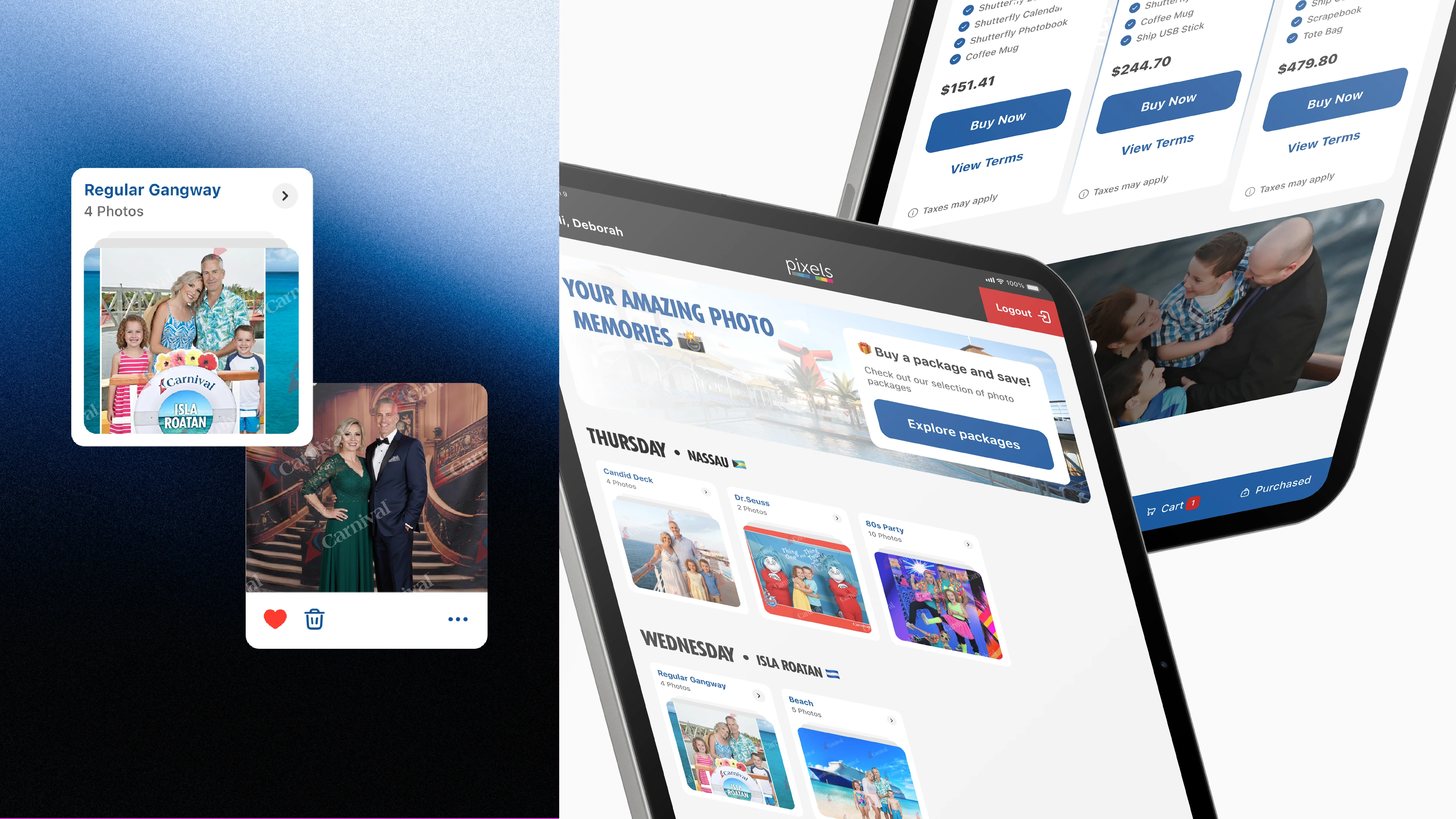 The Pixels Photo Gallery is a beloved part of the Carnival existing tablet system was slow, confusing, and critically, failed to meet basic accessibility standards. This created long queues, frustrated guests (especially the large demographic of older adults), and led to abandoned purchases and a negative overall experience.