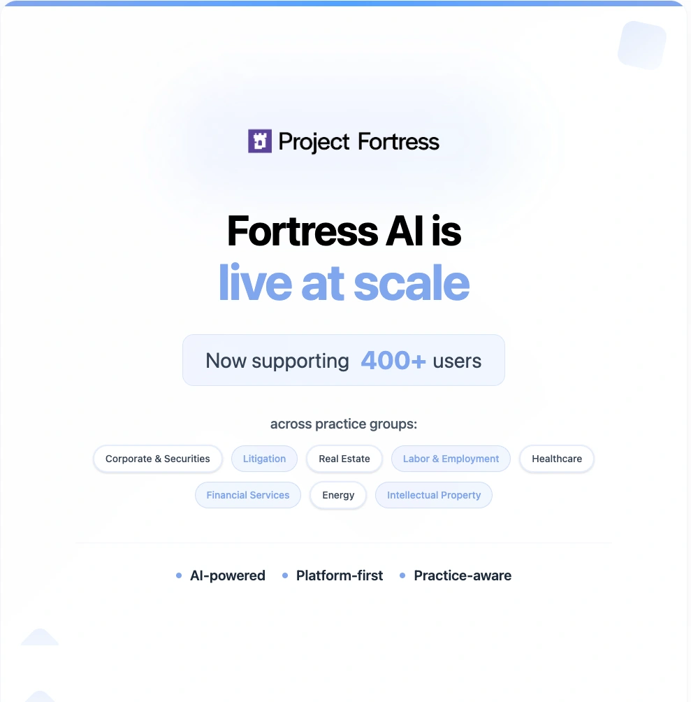 Project Fortress achieved exceptional growth on LinkedIn over the past 90 days, demonstrating the power of consistent, value-driven content in the legal technology space. With over 1,200% increases in reach and engagement, the platform successfully established itself as a thought leader in legal operations transformation.