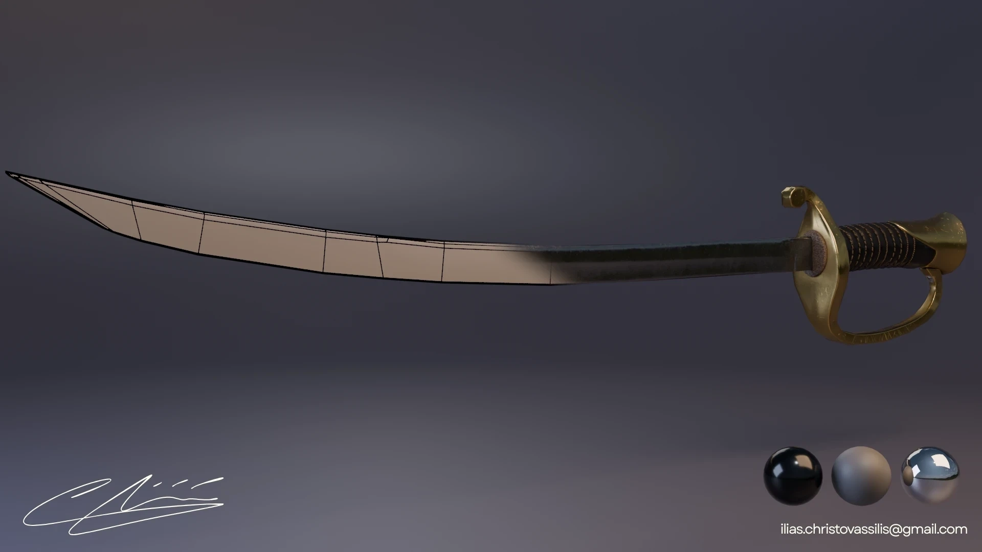 I created this detailed and realistic model of a metal saber optimized for game engines.