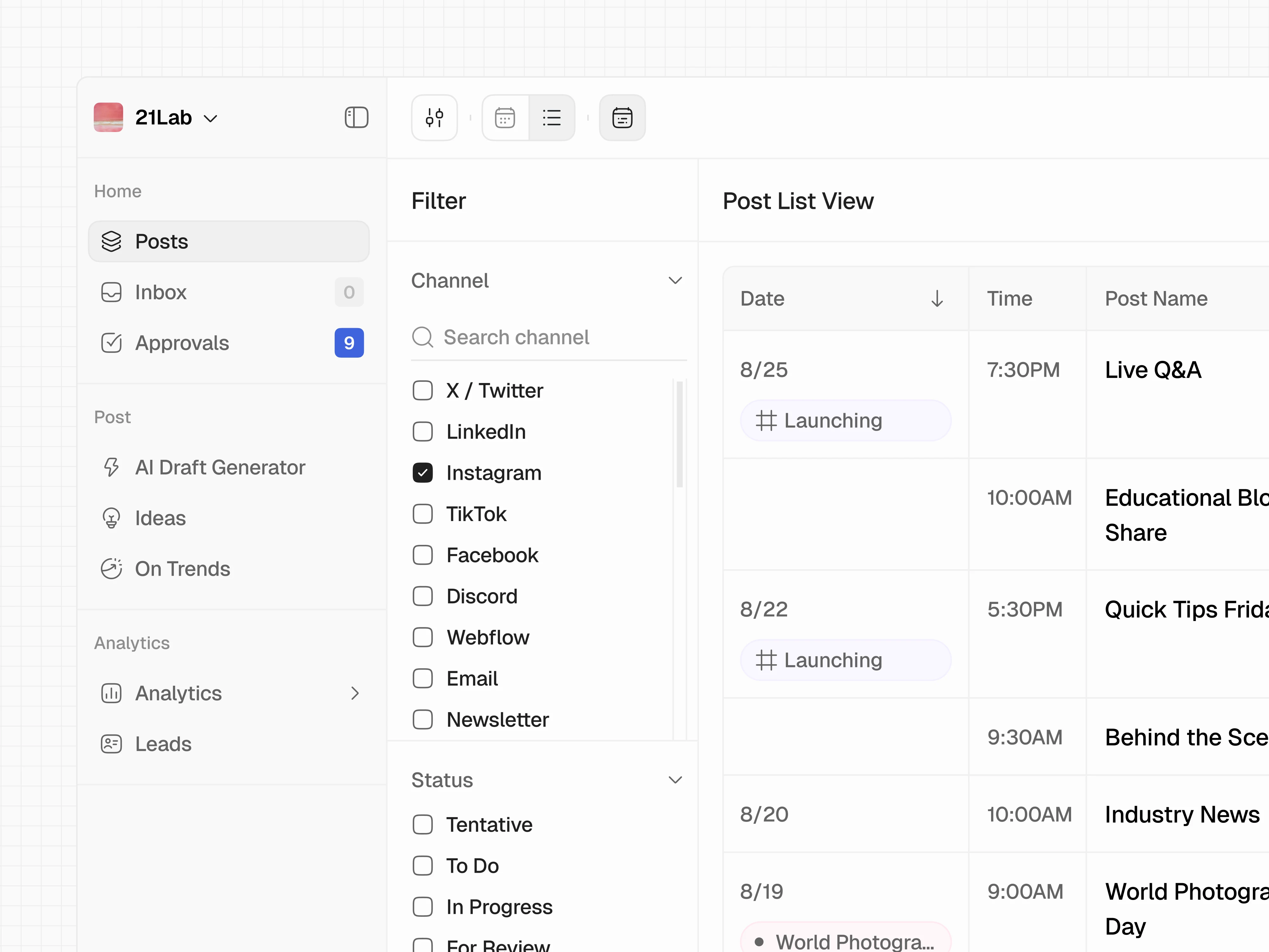Posta is a platform designed to help teams plan, schedule, and publish content across social media. It brings together the essentials of digital marketing into one streamlined workspace, making it easier to manage campaigns and keep content consistent. With direct integrations to major social platforms, posting becomes seamless and more efficient.