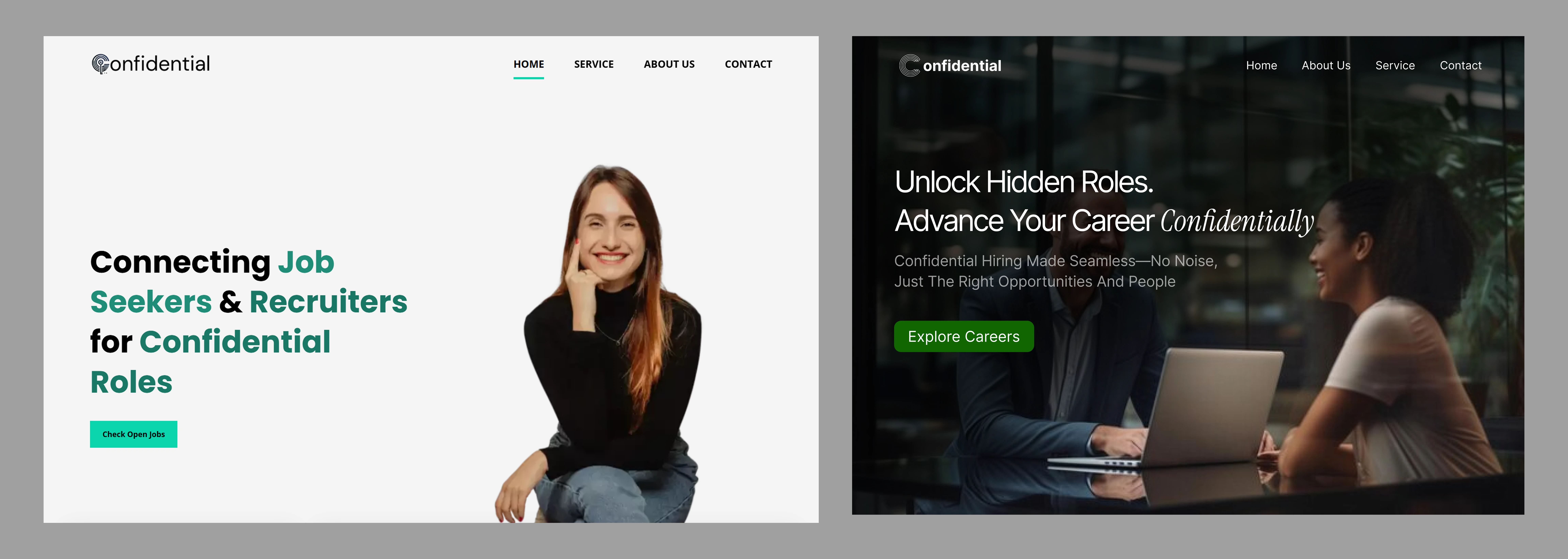 Redesigned the hero section of a job recruitment platform to improve visual clarity, trust, and user engagement. The goal was to explore two visual styles: one clean and professional, and another bold and modern with a dark theme.
