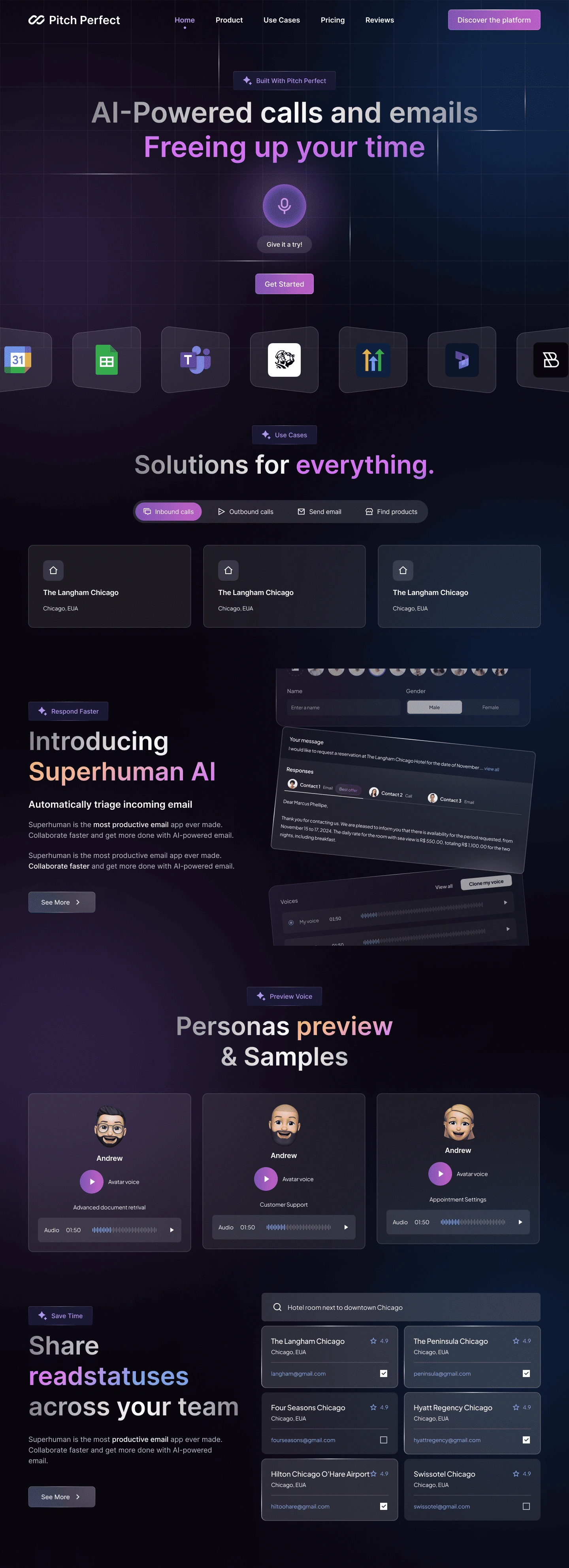 Pitch Perfect is an AI platform designed to automate calls and emails, enhancing productivity through voice personas and smart triage.