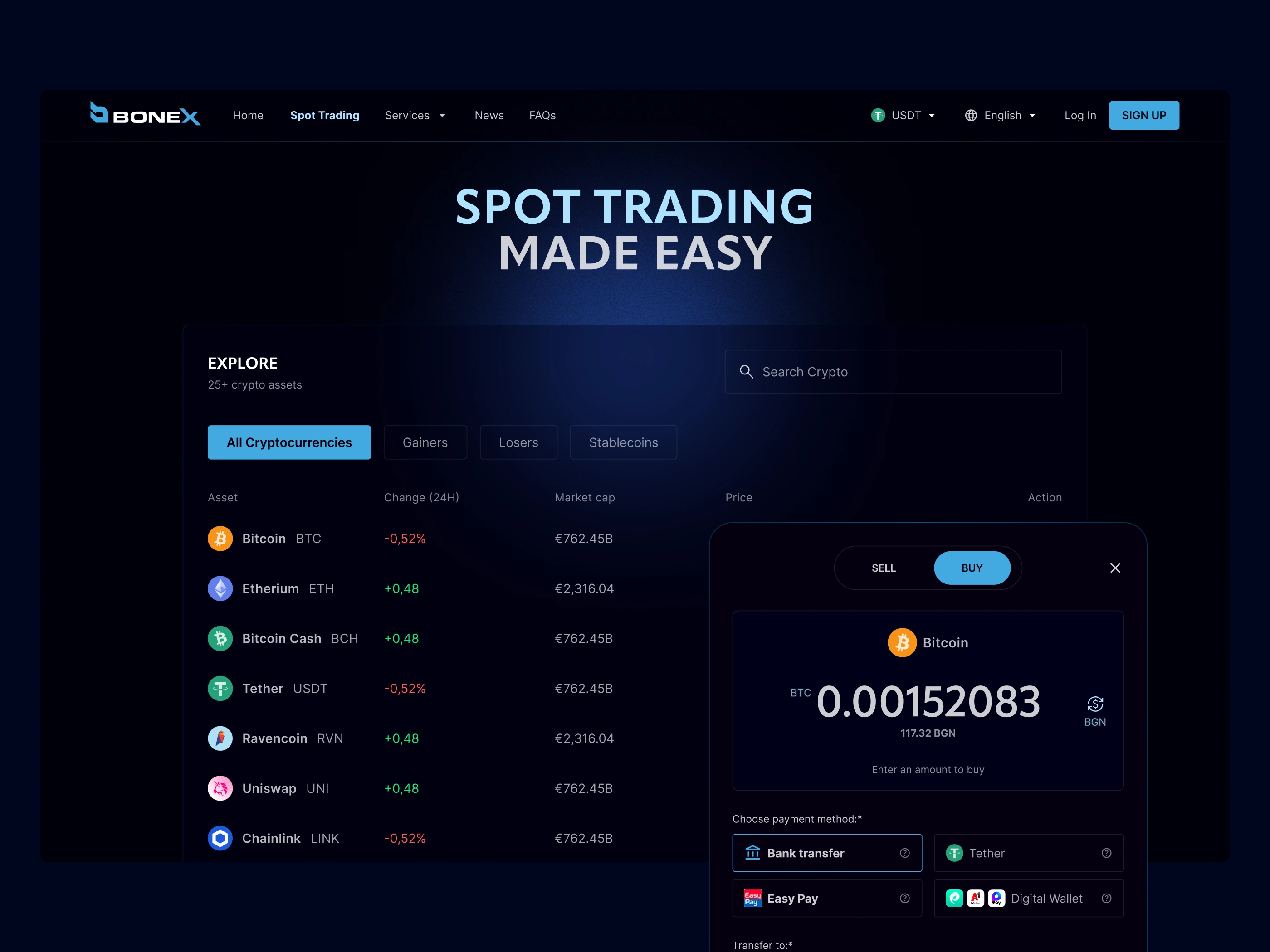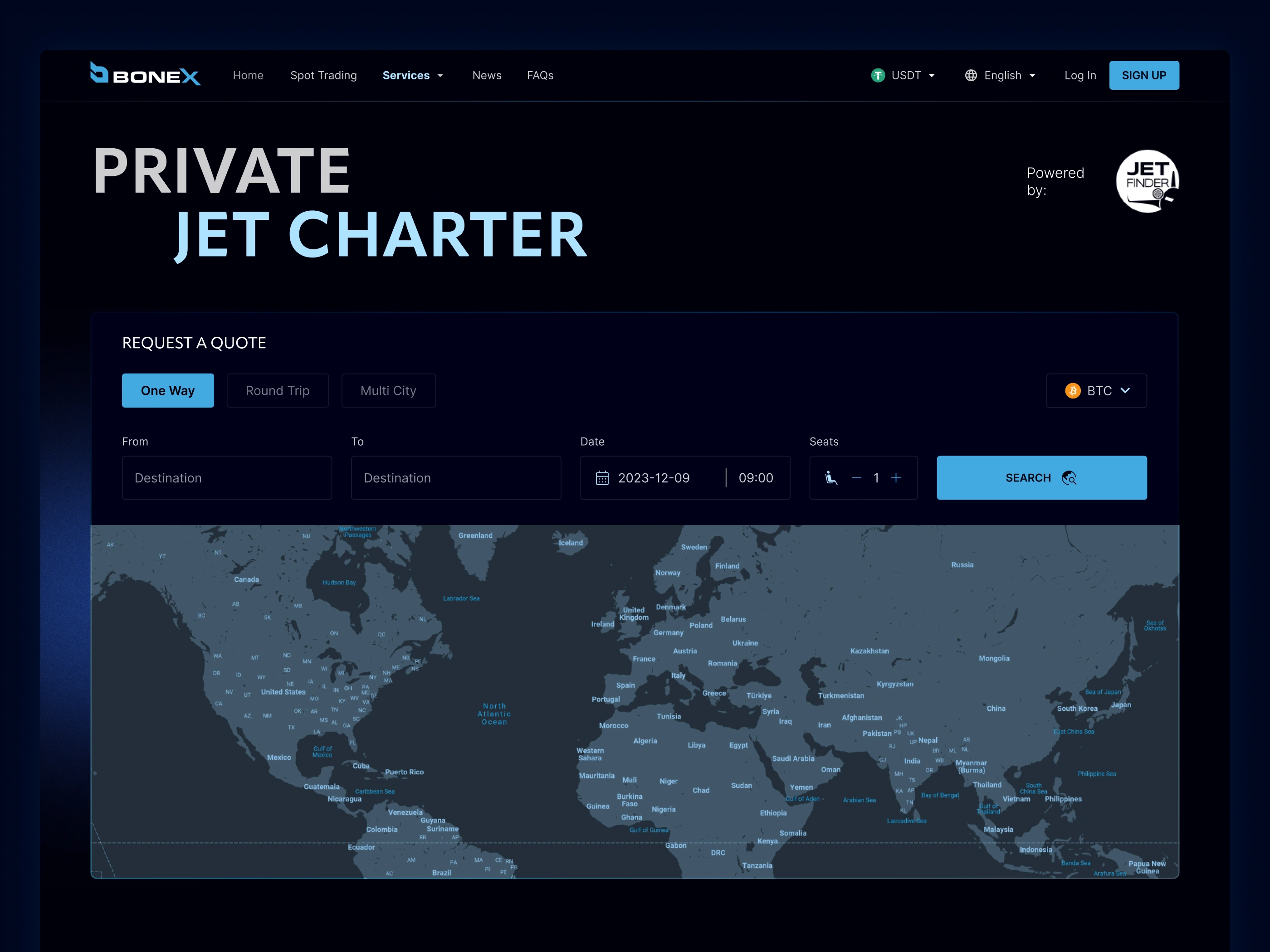 Complete redesign for Bonex’s new website — a crypto platform where users can trade, buy cars, and even rent private jets with crypto.