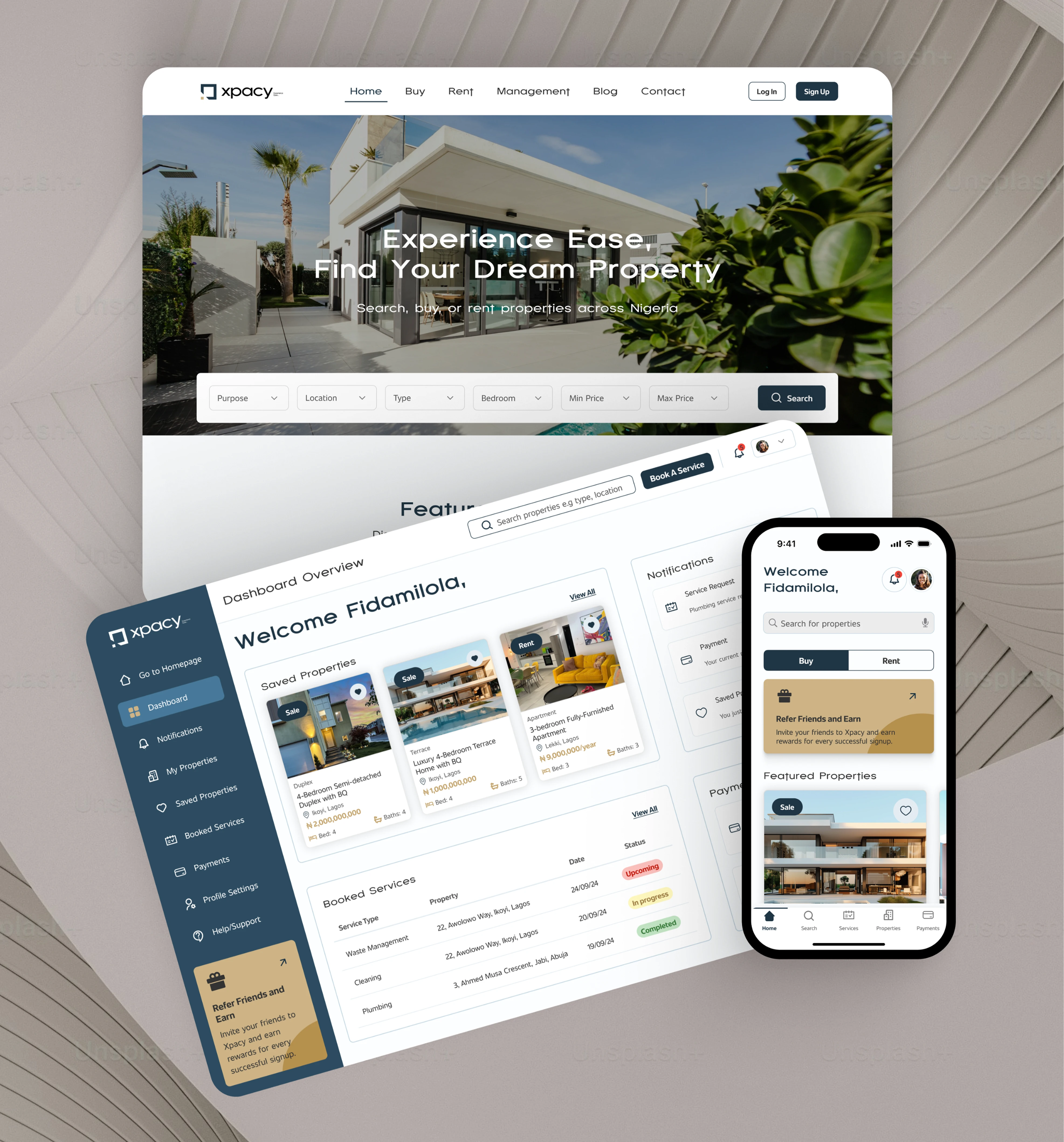 Xpacy is a real estate and property management platform designed to simplify property search, streamline rentals and sales, and provide seamless facility management services, all in one place. I led the end-to-end product design across responsive web, web app, and mobile app.