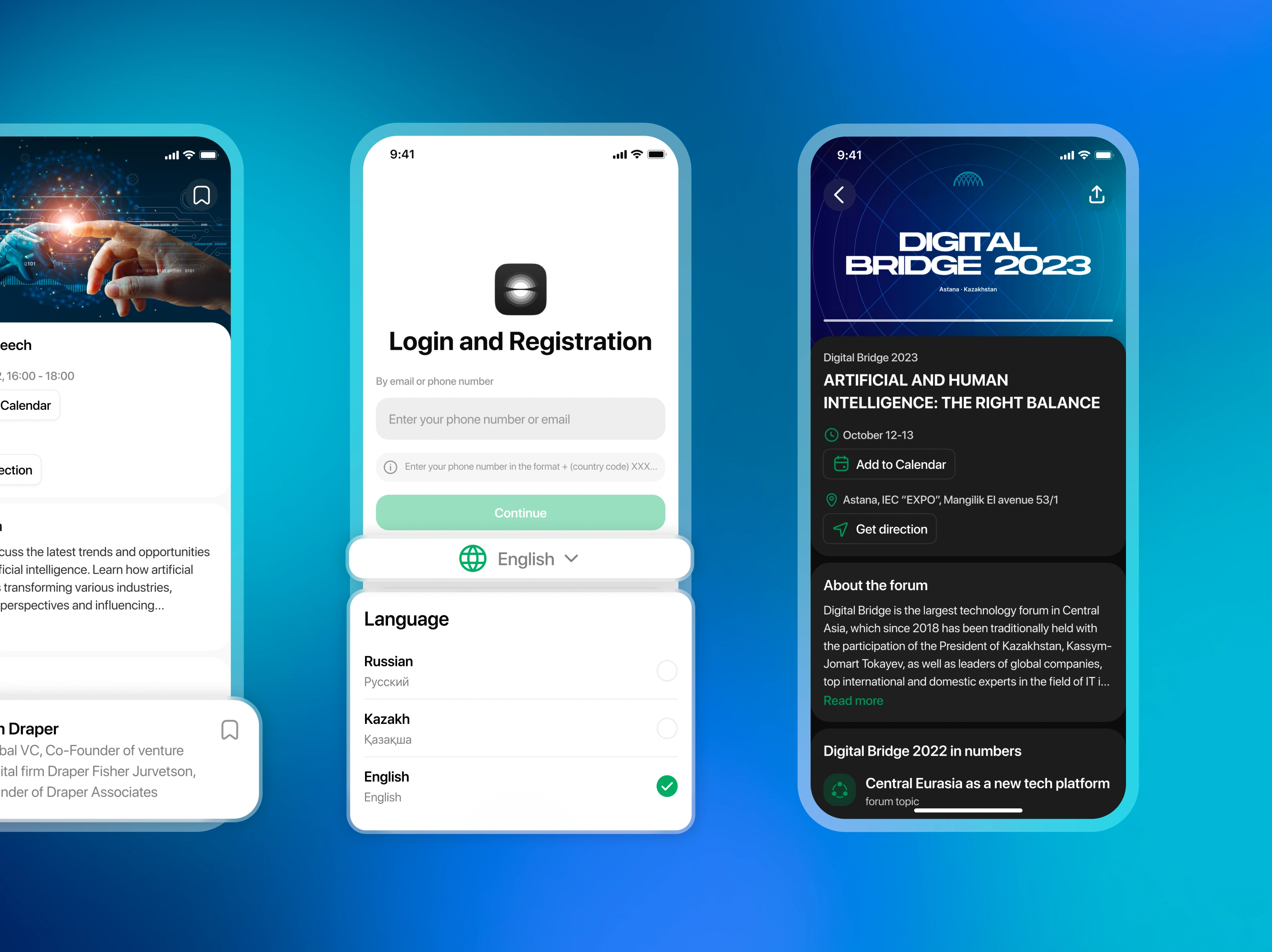 The "Astana Hub" is a dedicated application designed for Astana Hub to streamline and enhance the experience of their annual IT forum, "Digital Bridge." This innovative app serves as a central hub for attendees, speakers, and organizers, fostering seamless communication and efficient management of the event.