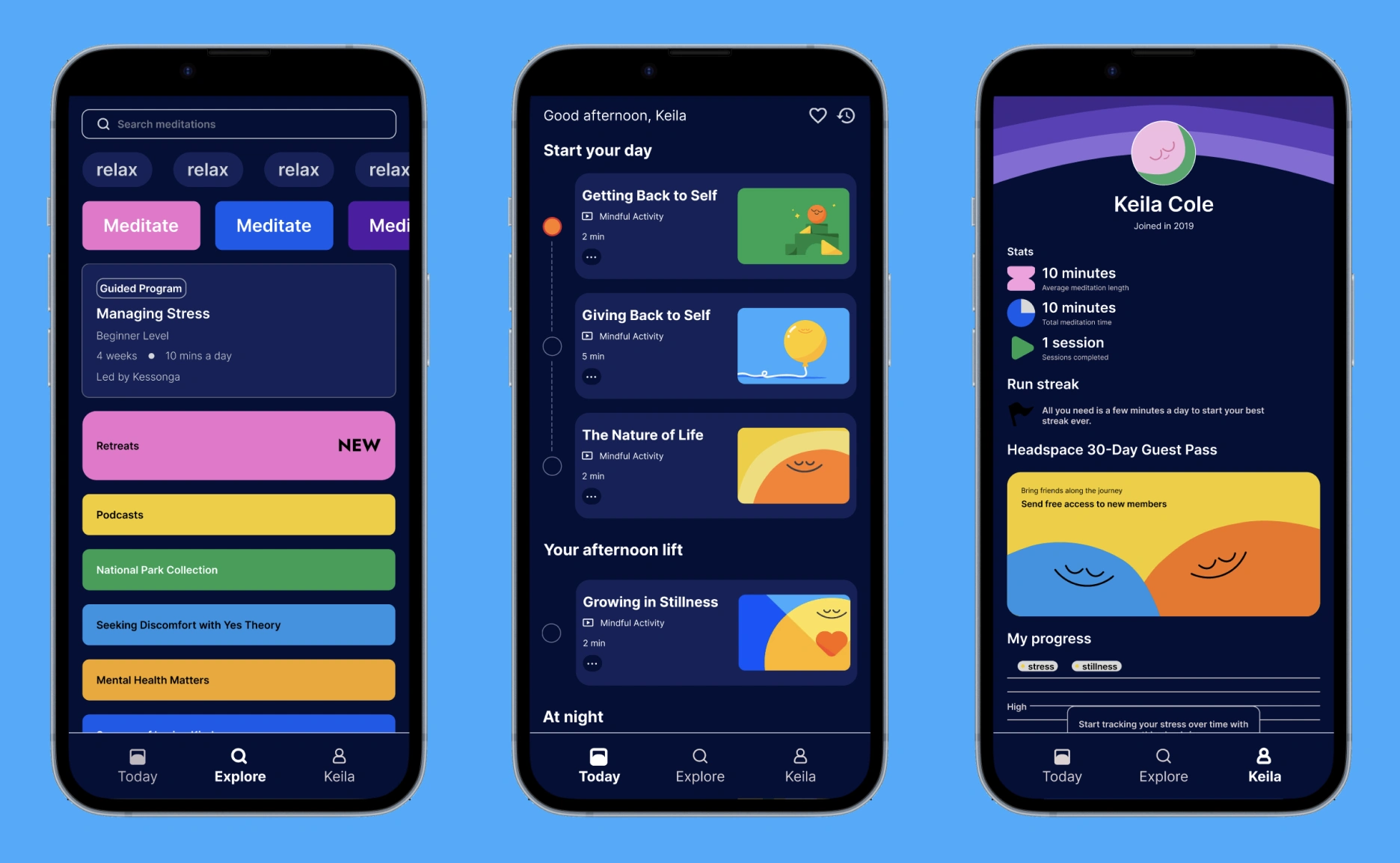 Headspace is one of the top leading minfulness & meditation platforms. They strive to improve the health & happiness of the world. Target users are those who are beginning their meditation journey as well as novice practicioners (including children).