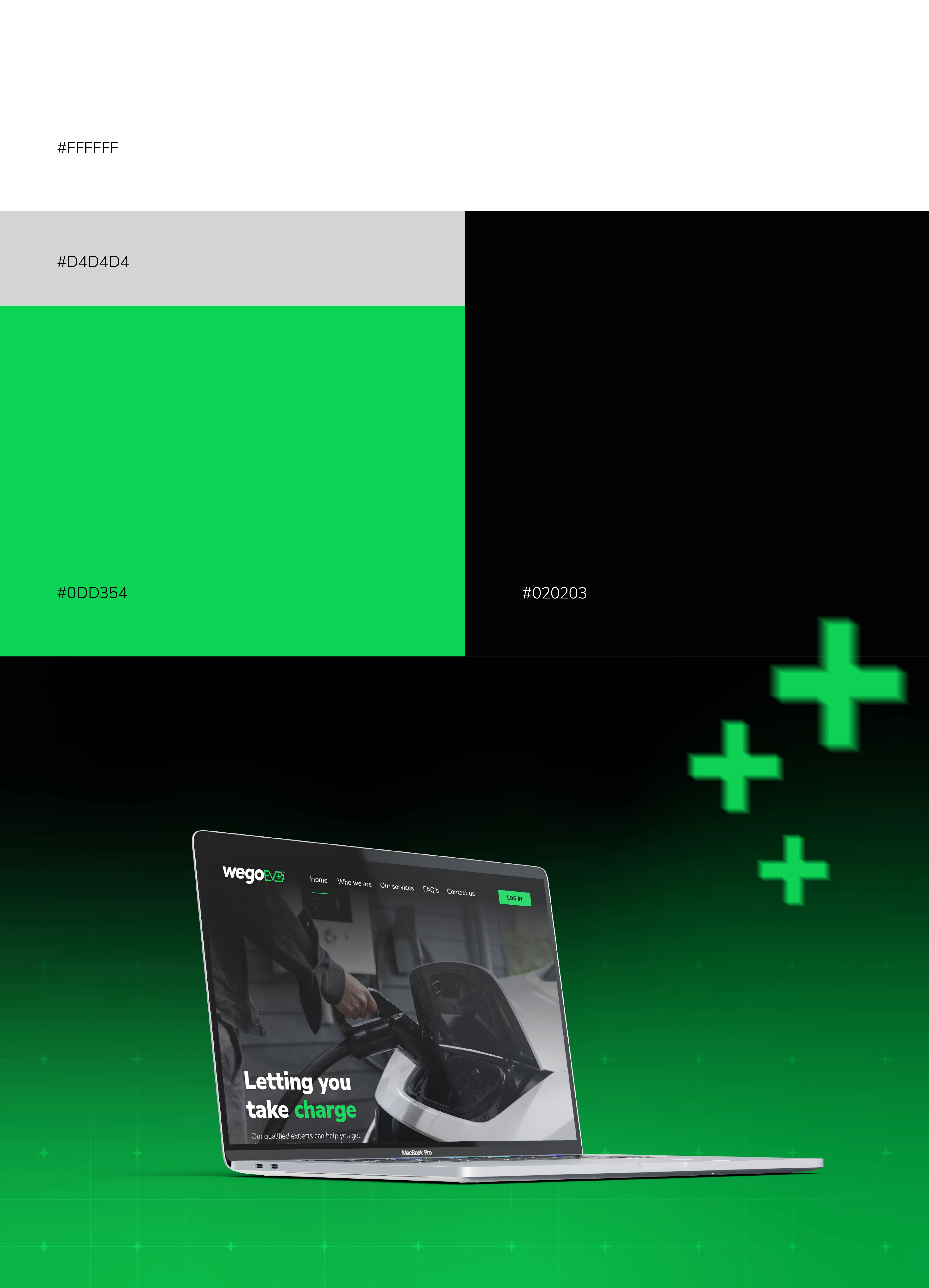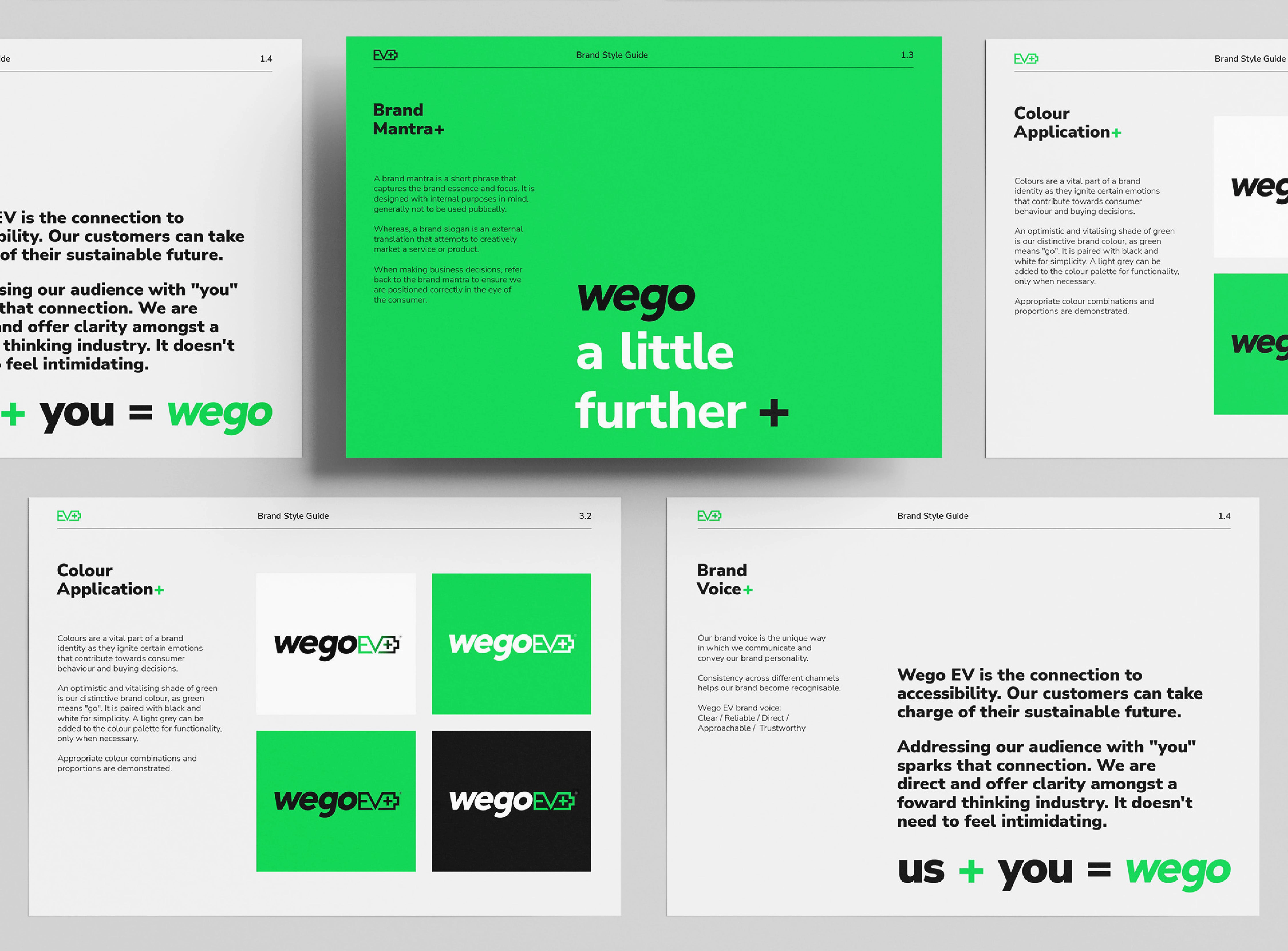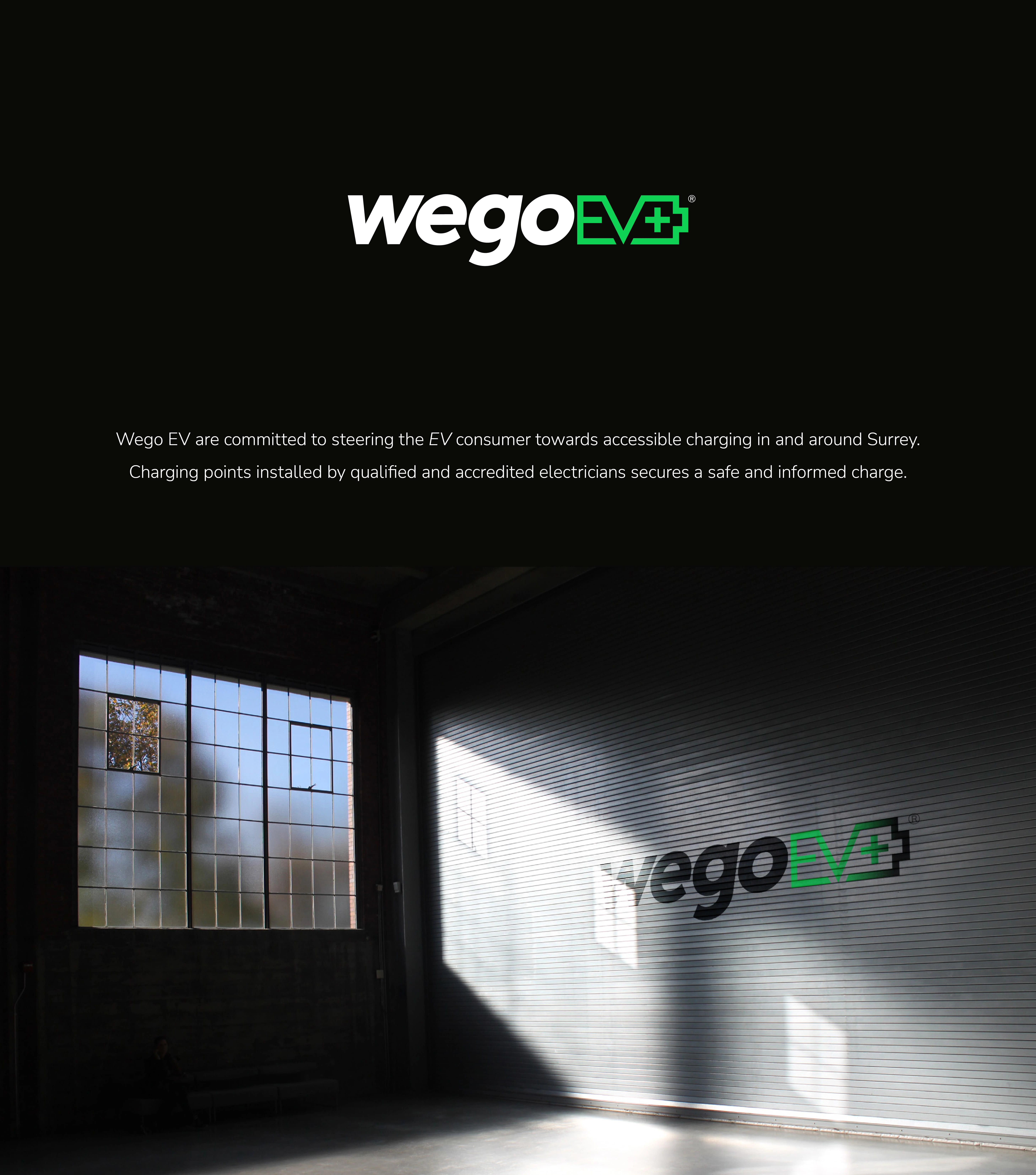 A brand identity project, including a logo suite and brand style guide, for a Surrey based EV charger installation company, Wego EV.